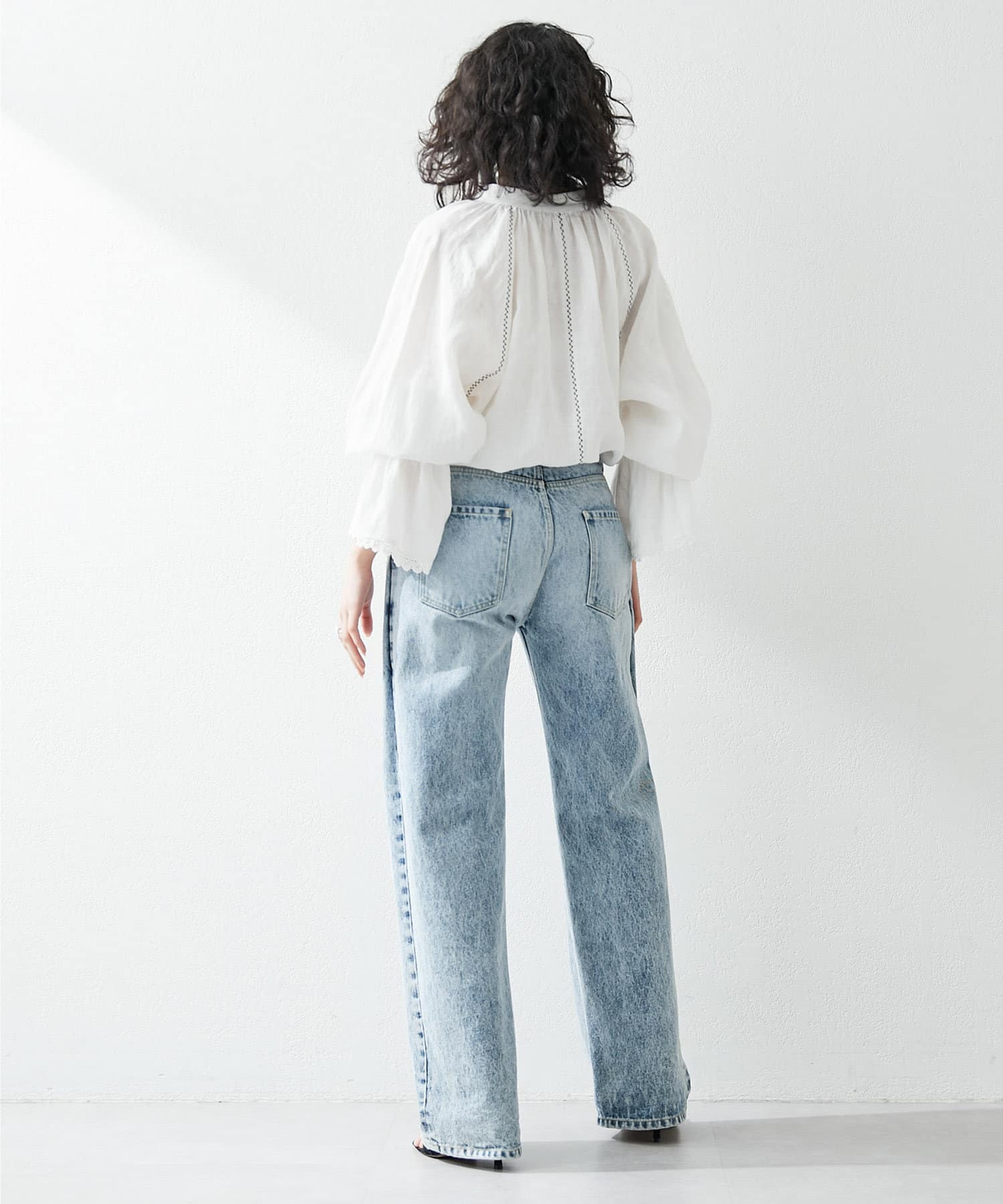 ■シーズンムードらしいリネン素材を使用し、洗いをかけることで表情を出した一枚。