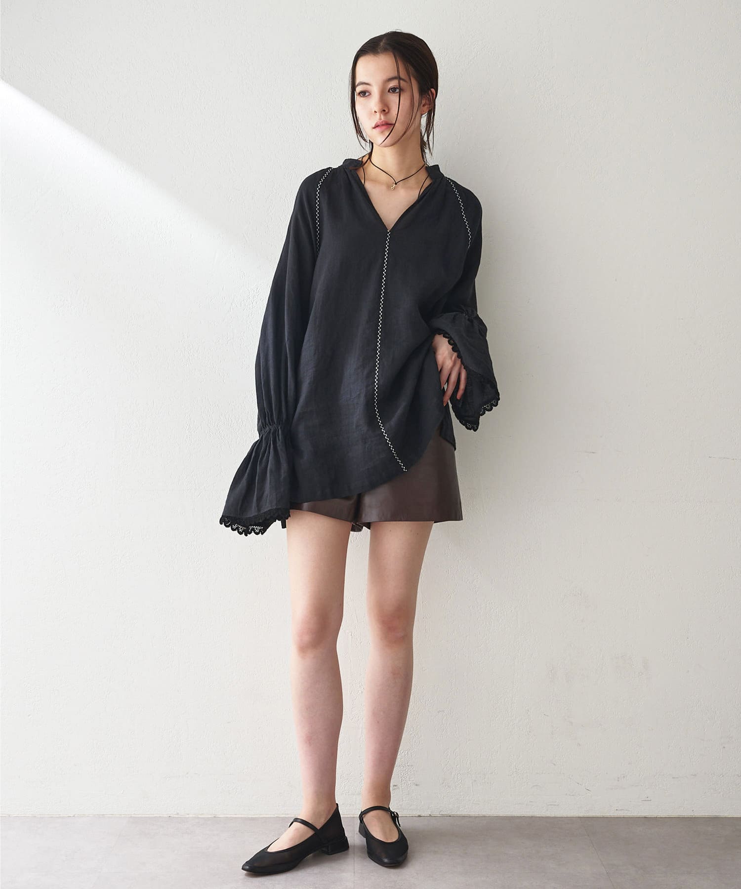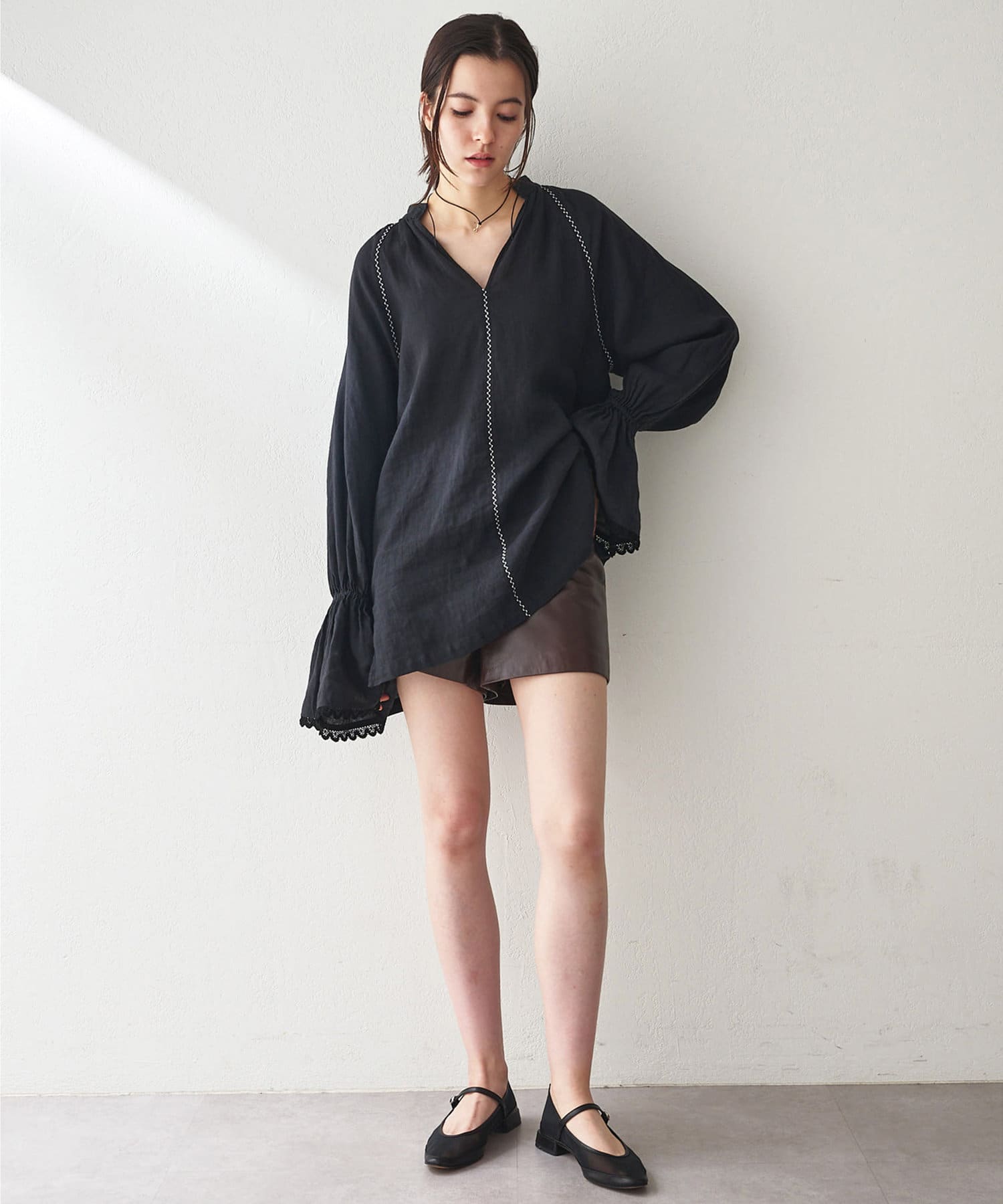ナチュラル感も洗練感も備えた、モダンなチュニックブラウス