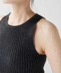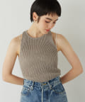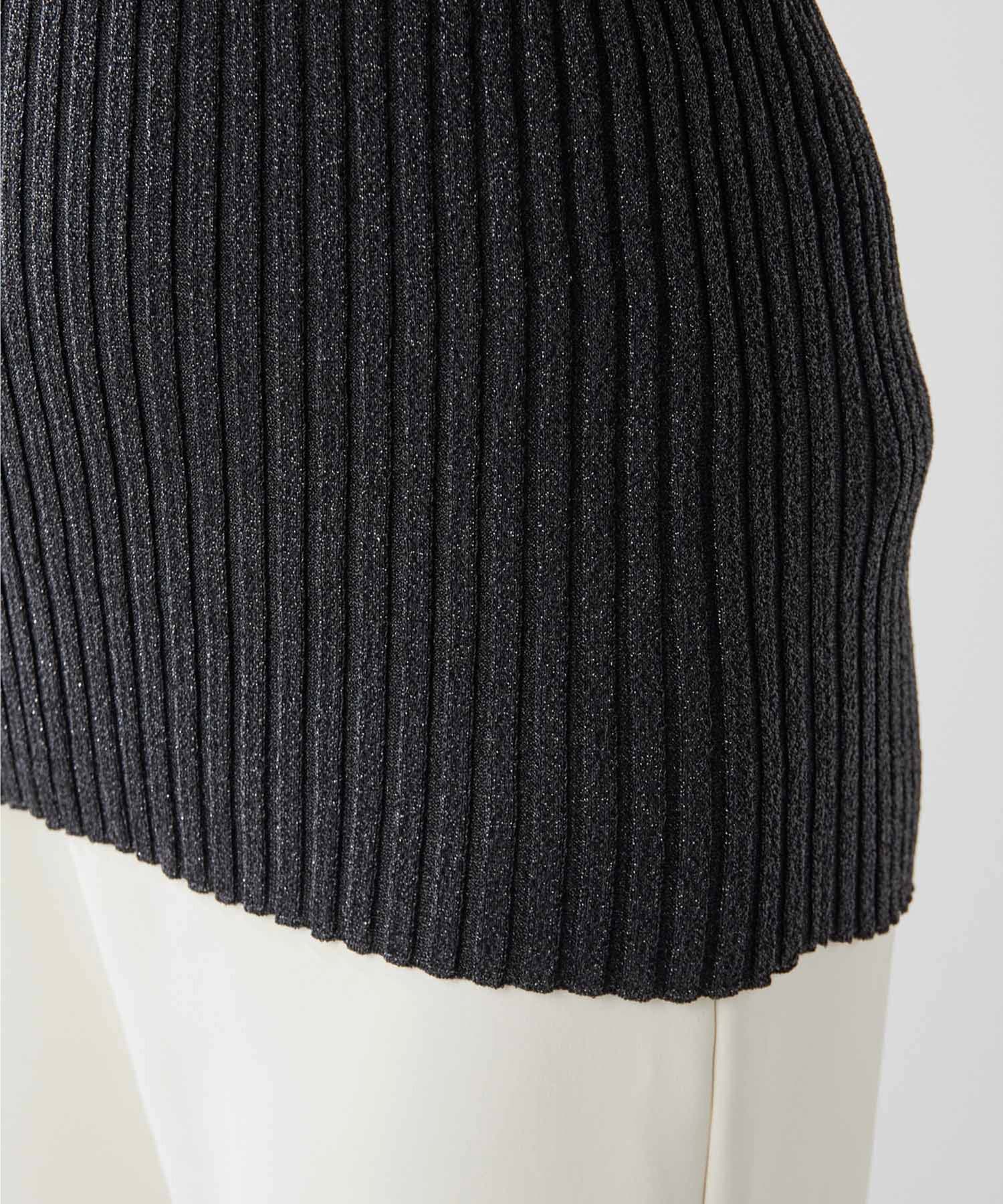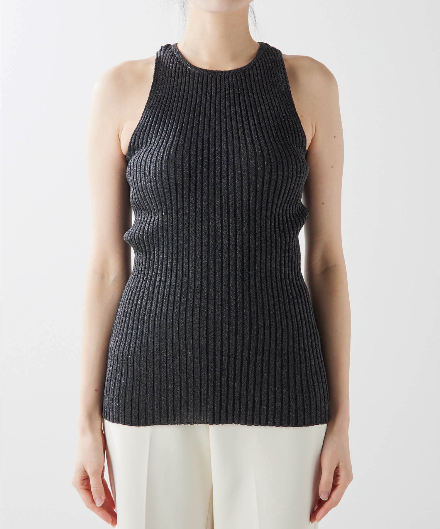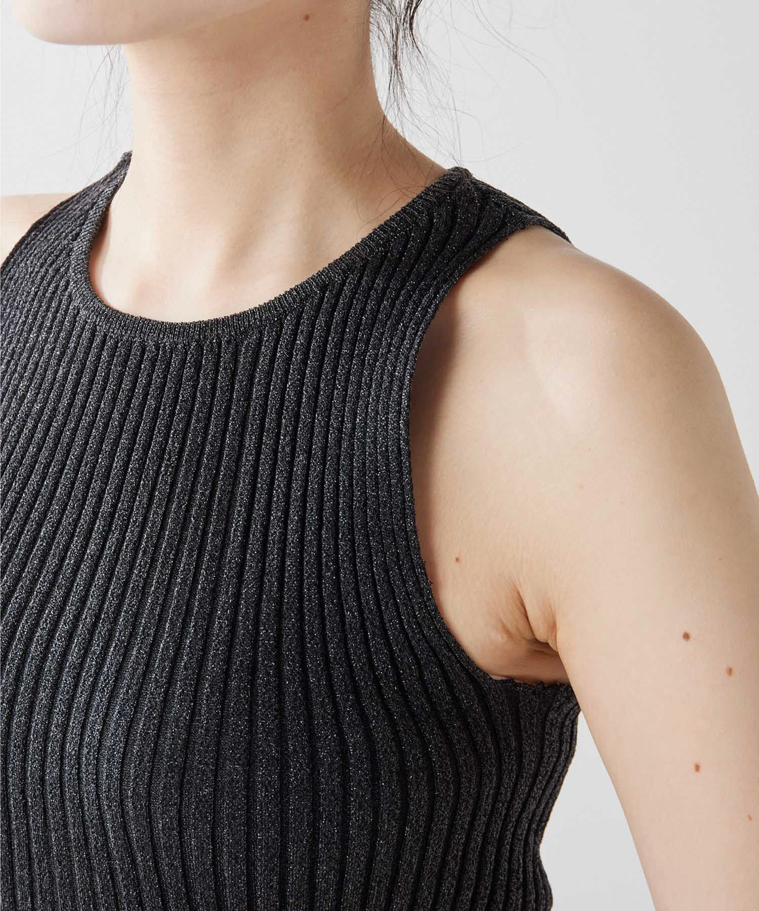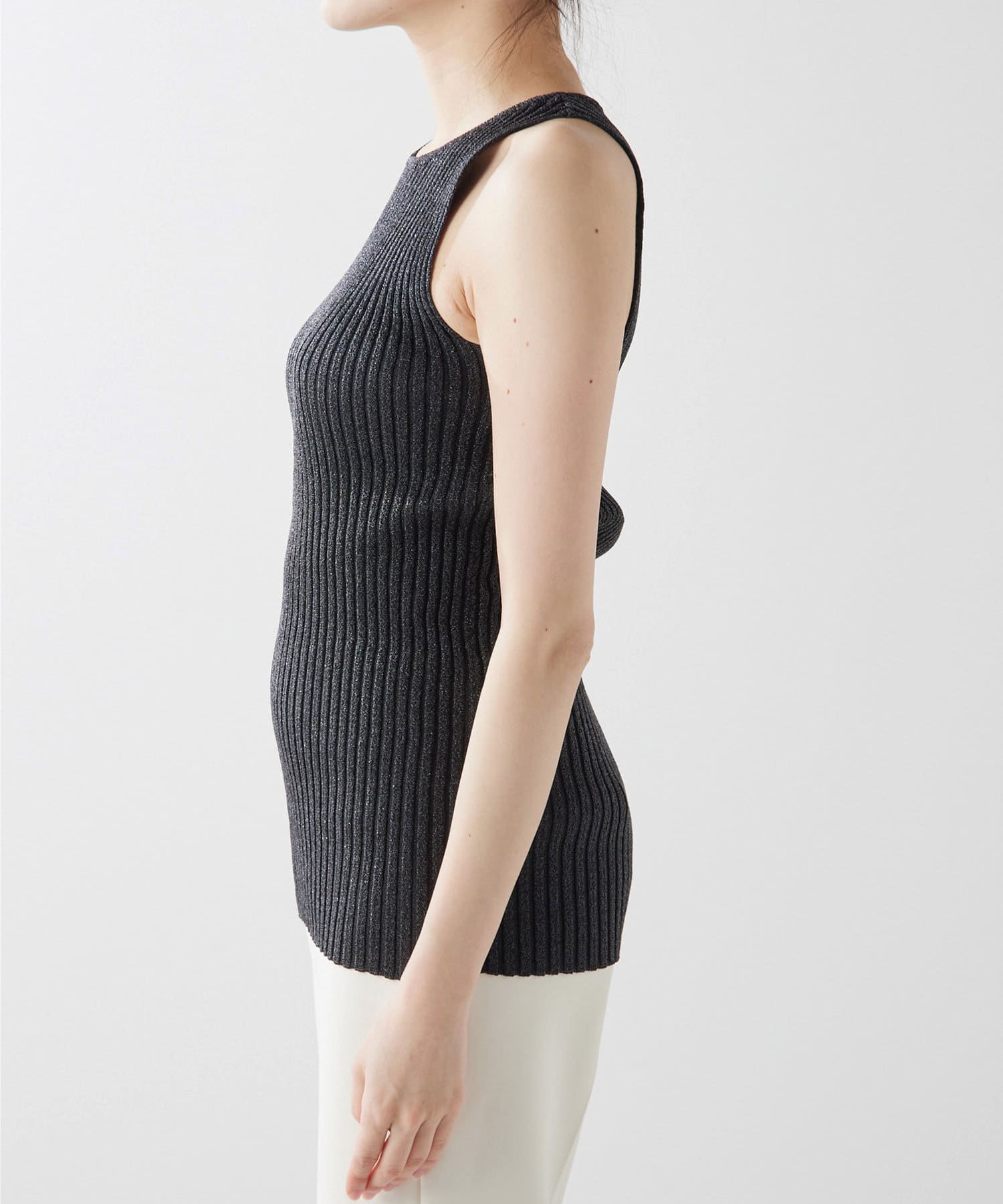 ■ラメの輝きが存在感のあるコンパクトなノースリーブニット。