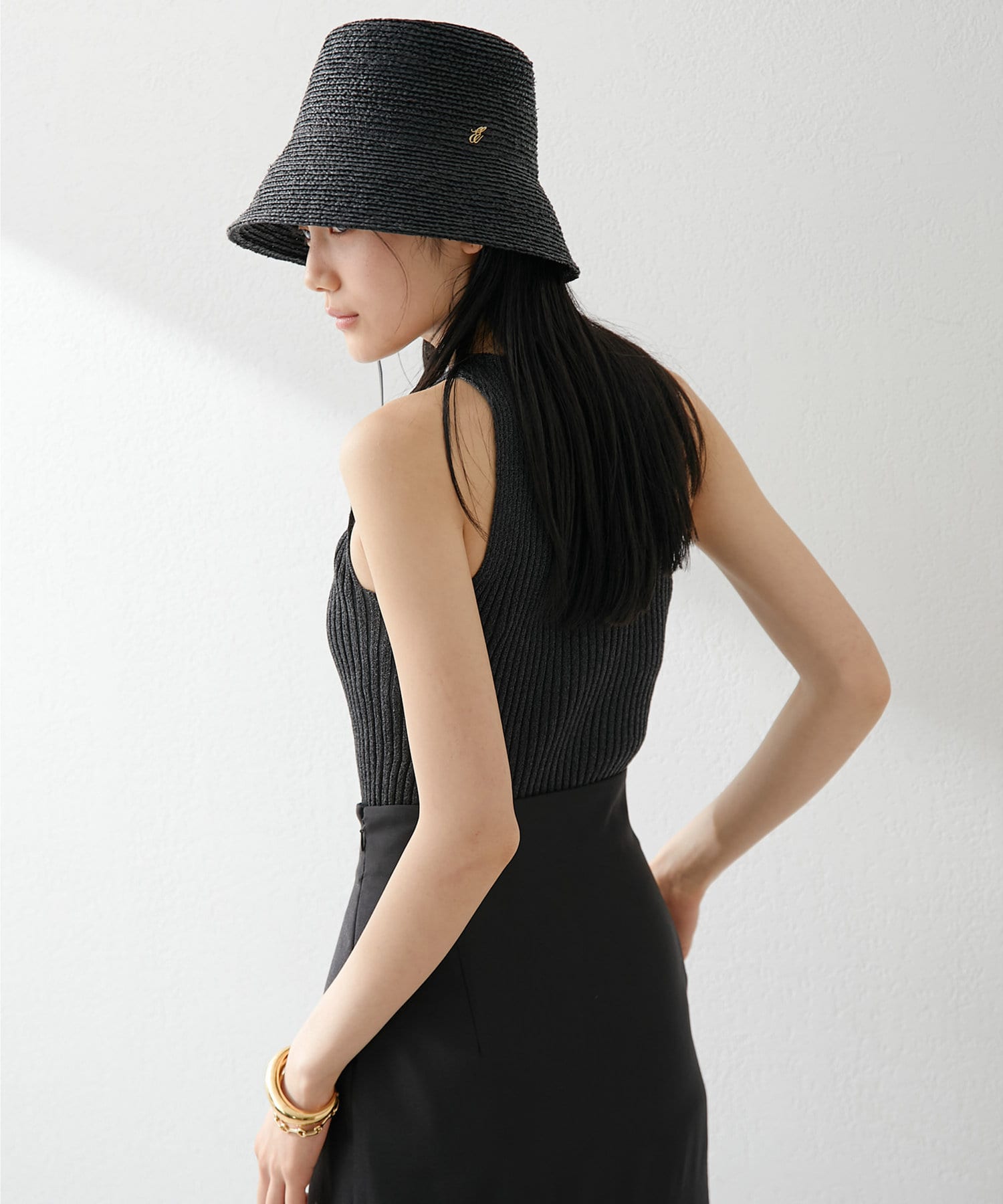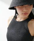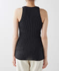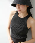 ■すっきりとしたシルエットながら、リブの表情が華やかで一枚でもサマになるデザイン。