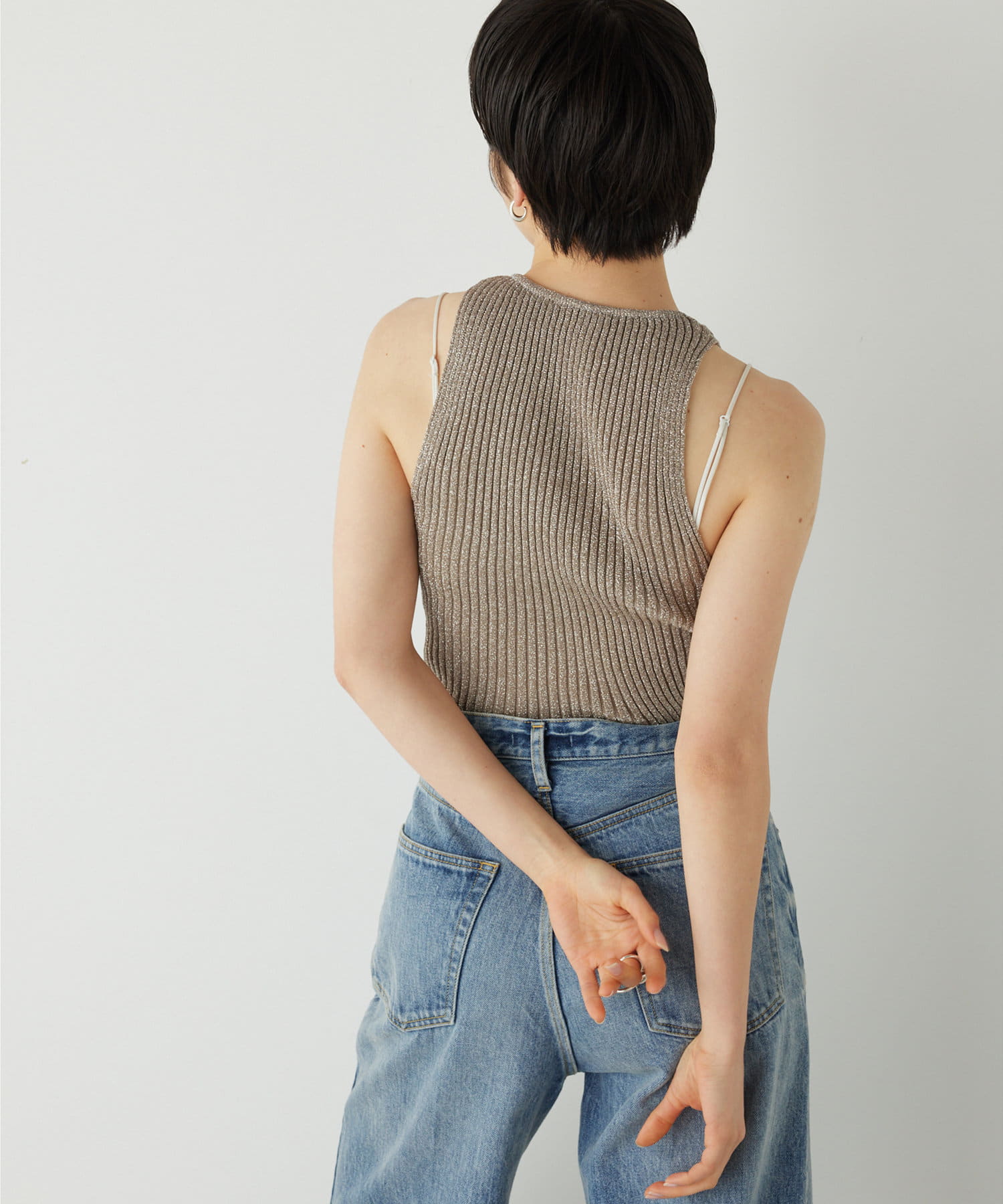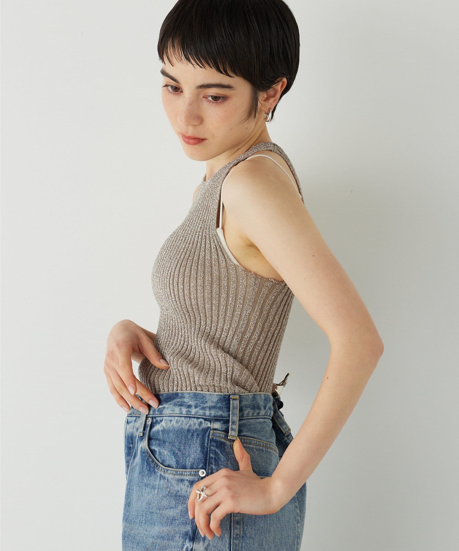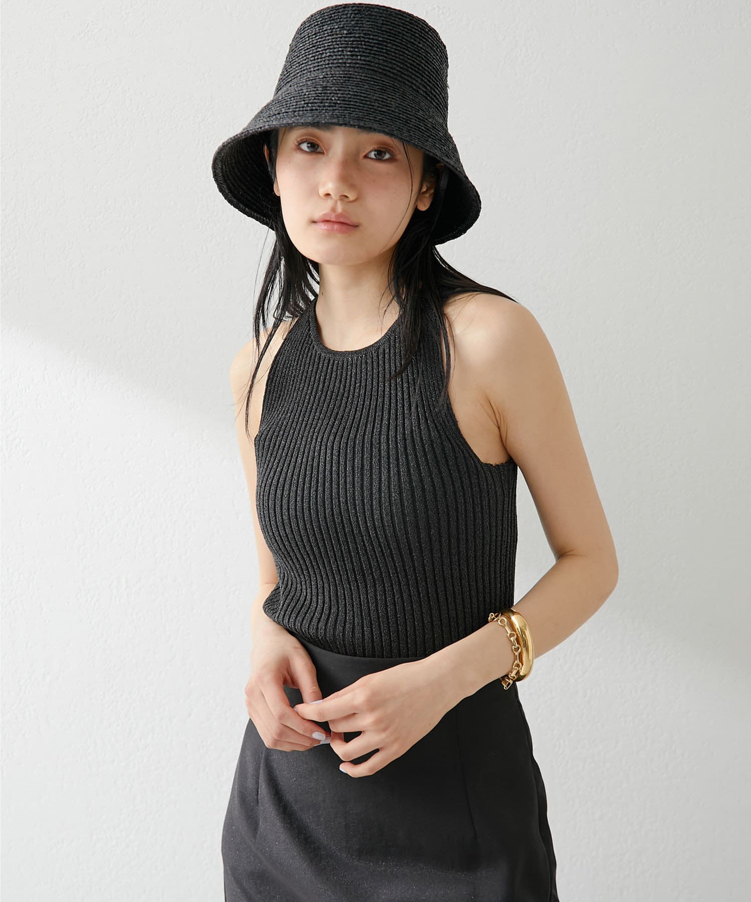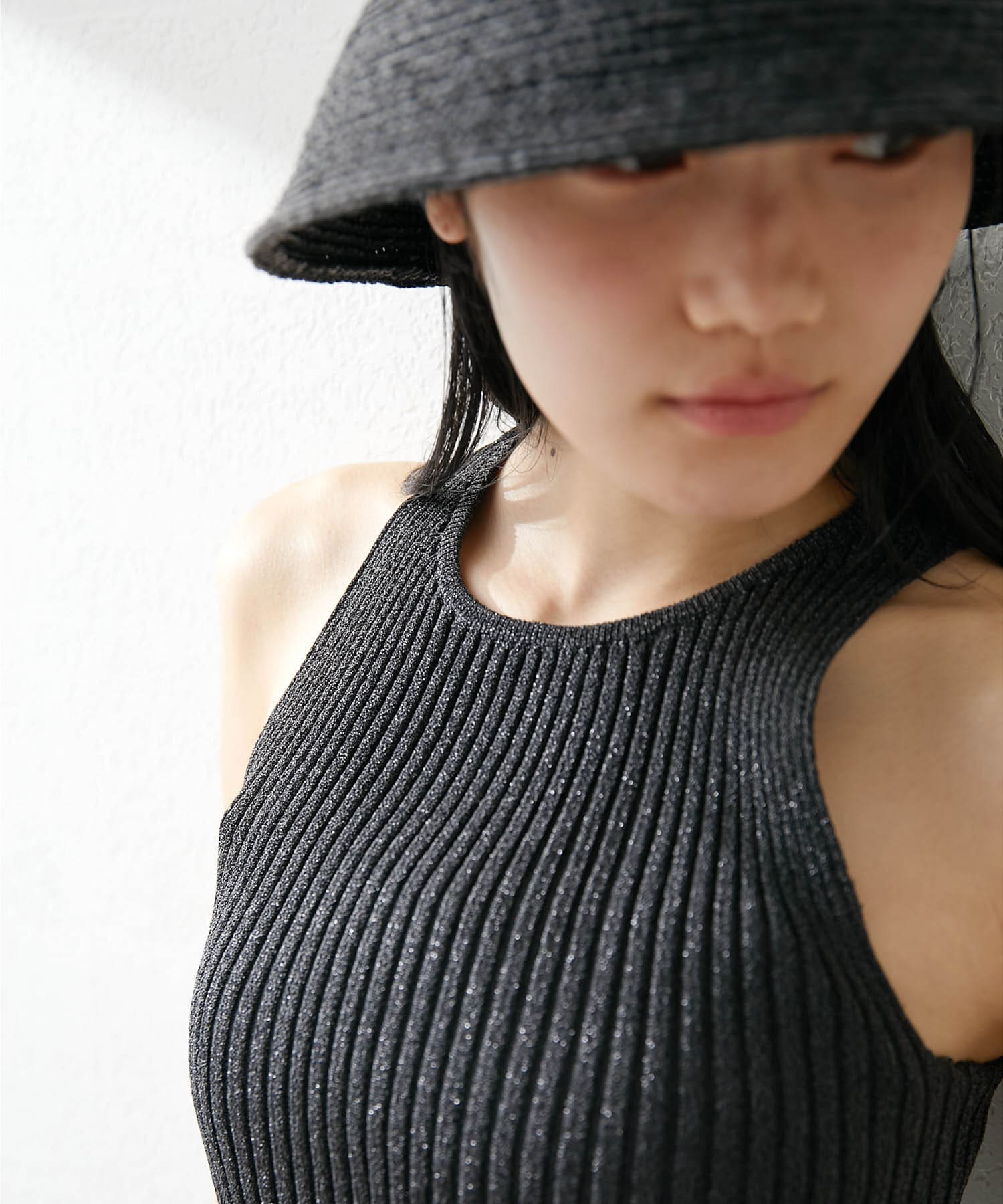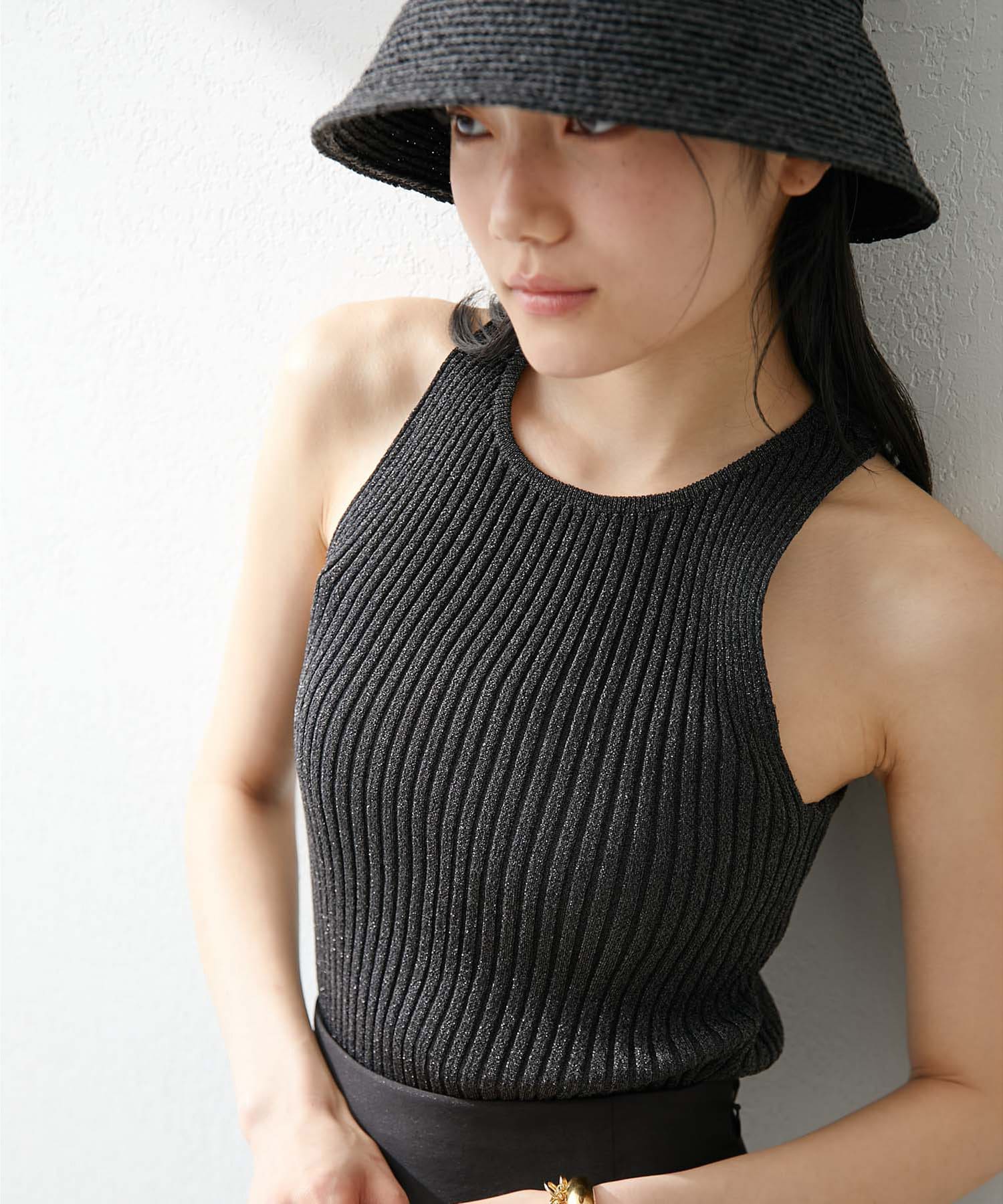 春夏コーデに華やかな表情を添えるラメニットタンク