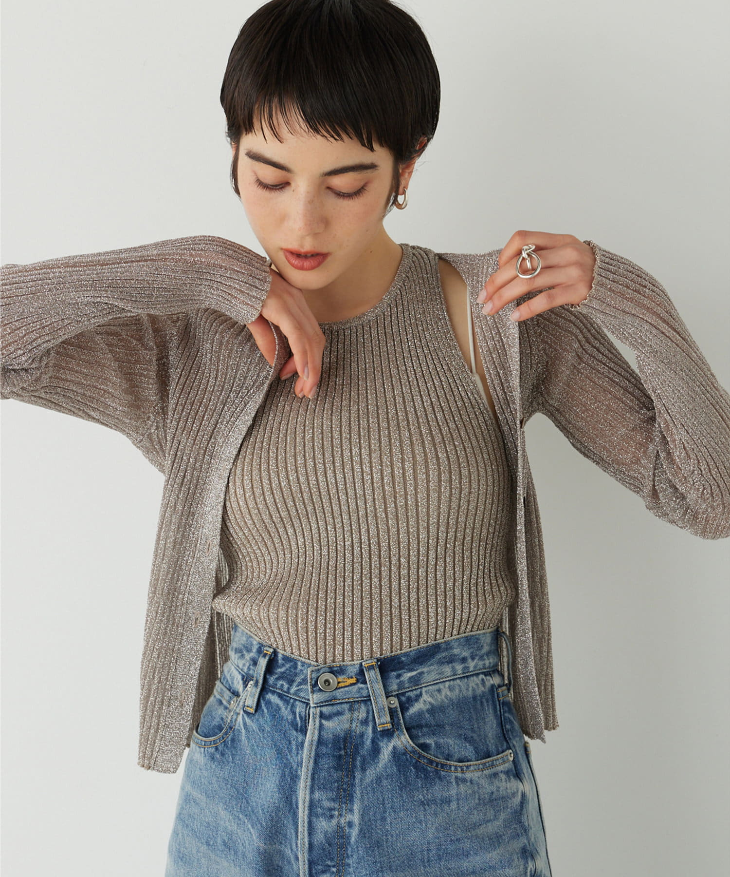■同素材のラメリブカーディガン(ブランド品番:WGZ1041305A0004)とのアンサンブルもおすすめ。