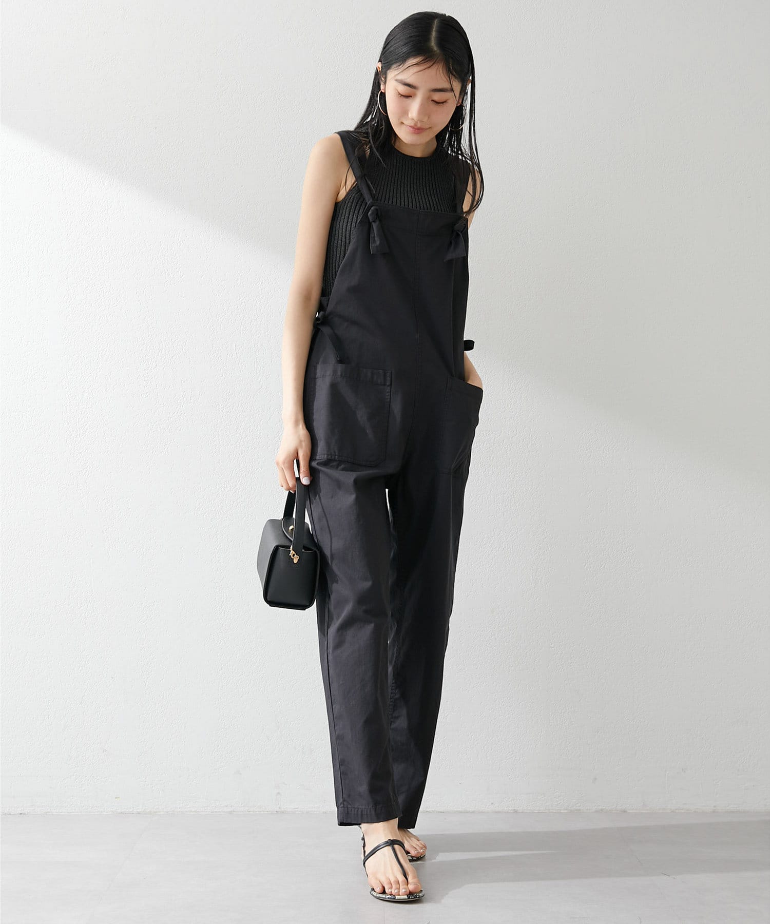 引き続き人気のあるアメスリデザインで肩回りはしっかりと出ます。ヘルシーに着たい方は一枚で、あまり露出したくない方は薄手のカーディガンやリネンシャツなどを羽織るのがおすすめです。程よくフィット感のあるシルエットですが、肉感を拾いにくい生地でお腹周りが気になる私でも比較的安心して着用出来ました。