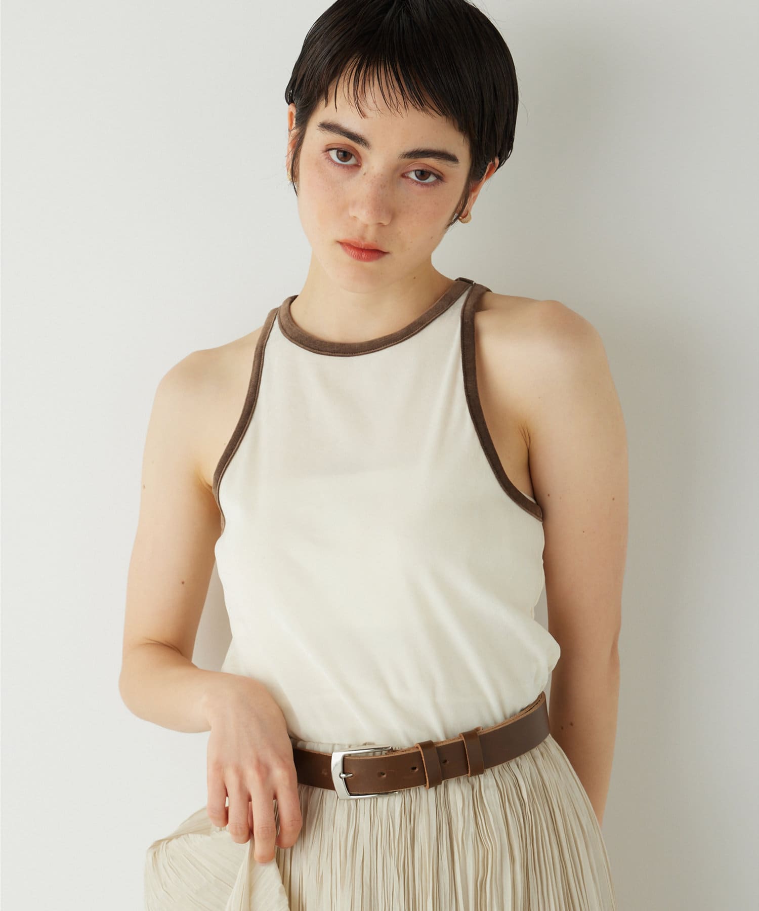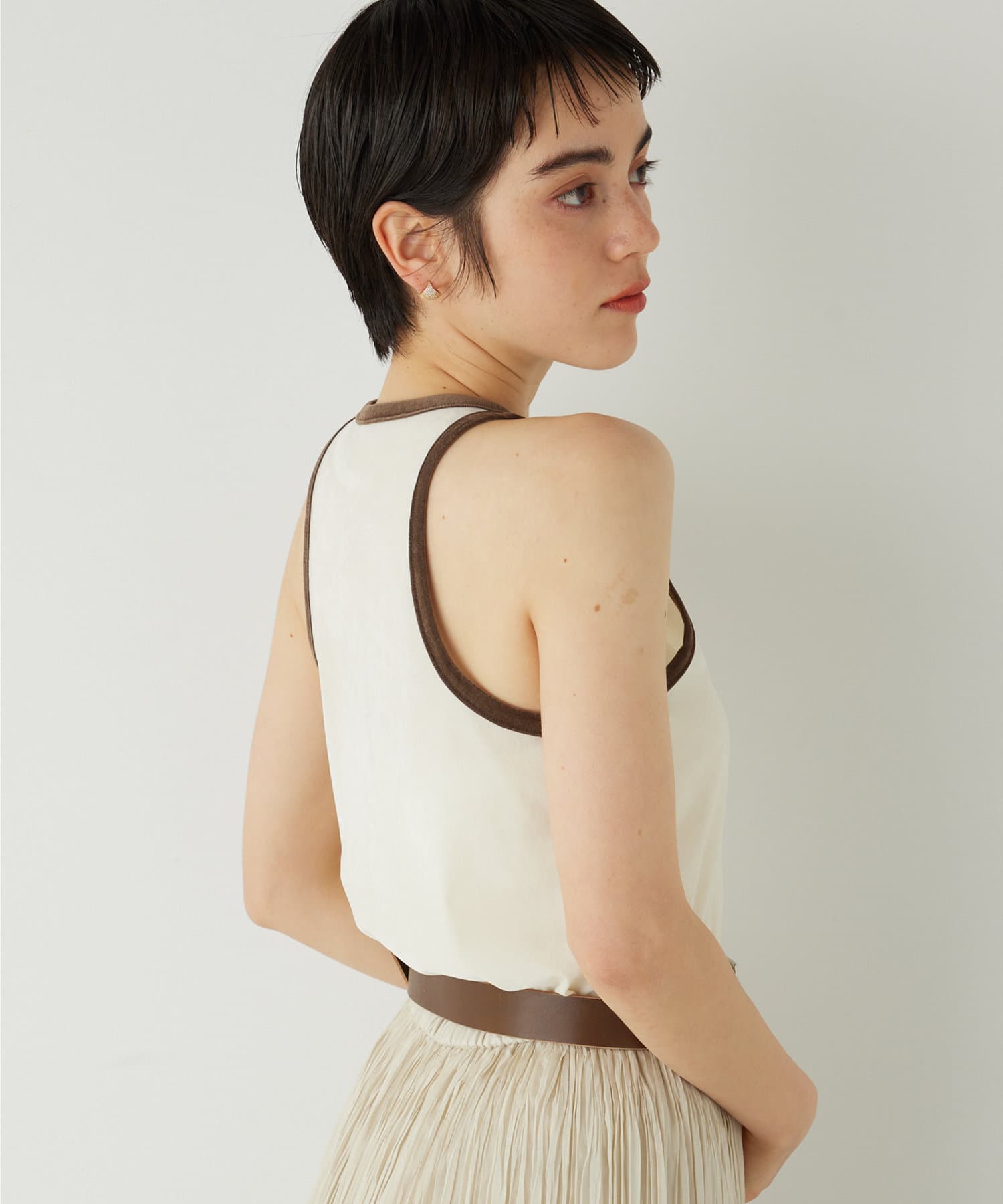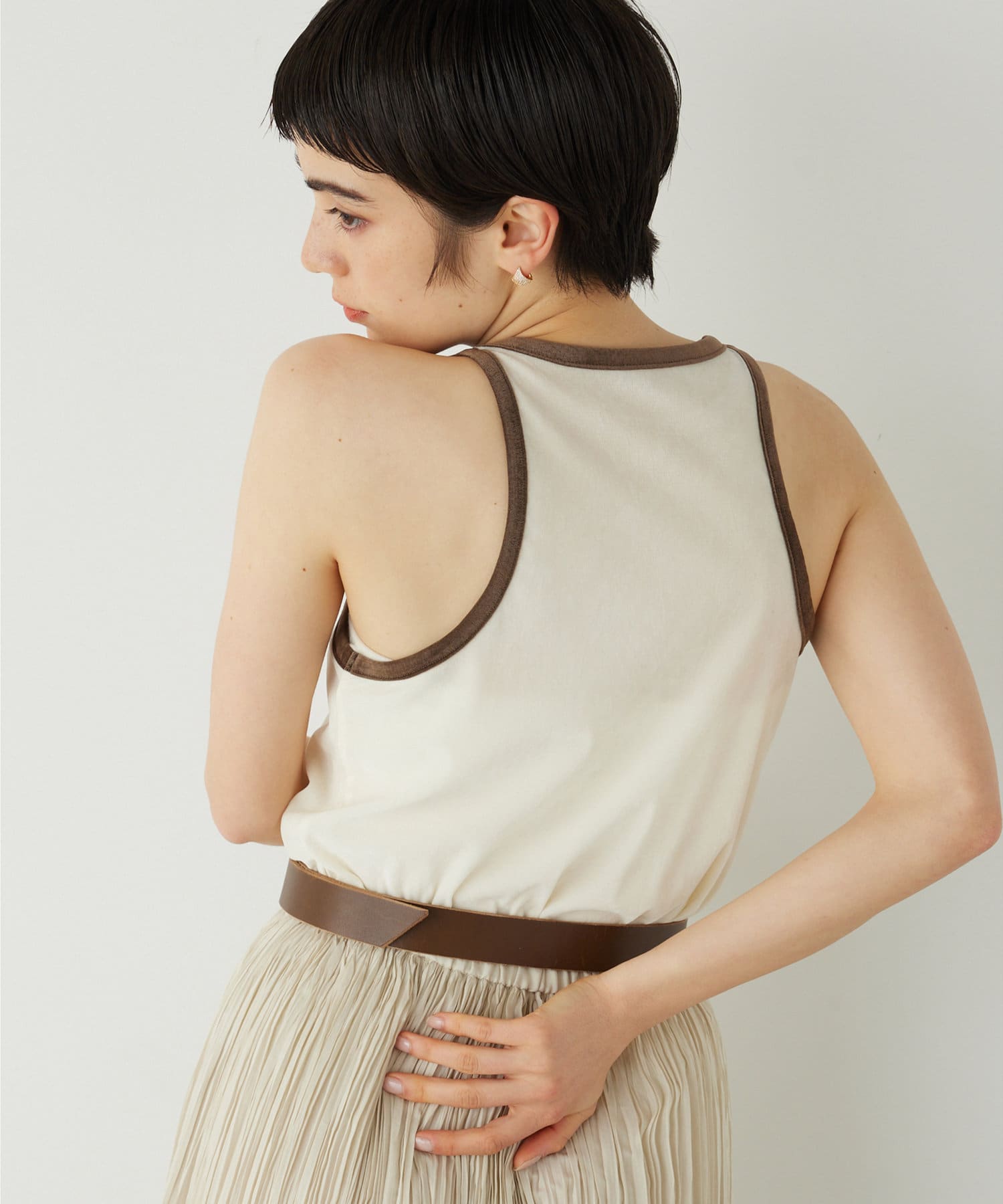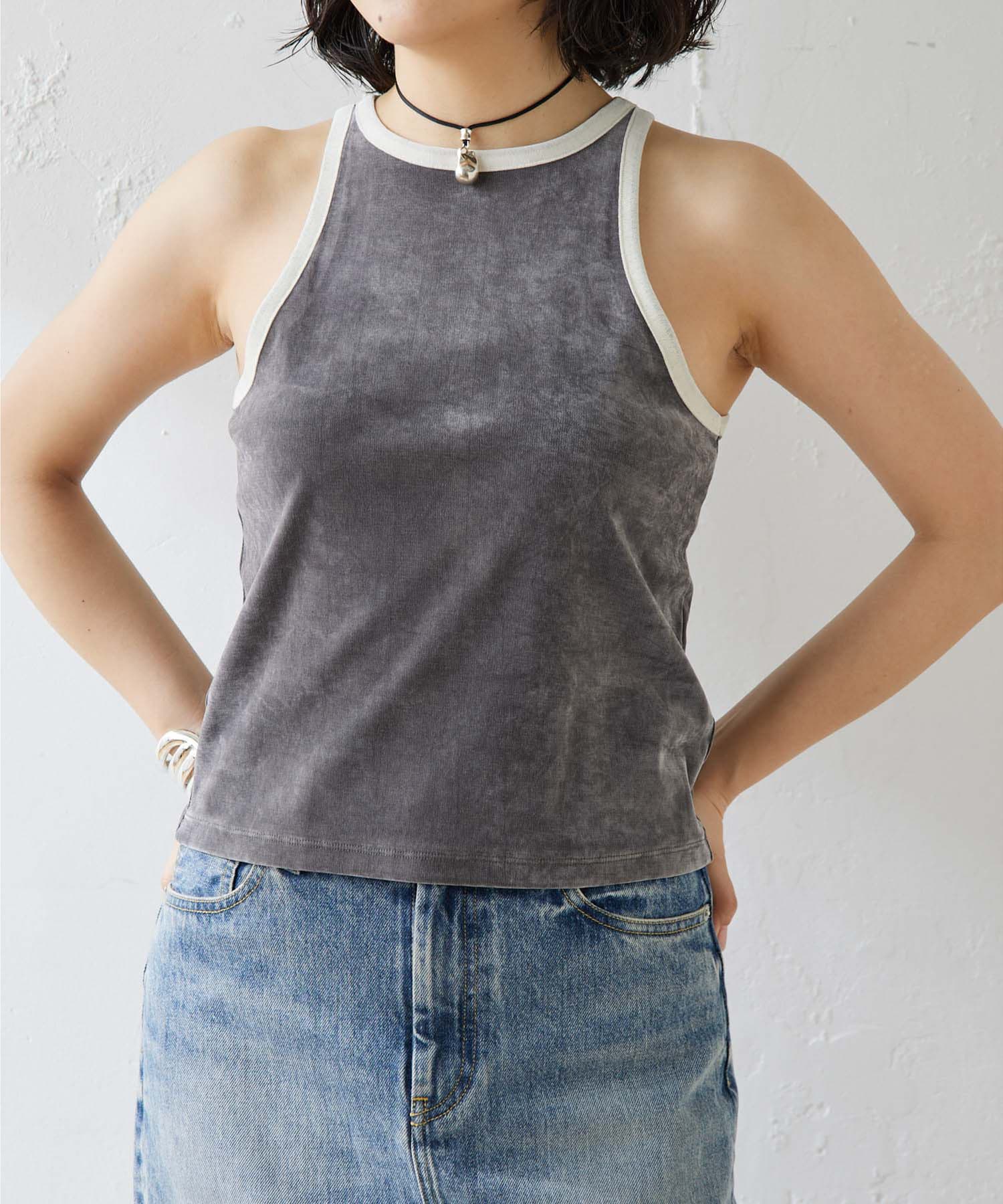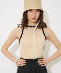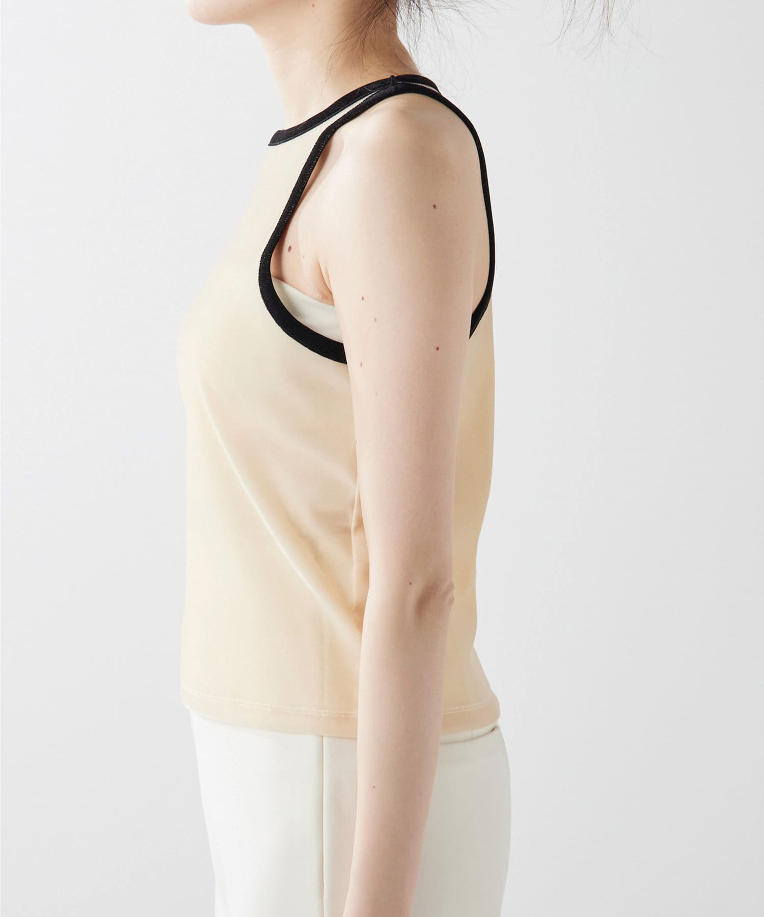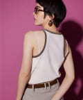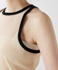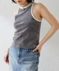■首元と袖の配色がポイントのタンクトップ。