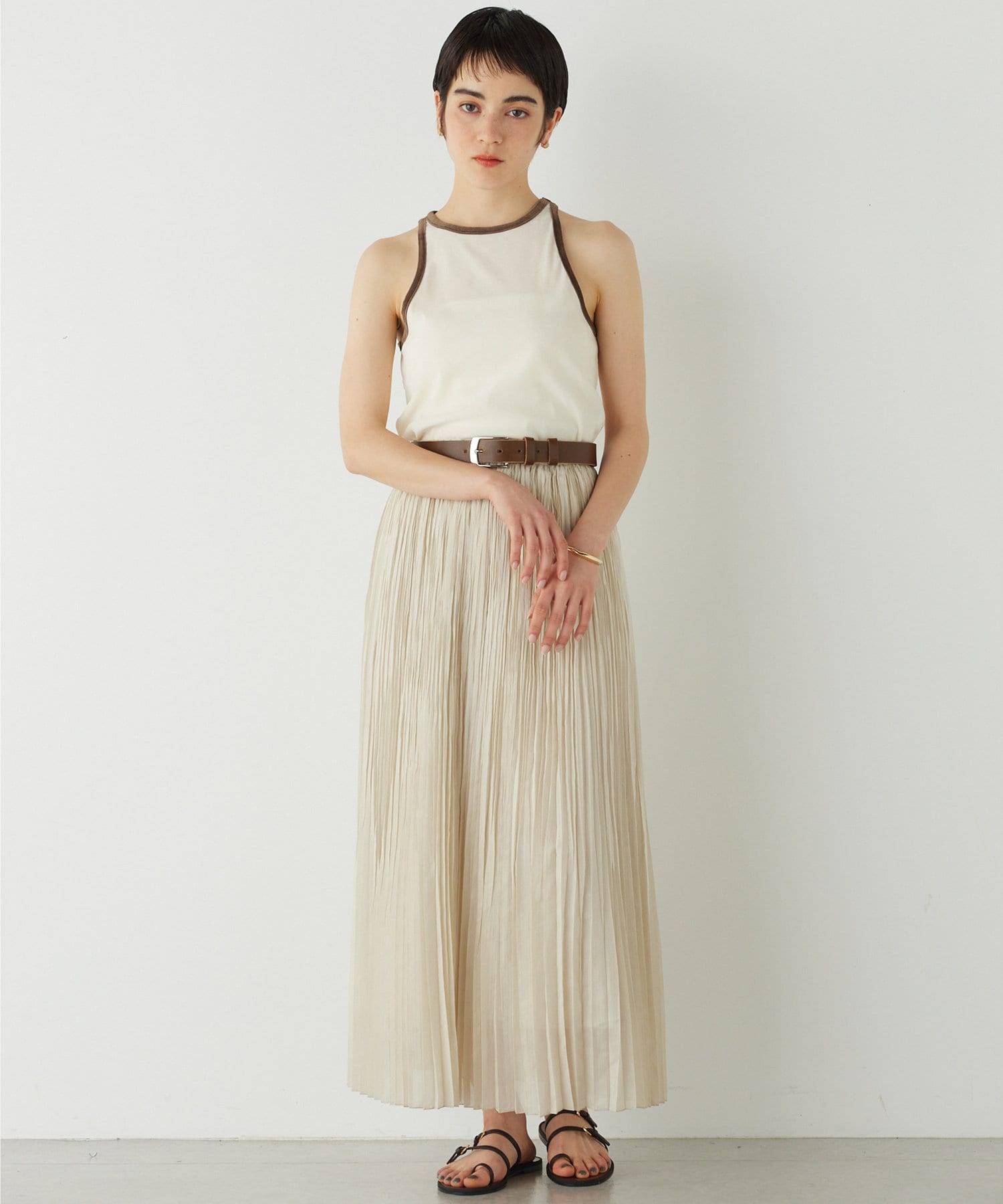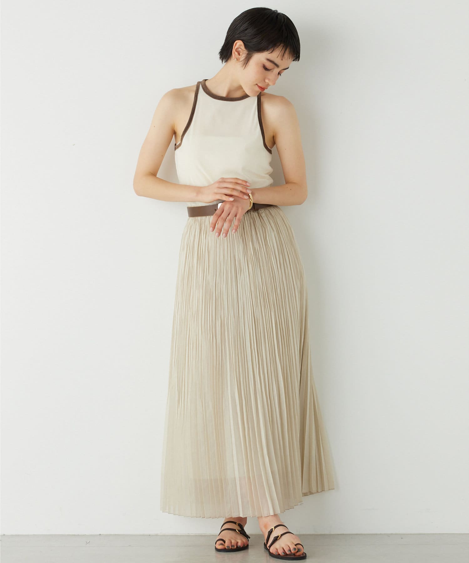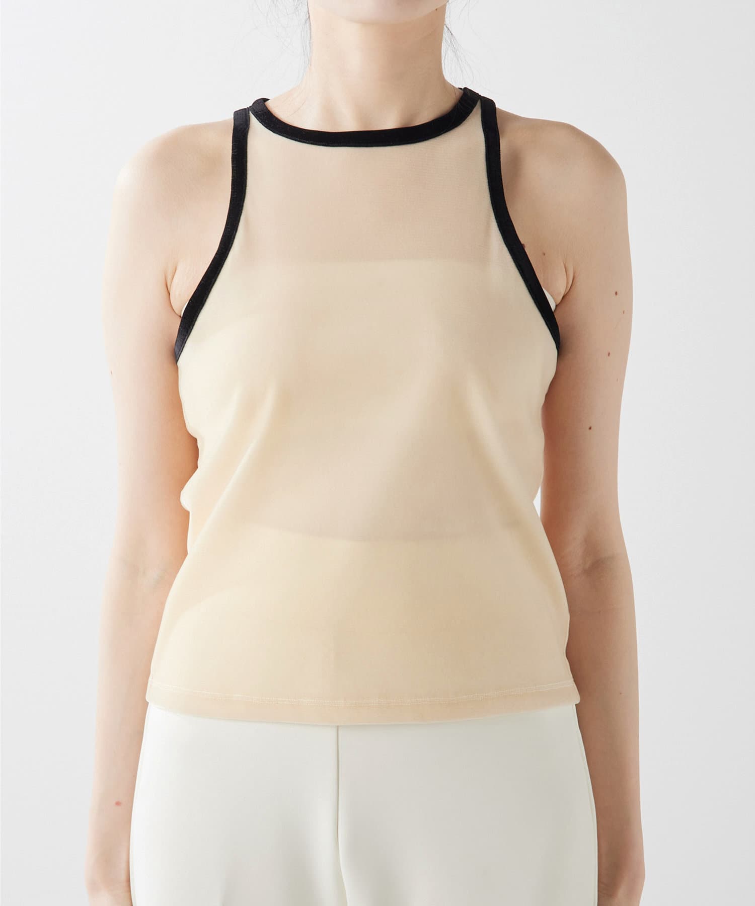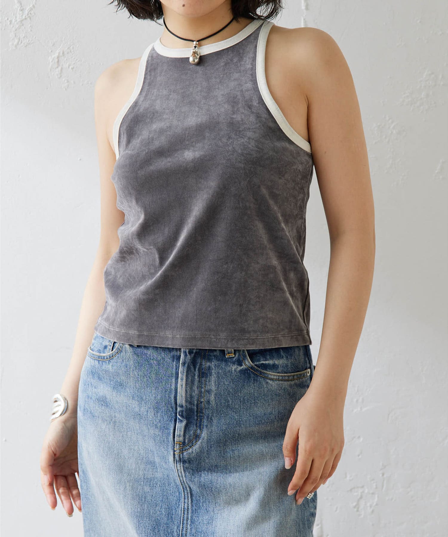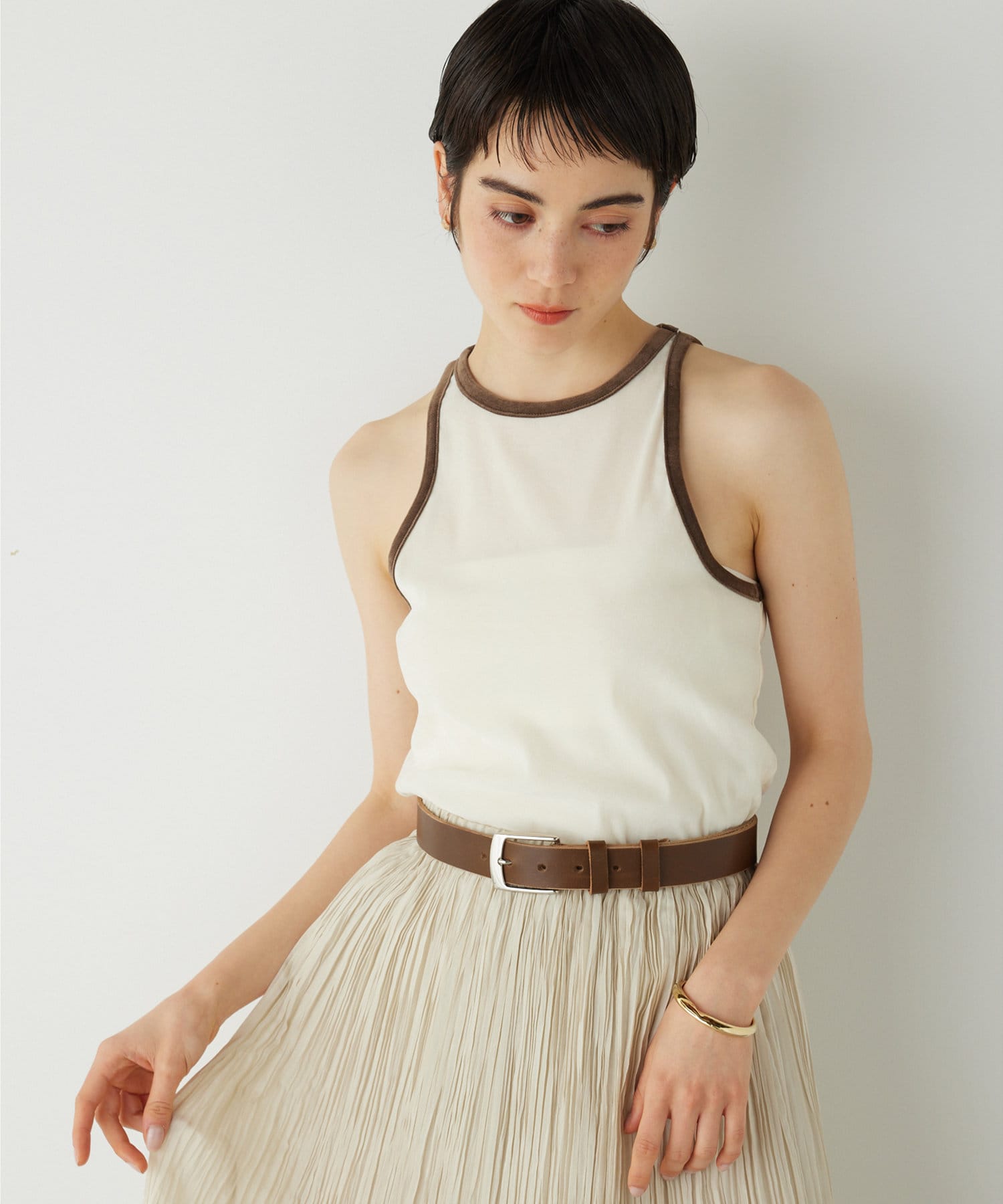 ■首元と袖の配色がポイントのタンクトップ。