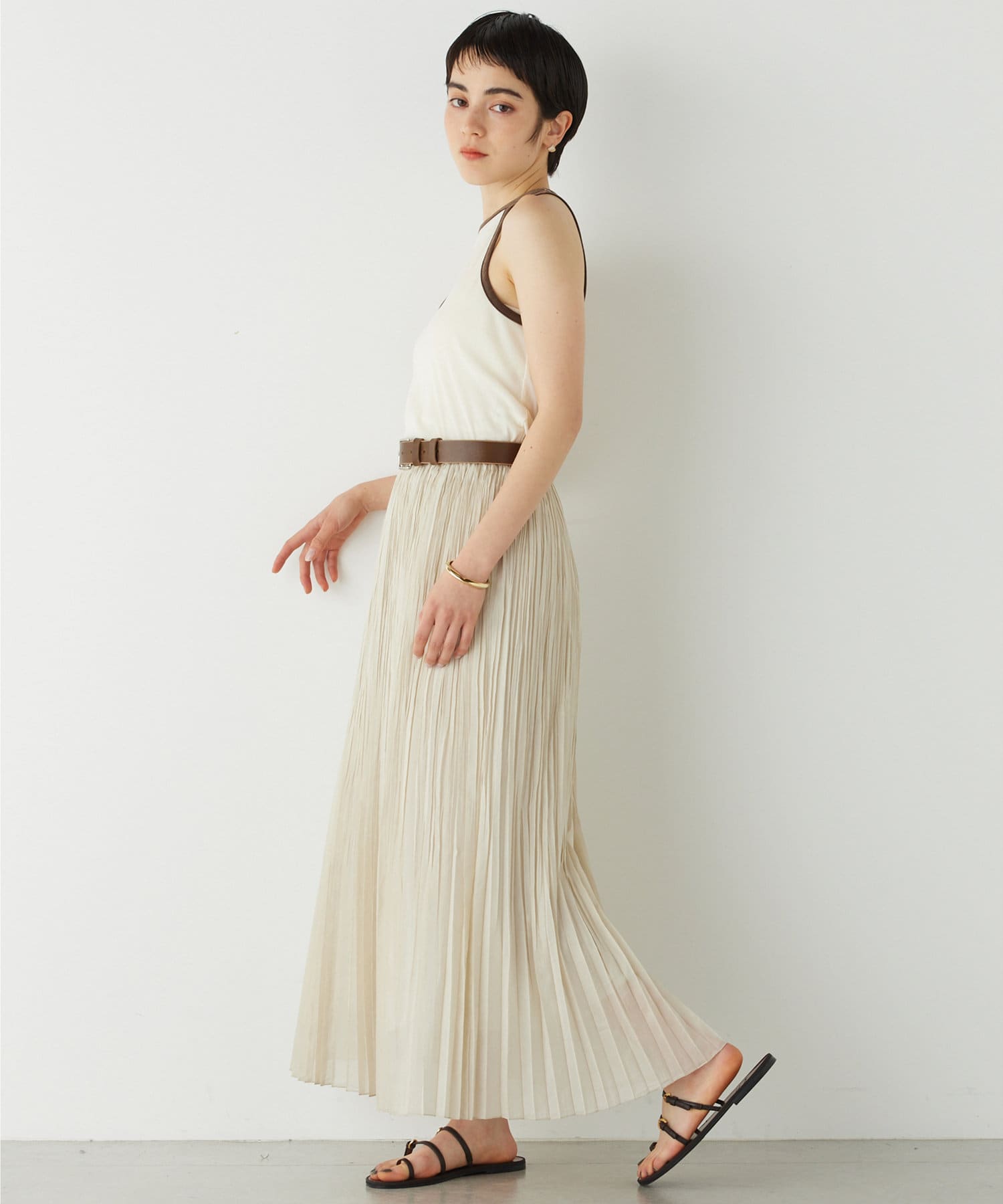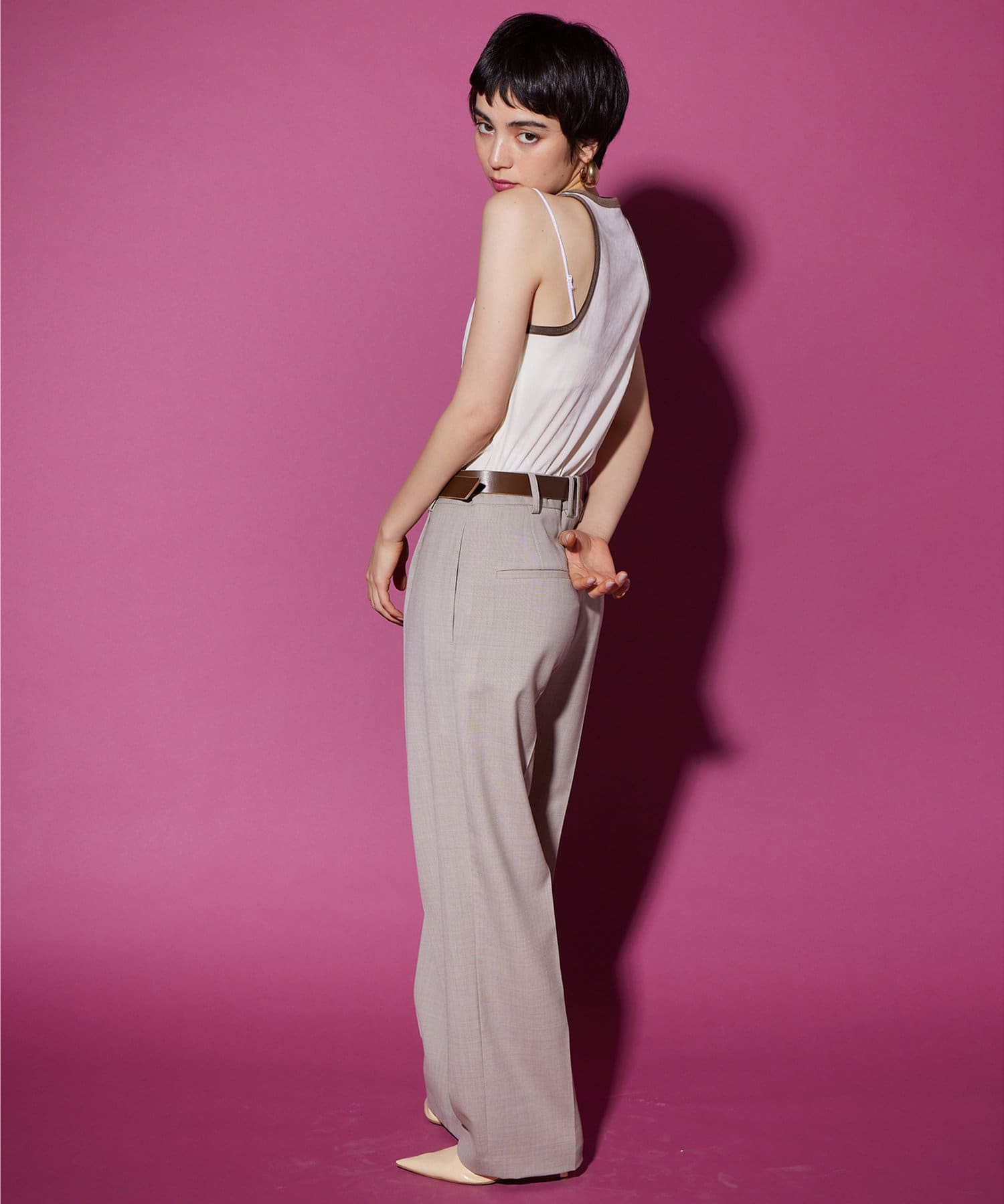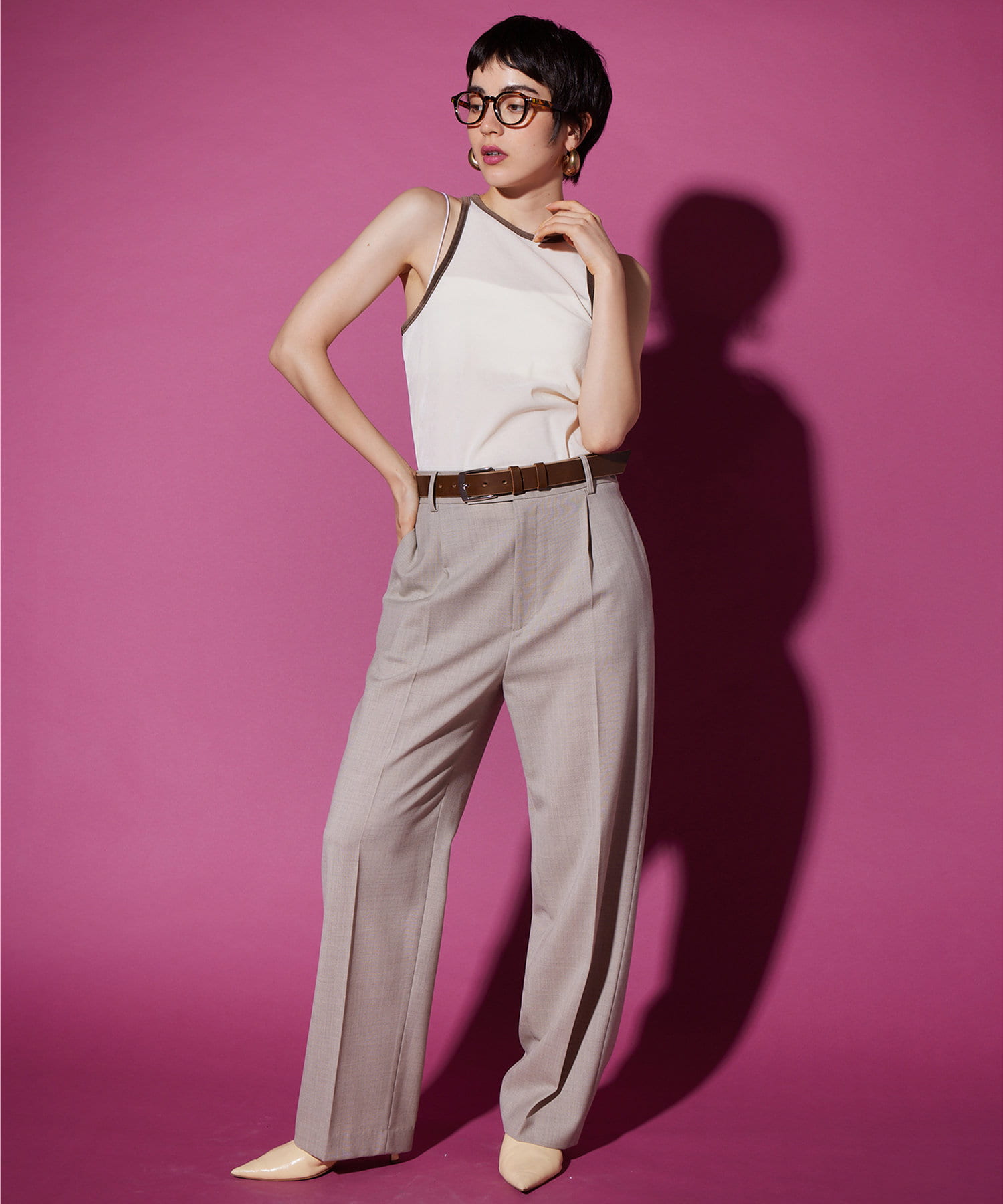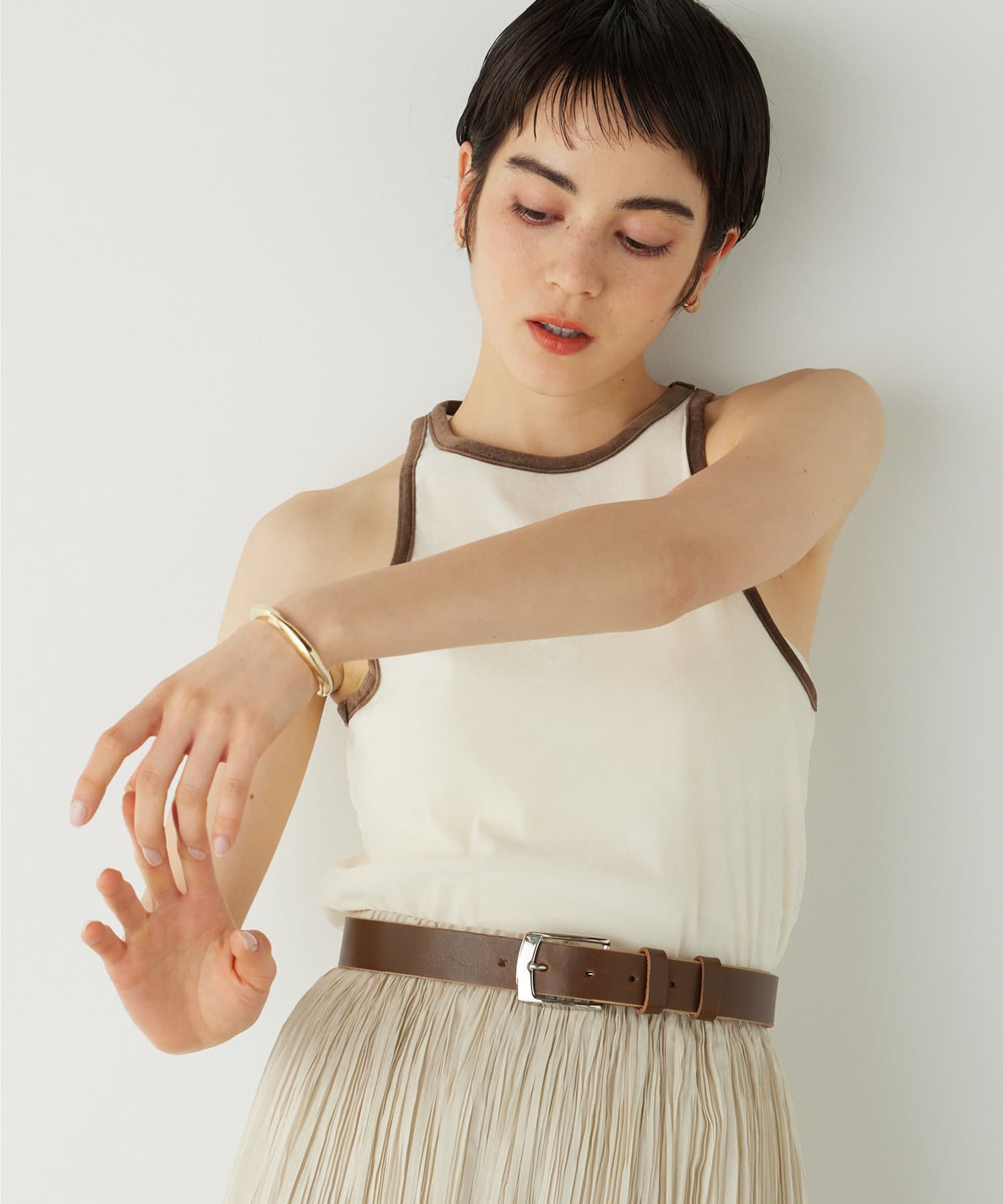 ■肩を大胆に開けたアメスリデザインが、ヘルシーで洗練されたコーディネートに導いてくれるアイテム。