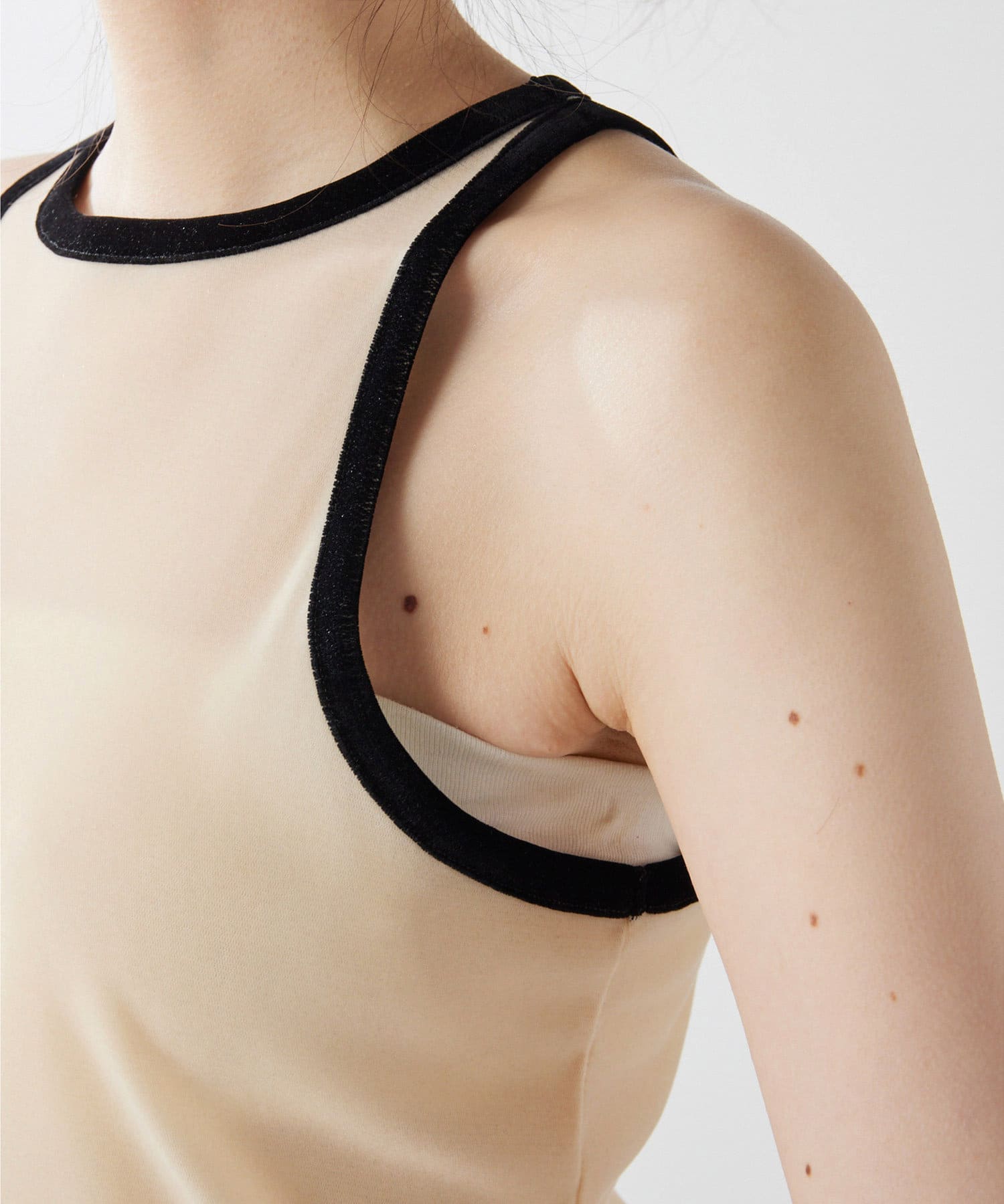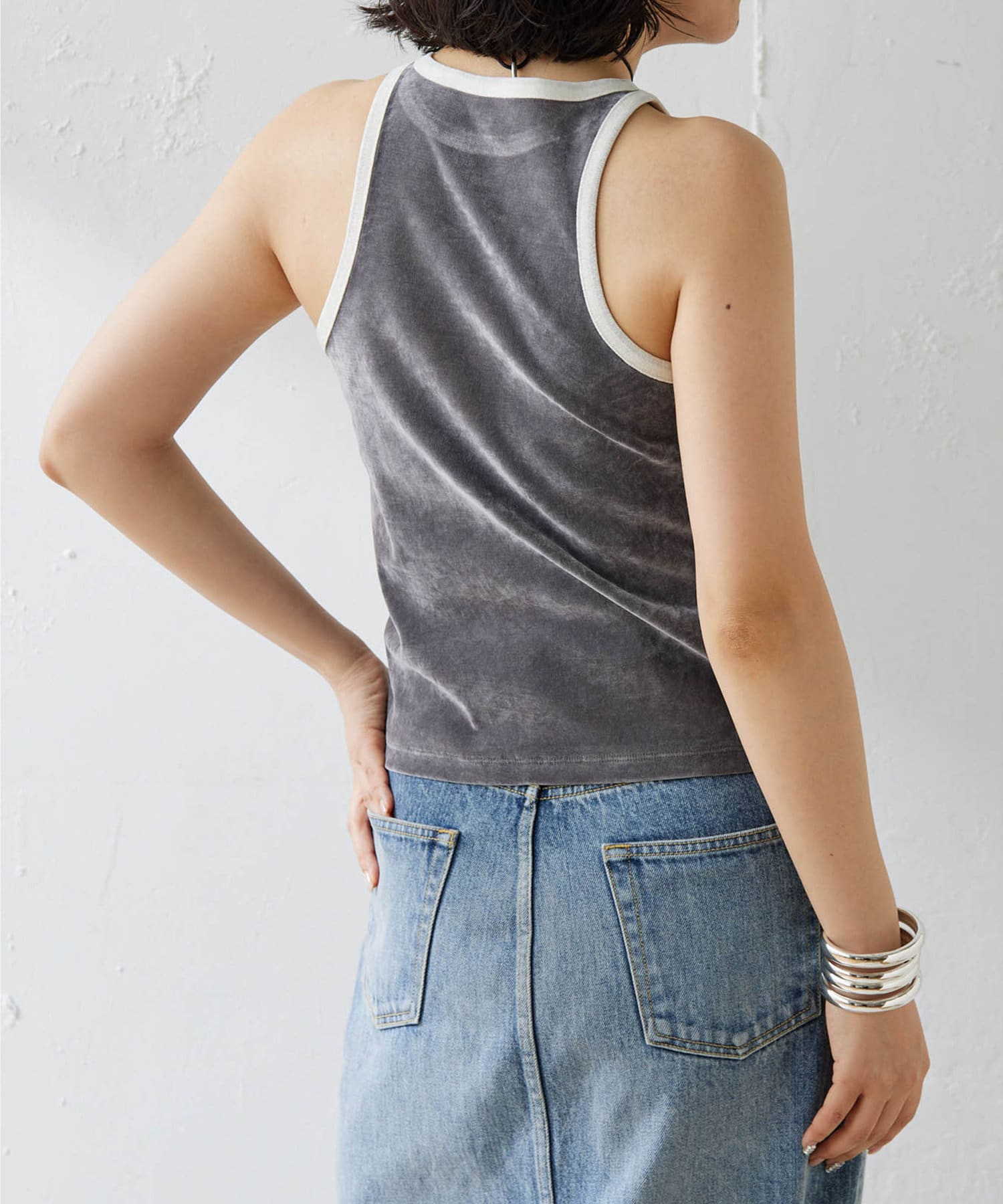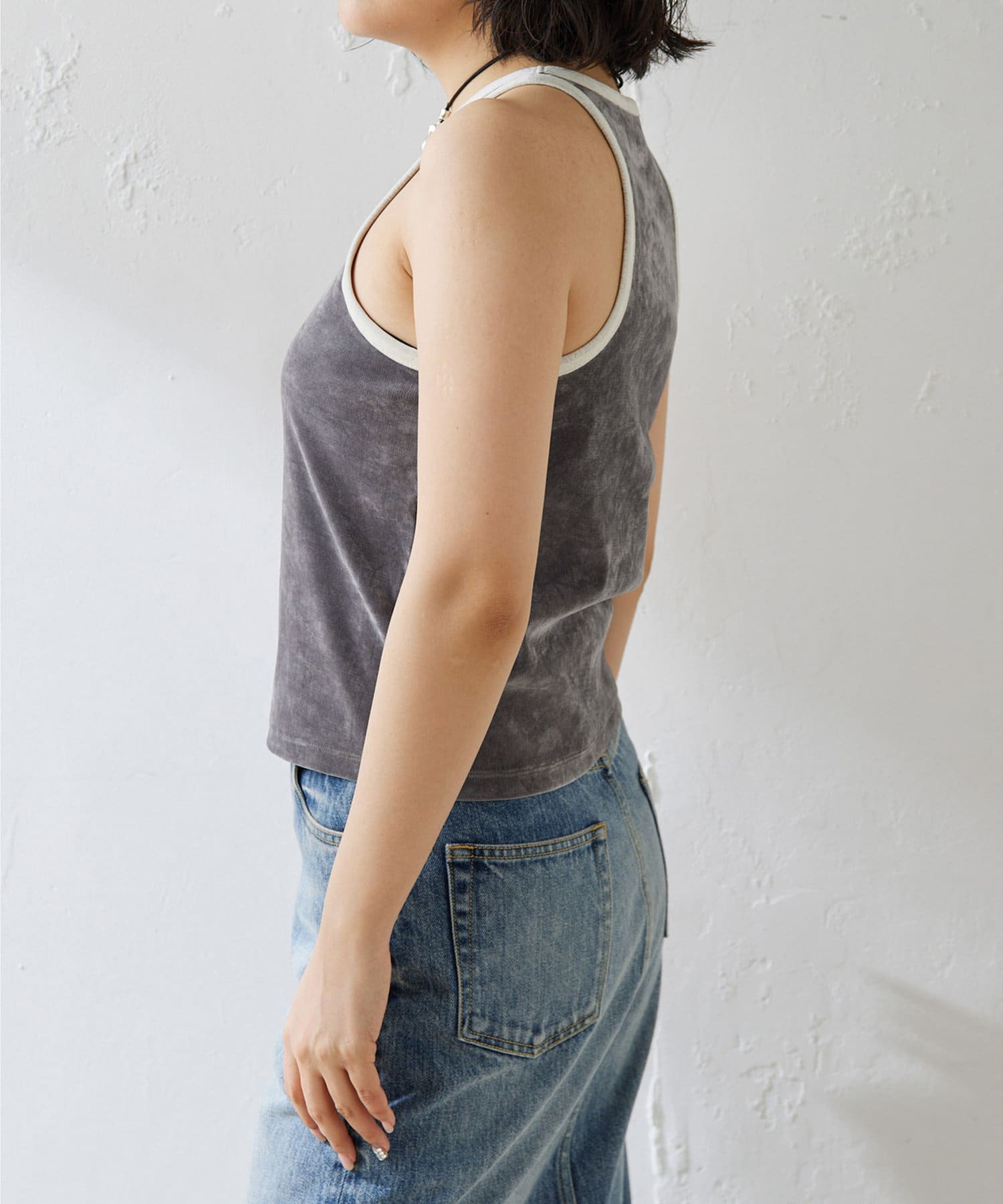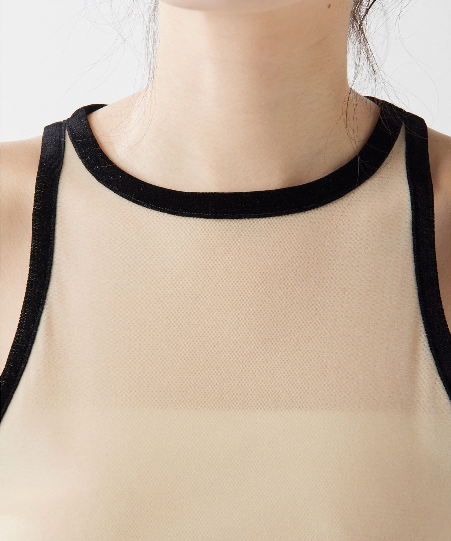 ベロアのような表情が魅力のフロッキーメッシュタンク