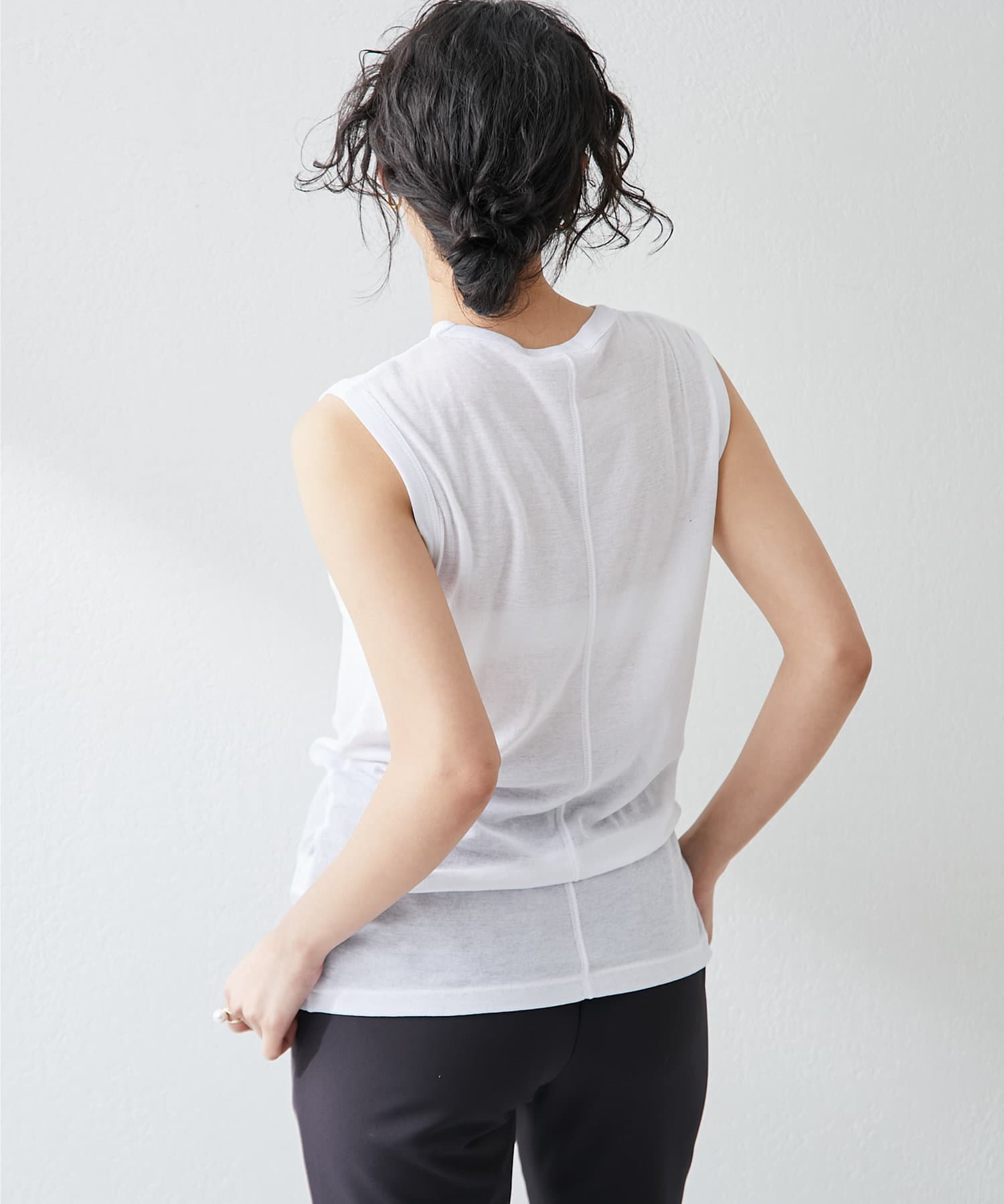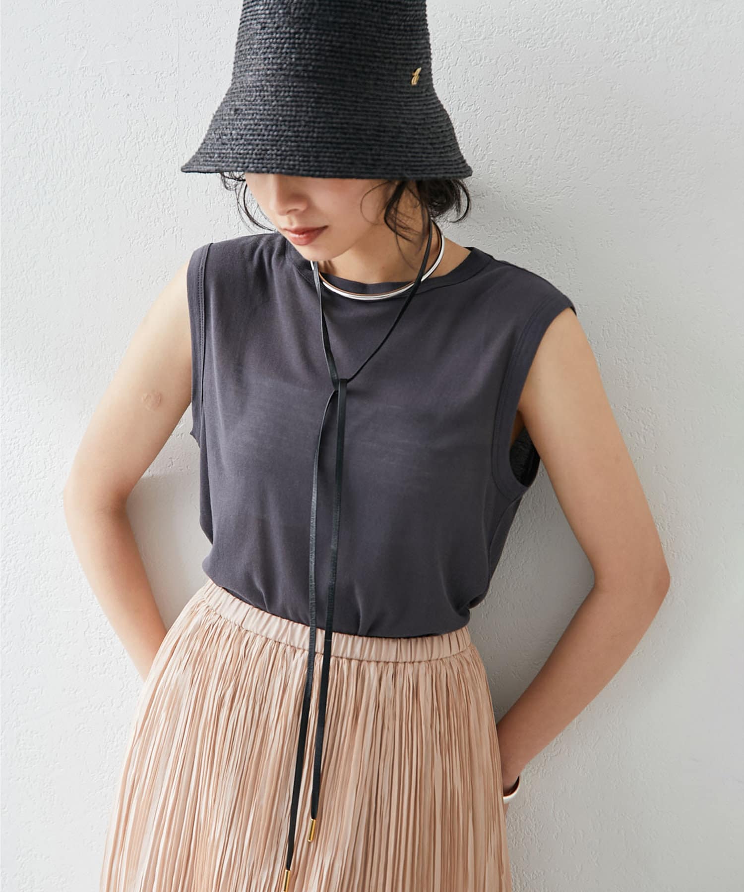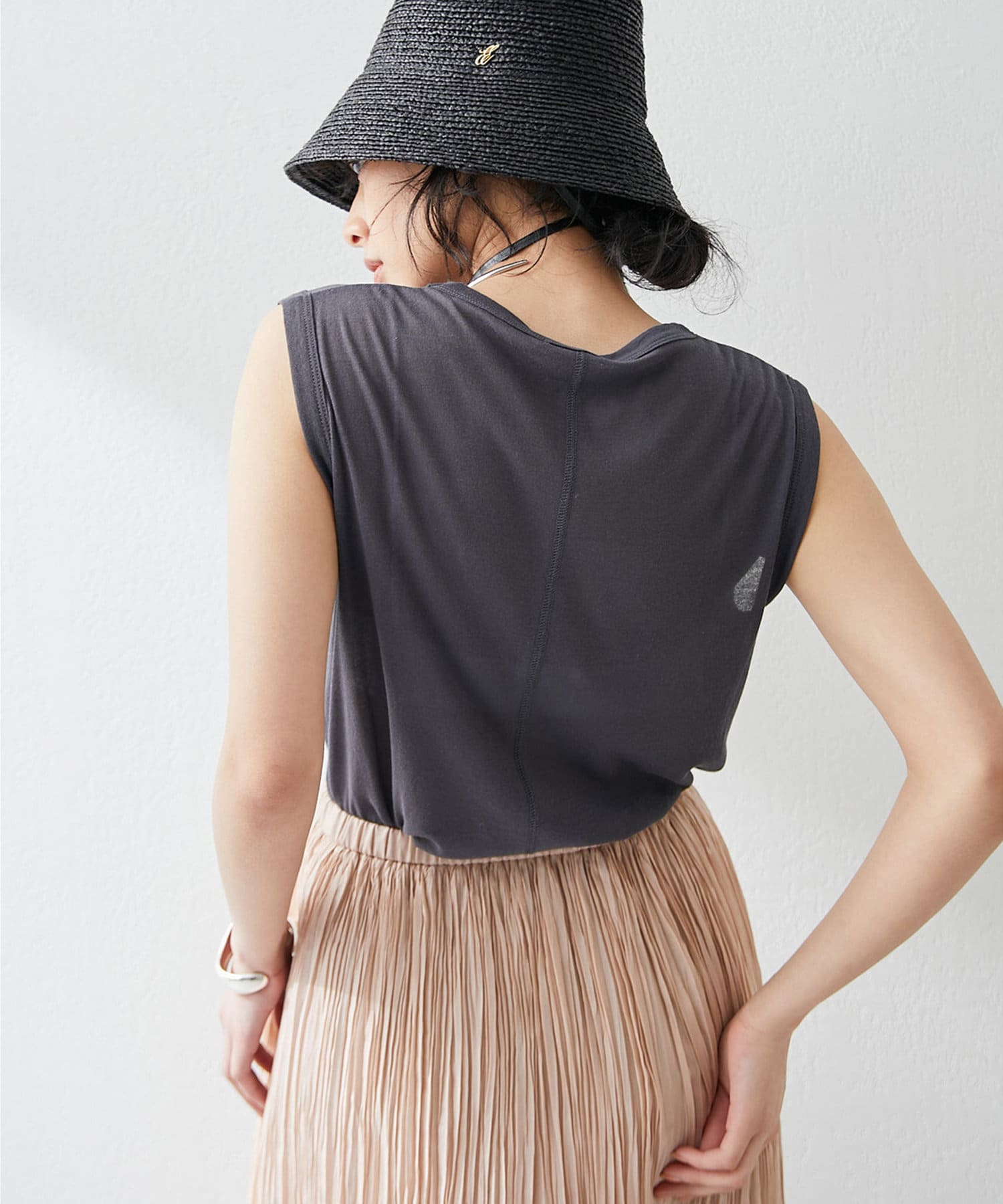 ■肌触りが良く、落ち感のある柔らかい素材を使用したノースリーブプルオーバー。