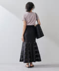 ■着こなしのアクセントになるロゴプリントは、主張しすぎないカラーリングが大人のスタイリングにぴったり。