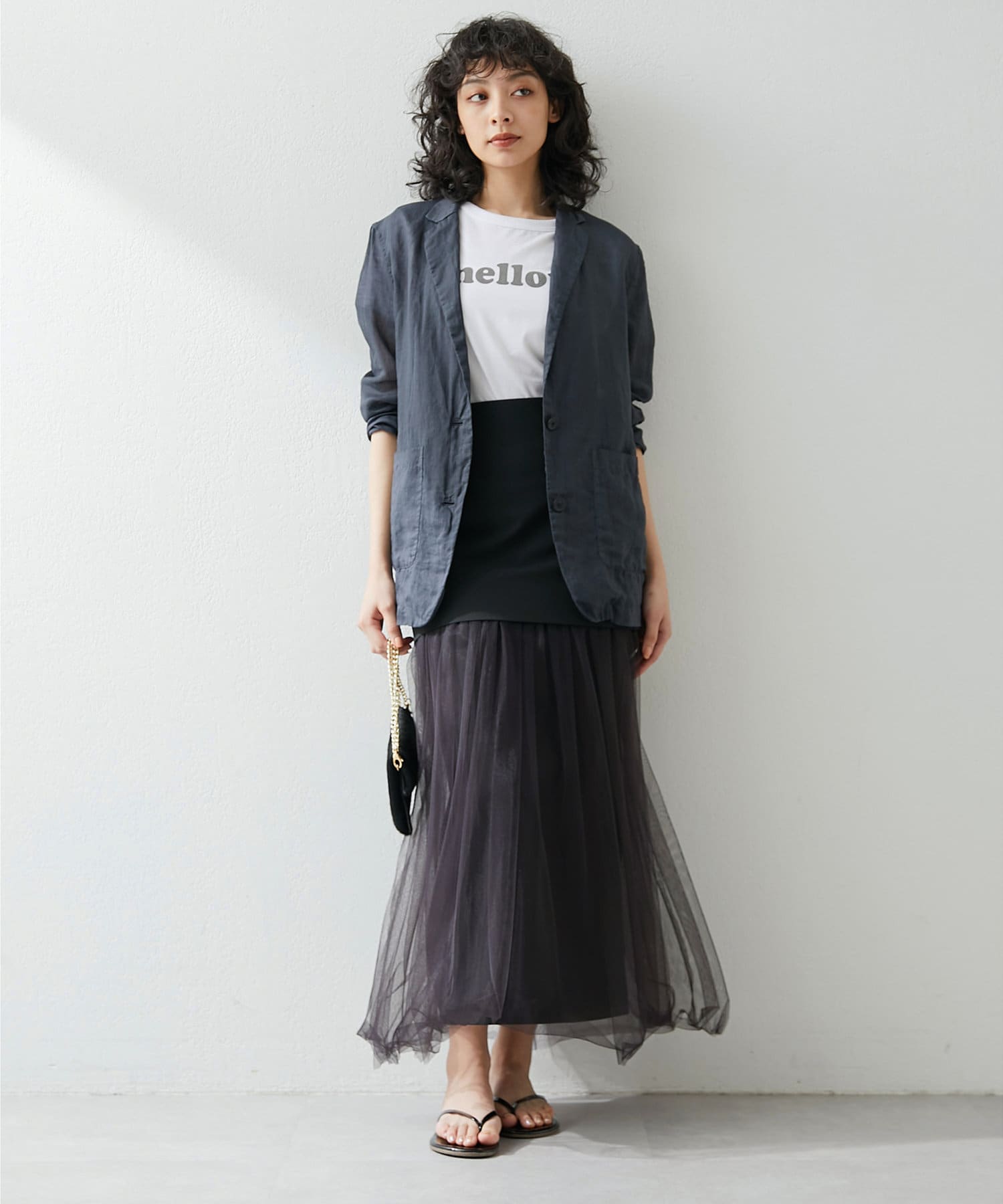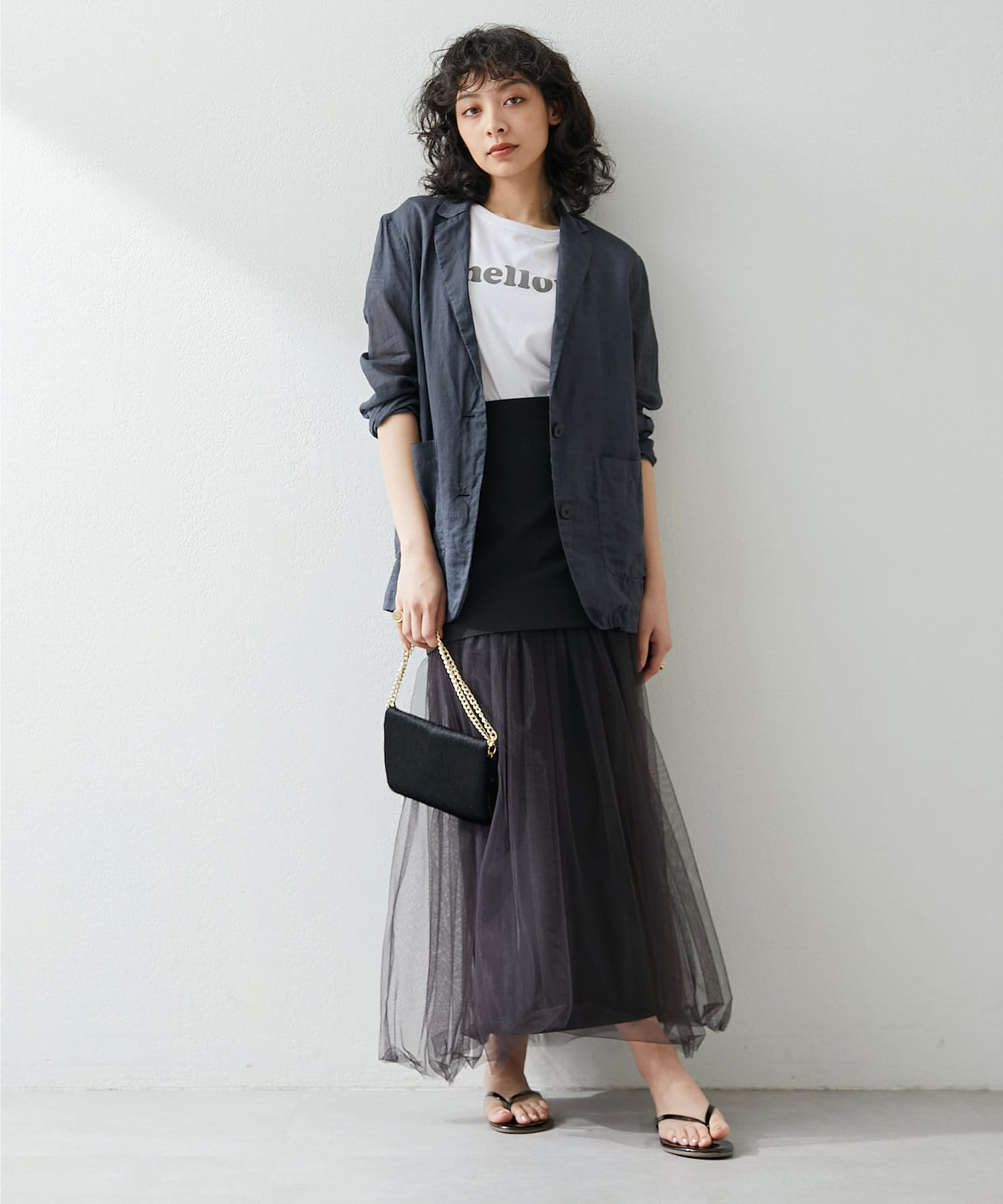 ■シンプルで合わせやすくスタイリングに程よく抜け感をプラスしてくれる一枚。