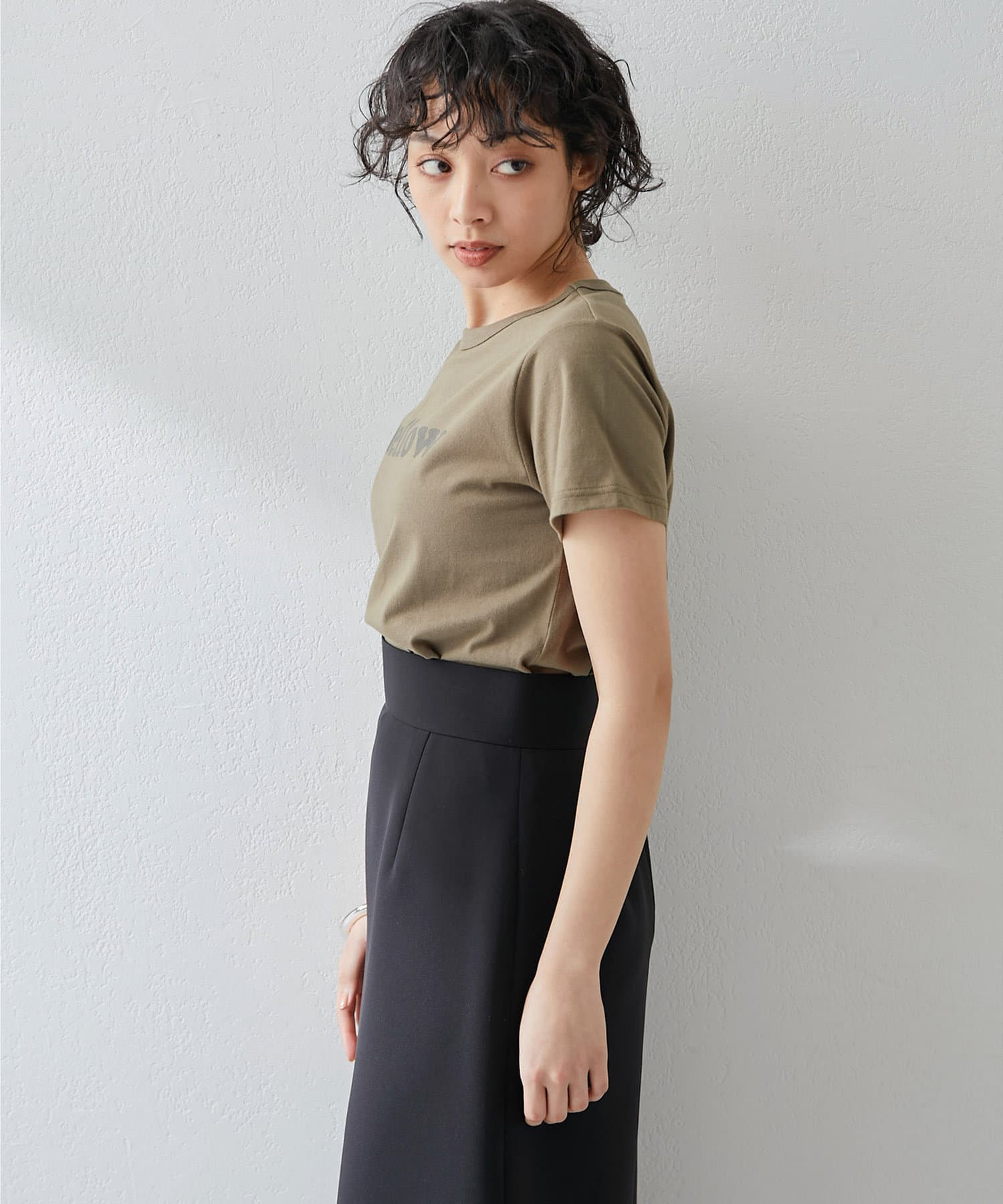 さらりと着られるカットソー。丸みを帯びたロゴが大人可愛くお召頂けます。