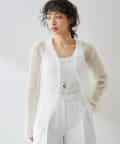 削がれたデザインでスタイリッシュ。さっと羽織ることができて、簡単に透明感がでる垢抜けアイテムです。丈感も程よく、春夏のコーデを華やかにしてくれます。