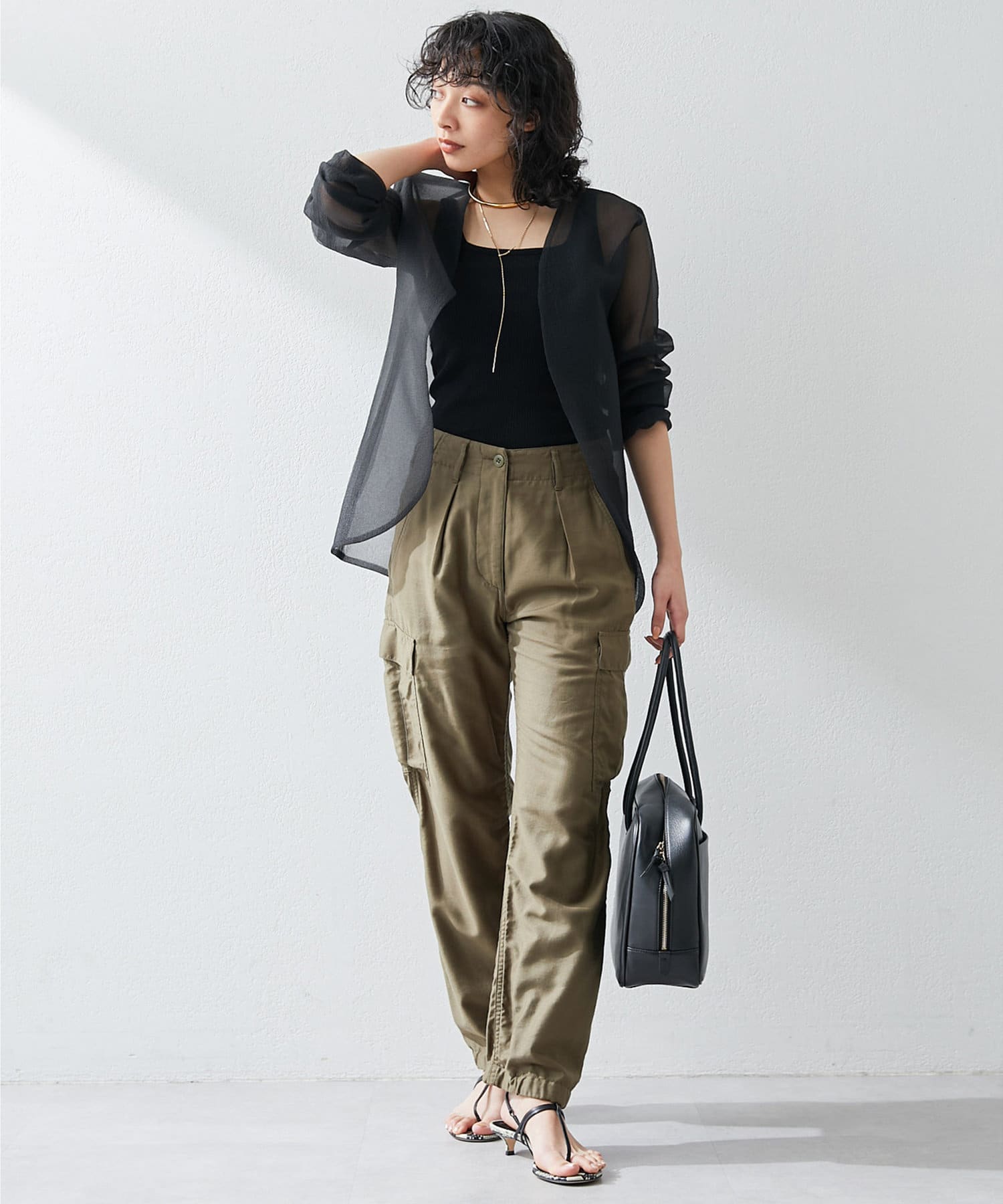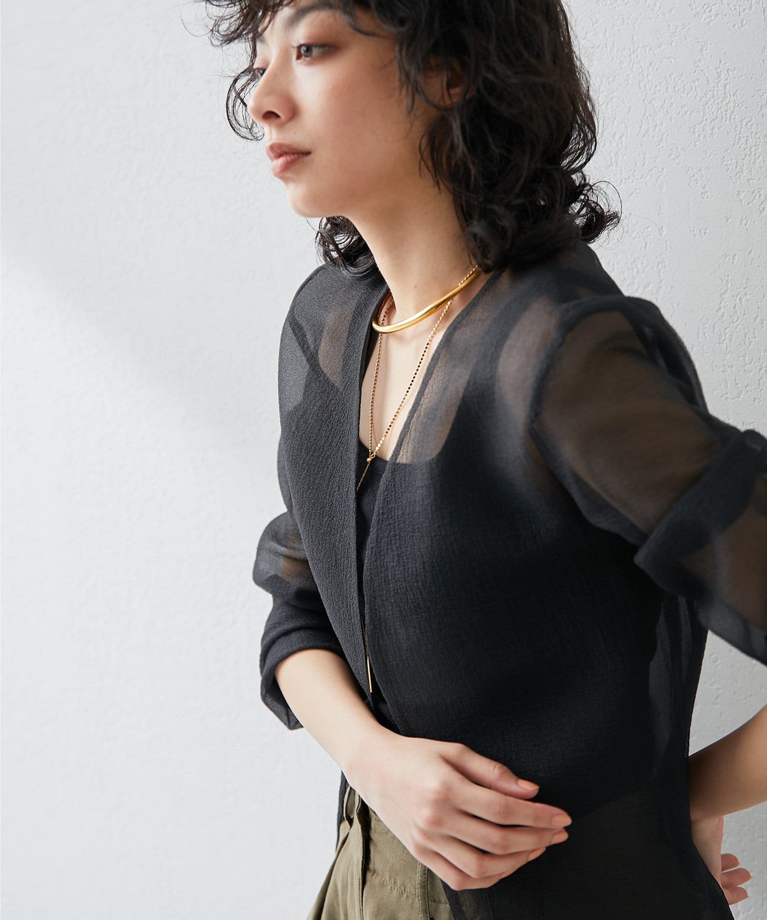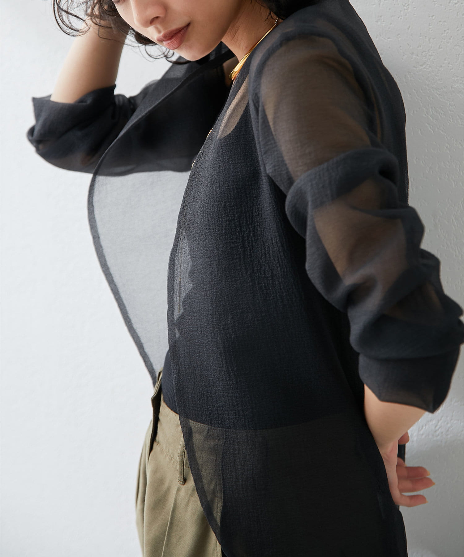 ■さらりと羽織れて袖をたくしあげても様になり、カーディガン感覚で使えるのが◎。