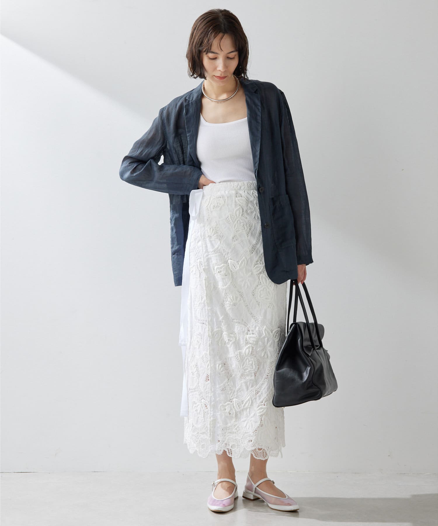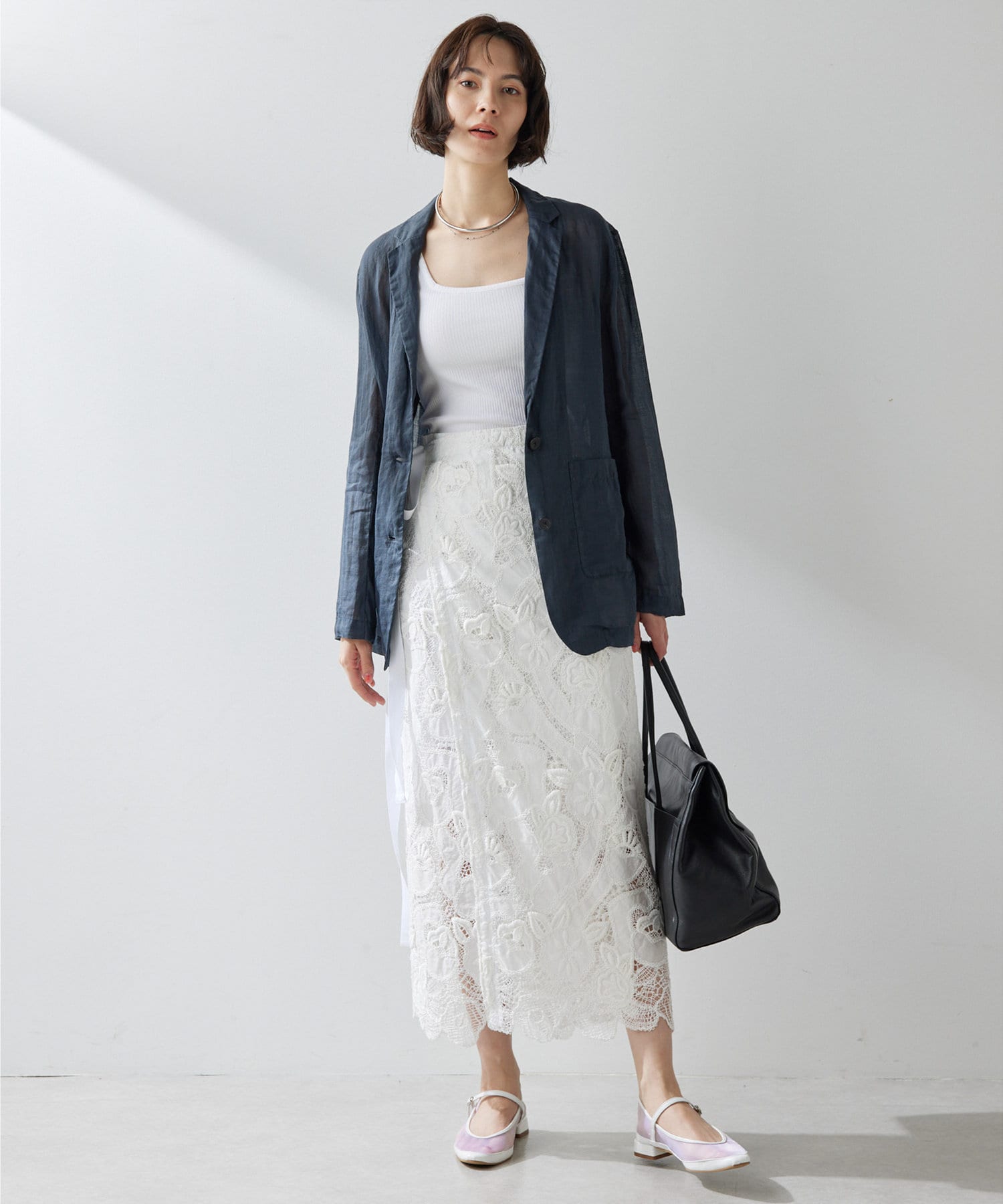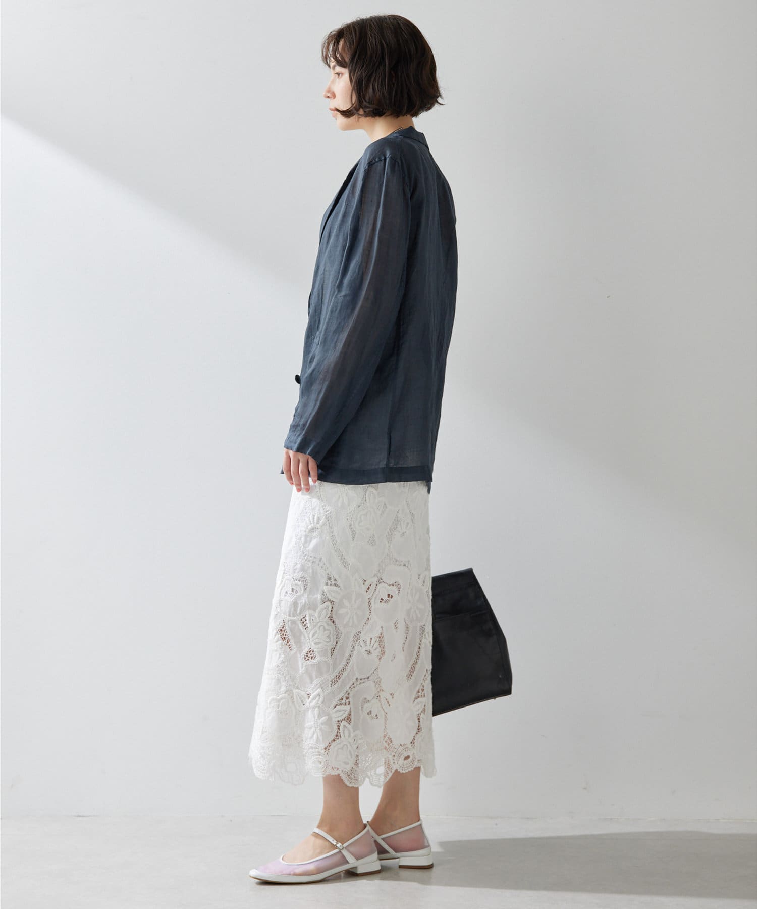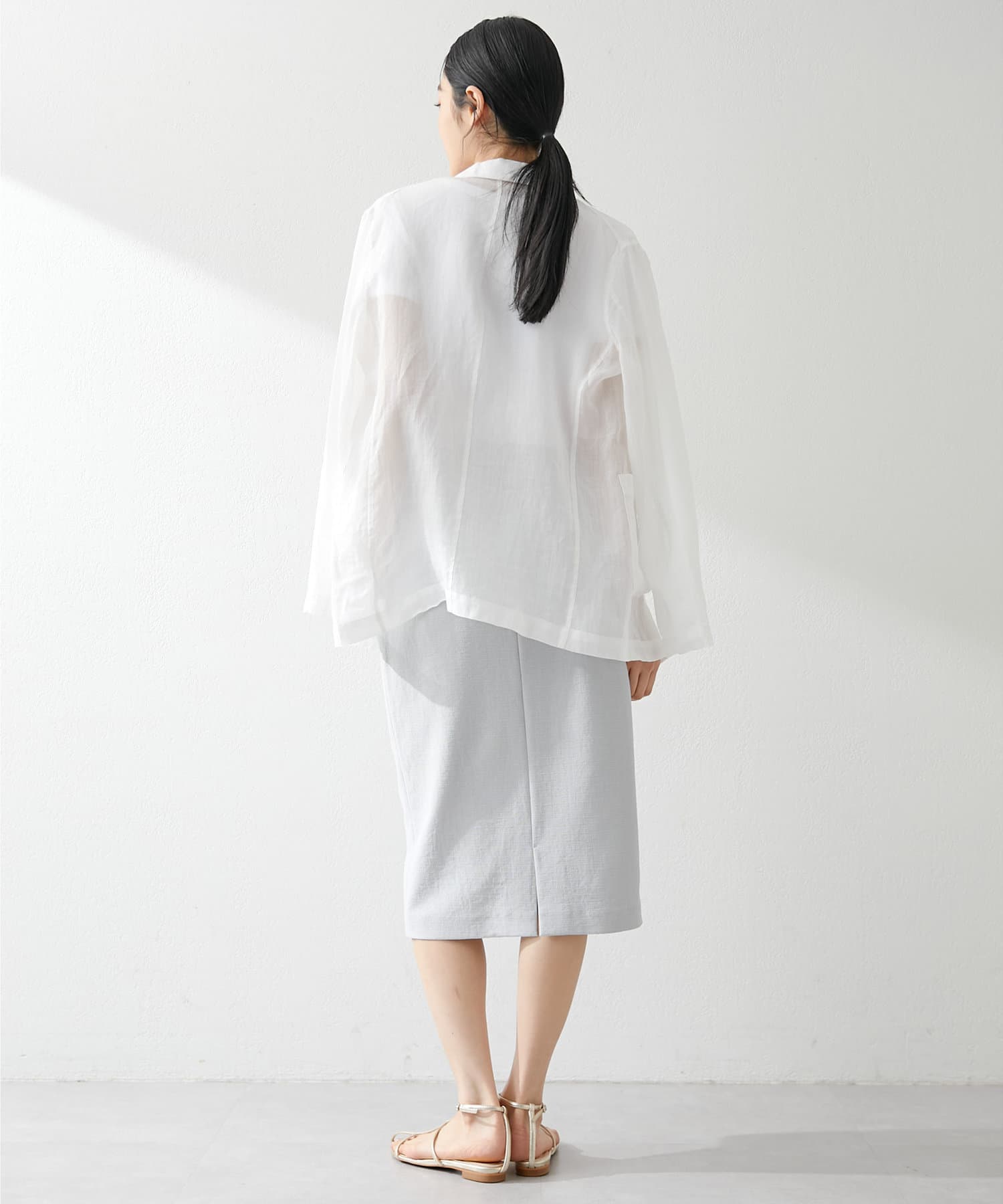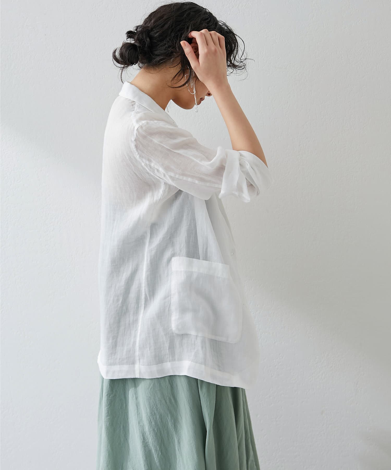 毎年人気のラミー素材のジャケット。パッと羽織れて、こなれ感のでるアイテムです。程よいシアー感が素敵。少し長めの丈感がオシャレ。気温調整の羽織としても春夏に活躍間違いなしです。