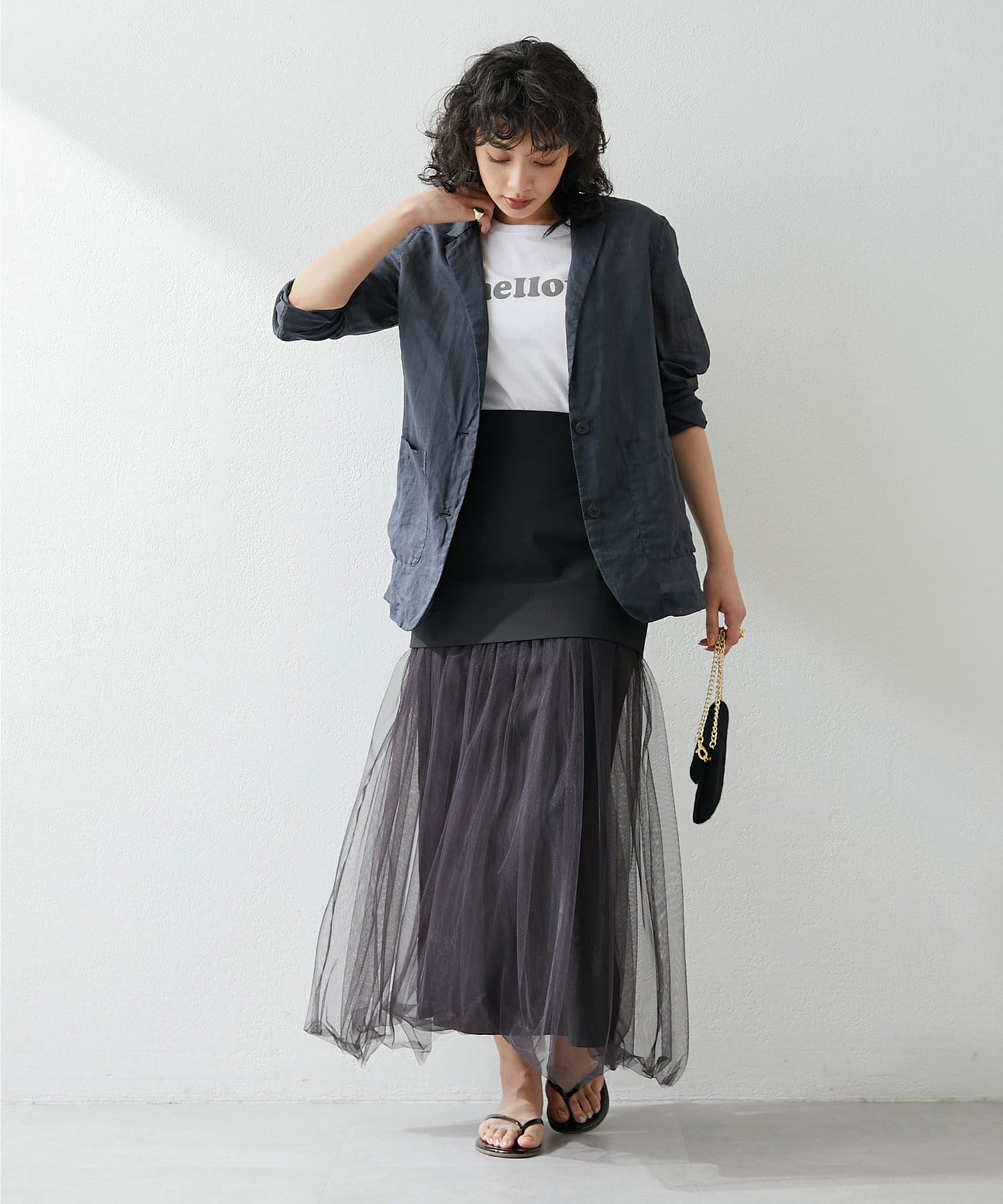 ■ゆったりとしたサイズ感とミドル丈で、ボトムスを選ばずさらっと羽織れる一枚。