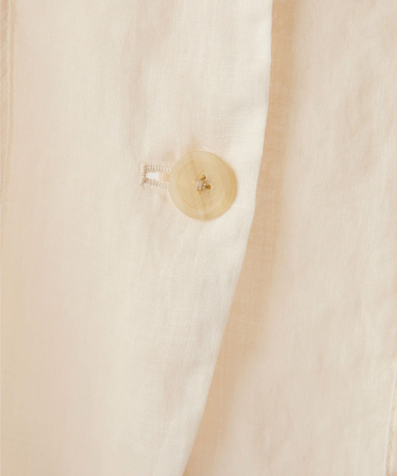 カジュアルすぎない程よい光沢とハリ感がポイントの、珍しい高番手のラミー素材を製品染めした素材。