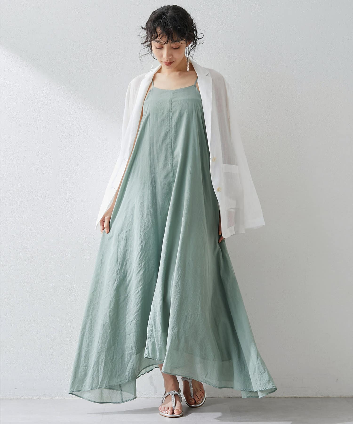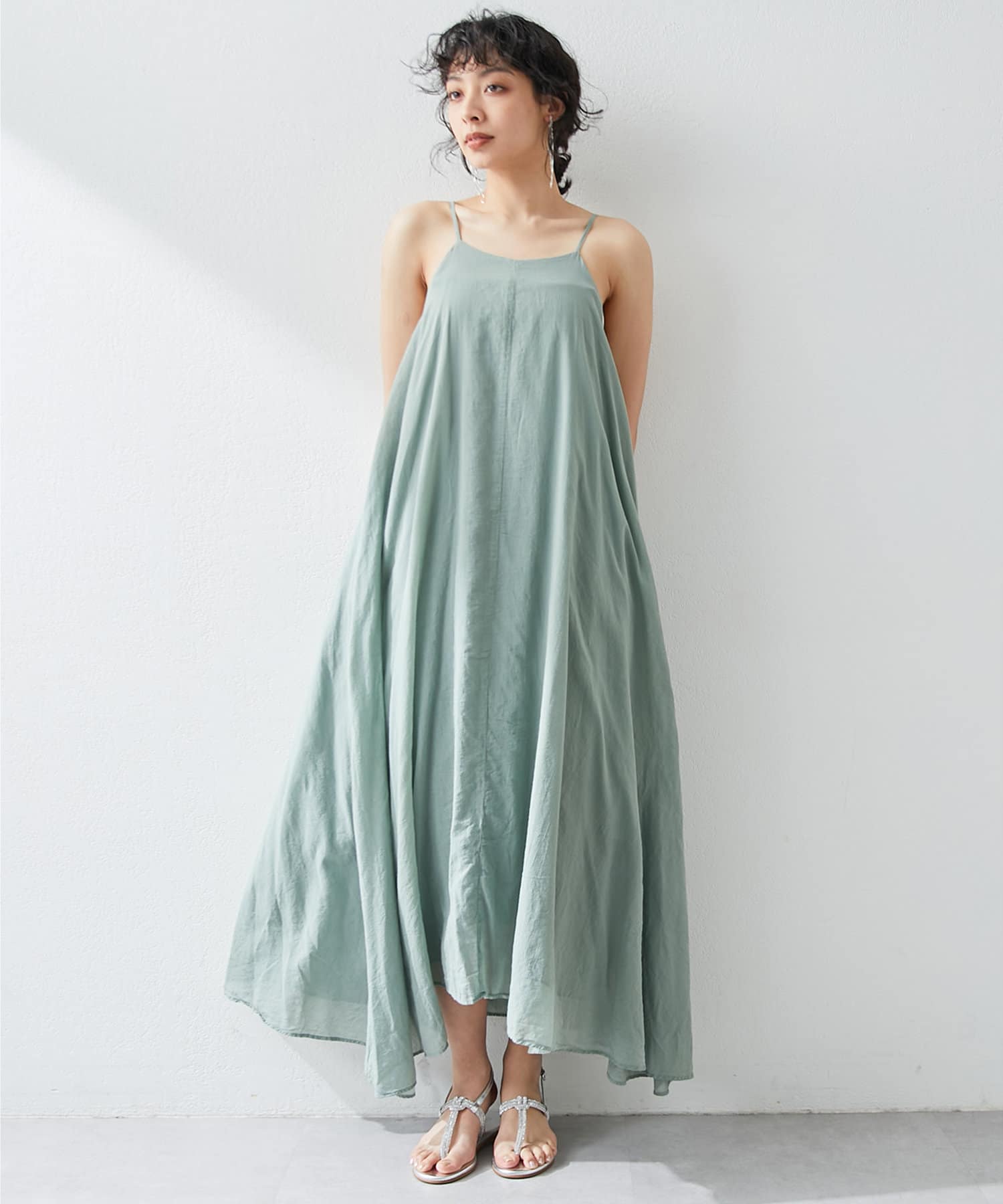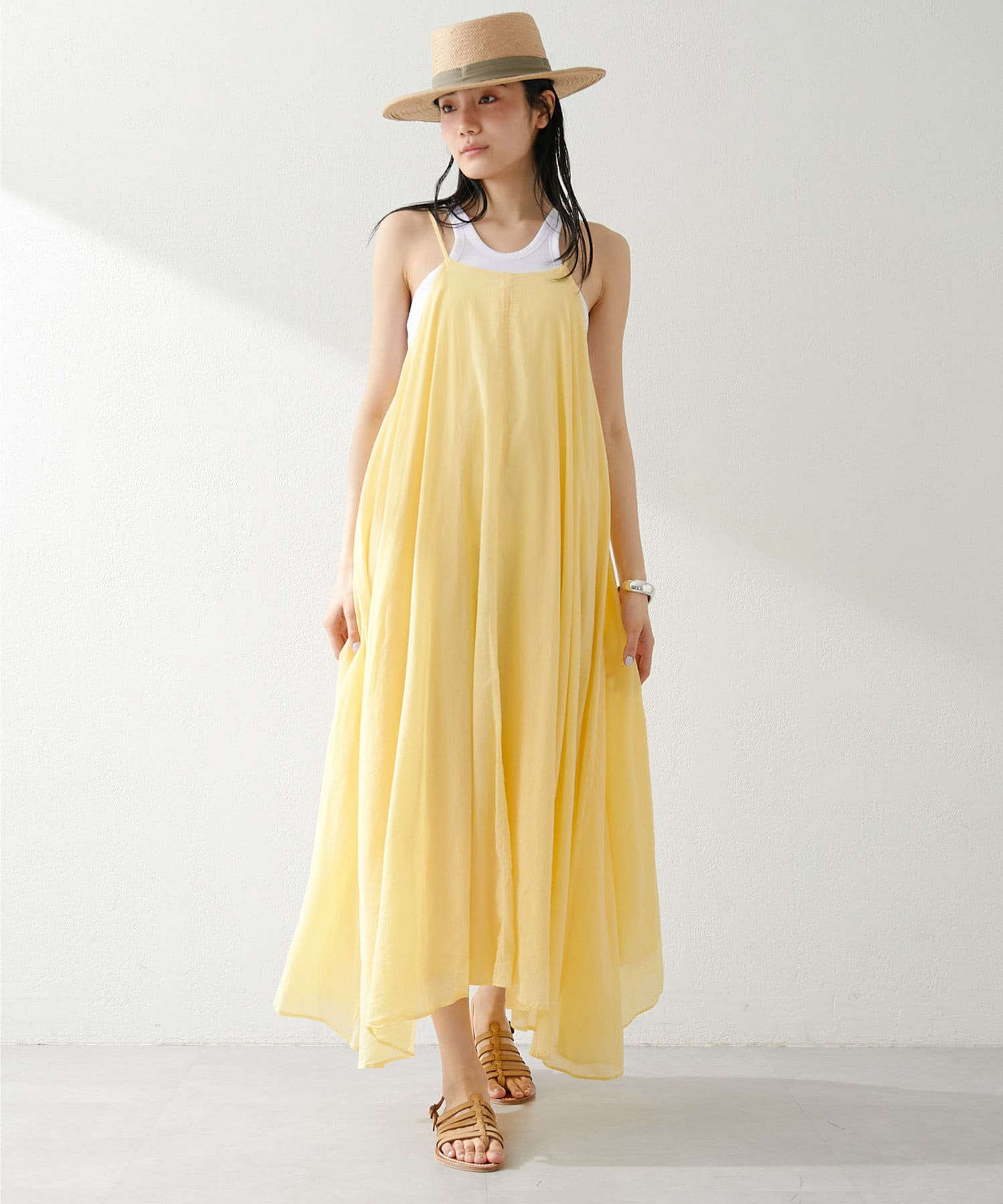 草木染めのナチュラルな色彩が美しい、エアリーなキャミワンピ