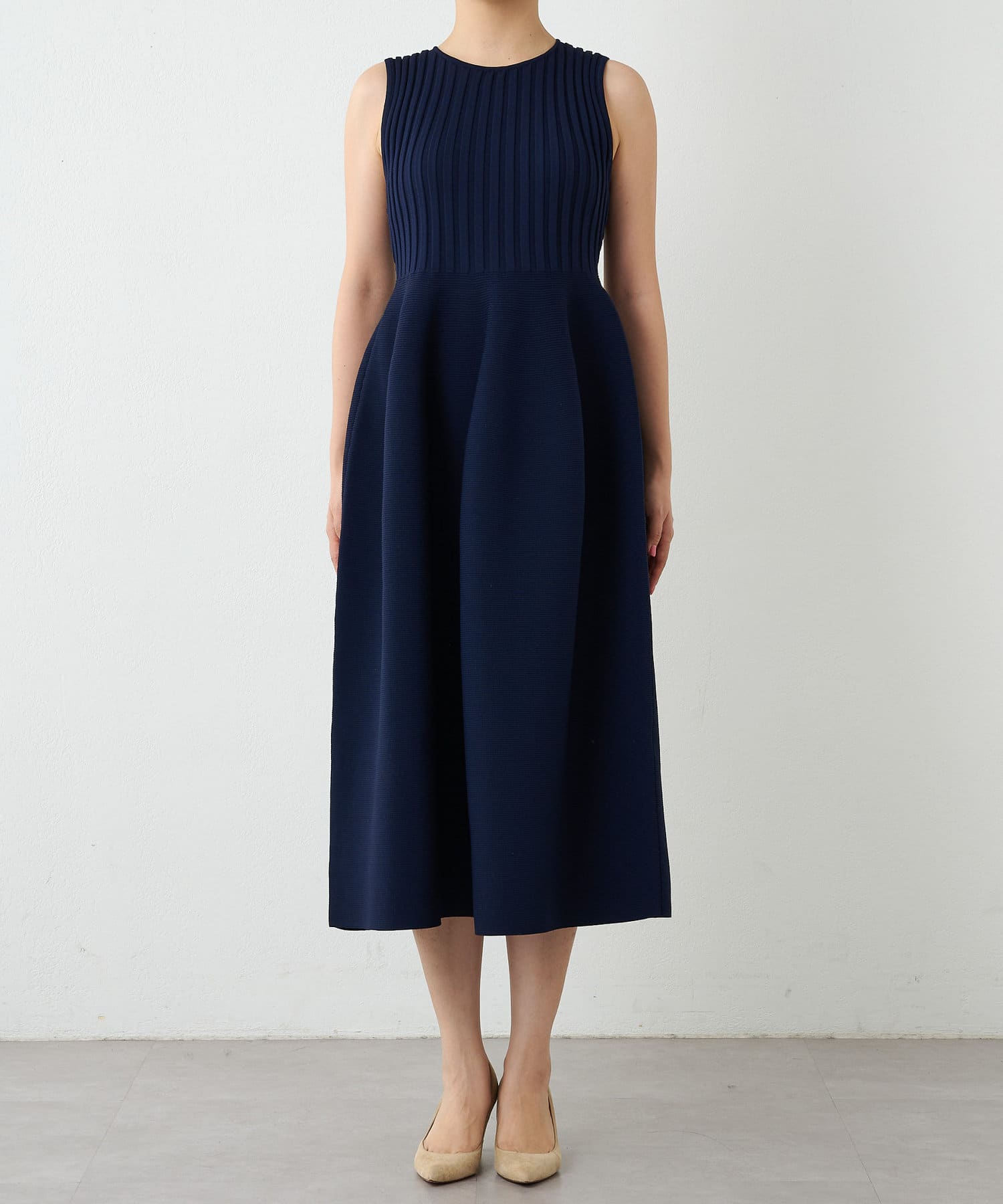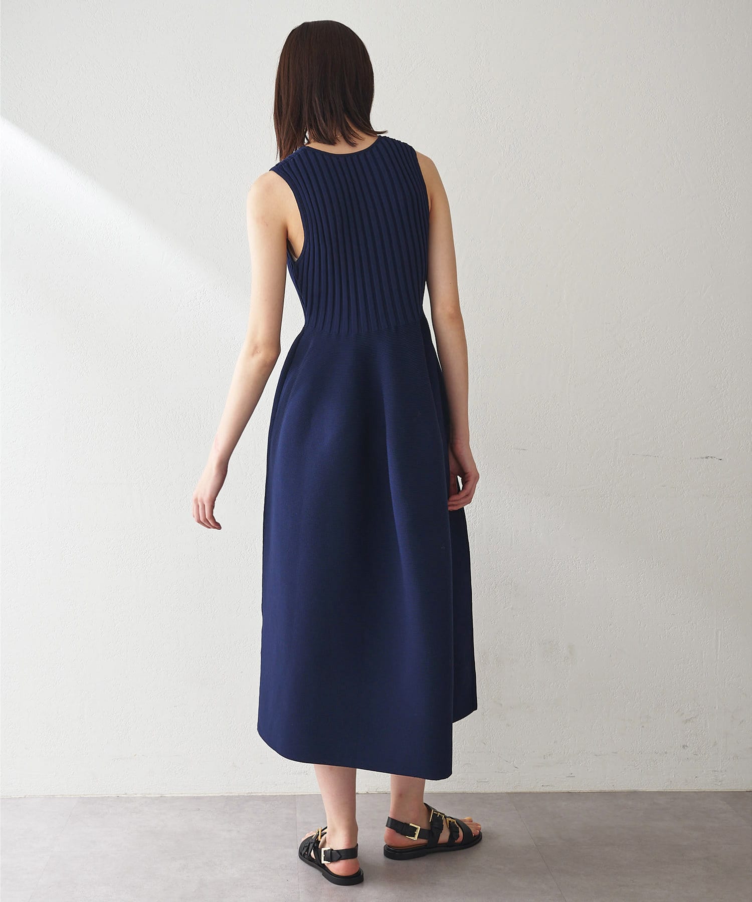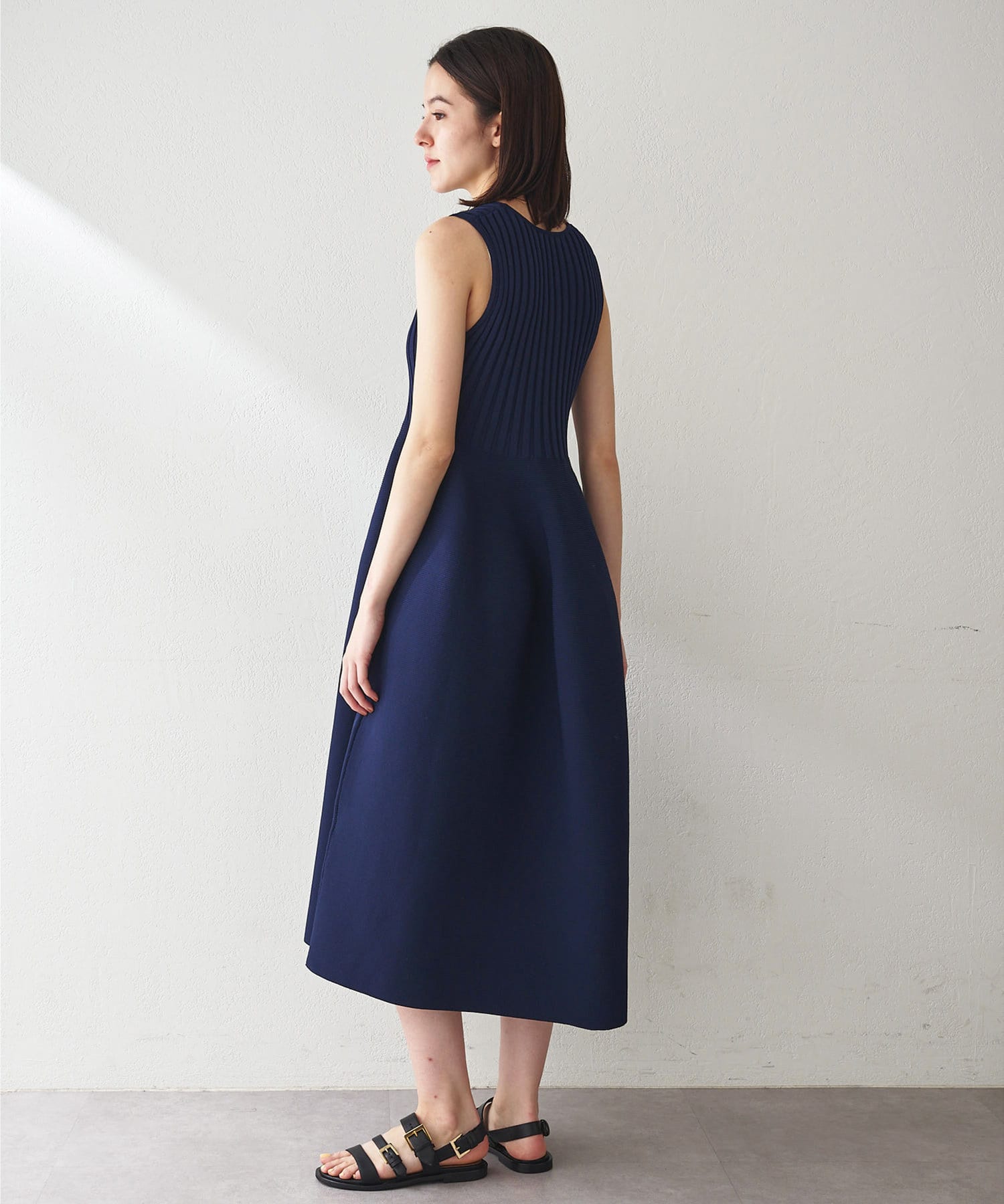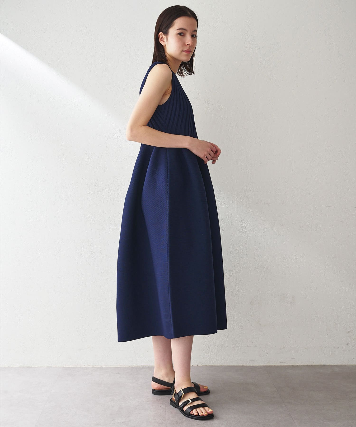 ■美シルエットが印象的なノースリーブニットワンピース。
