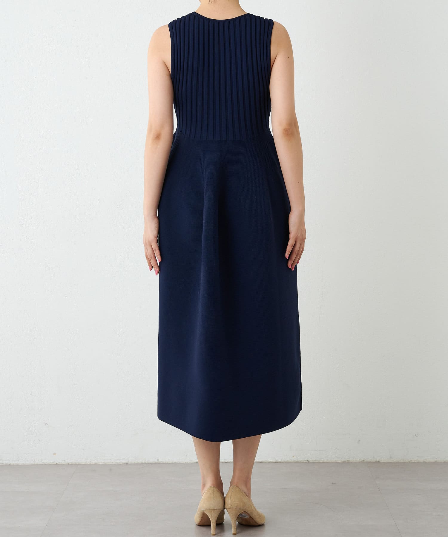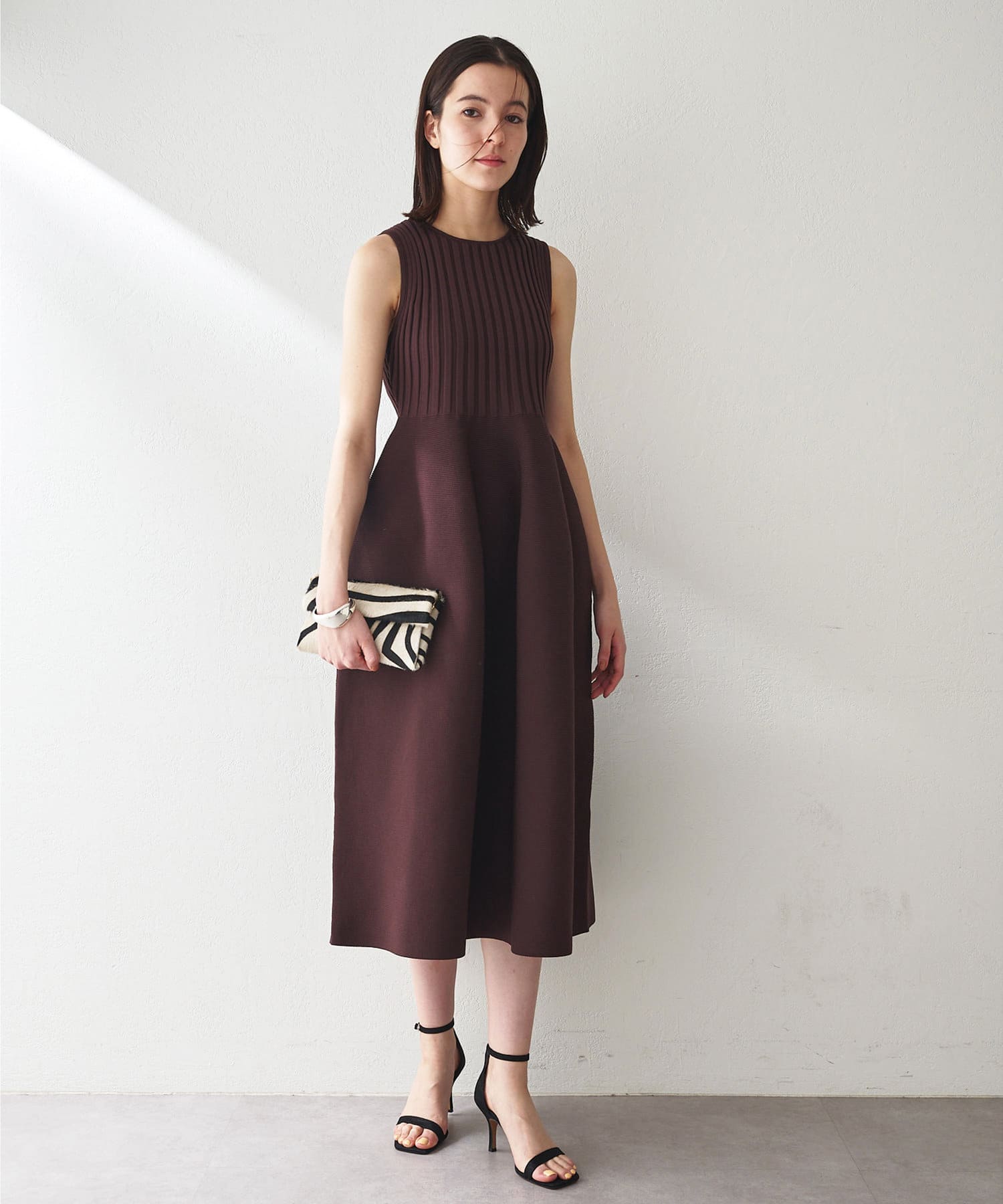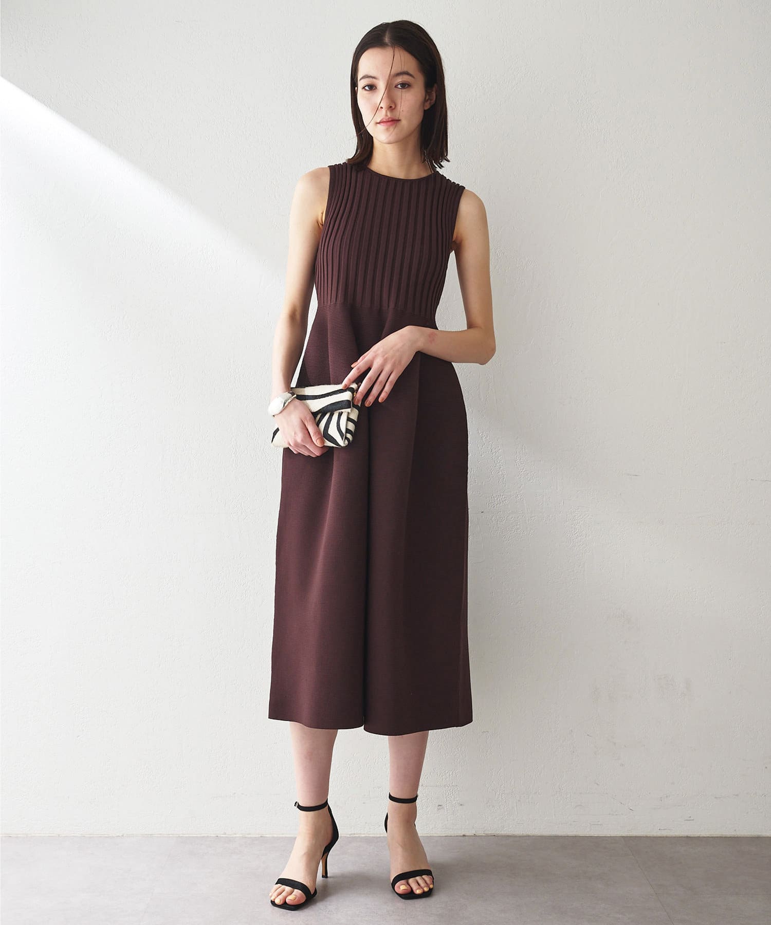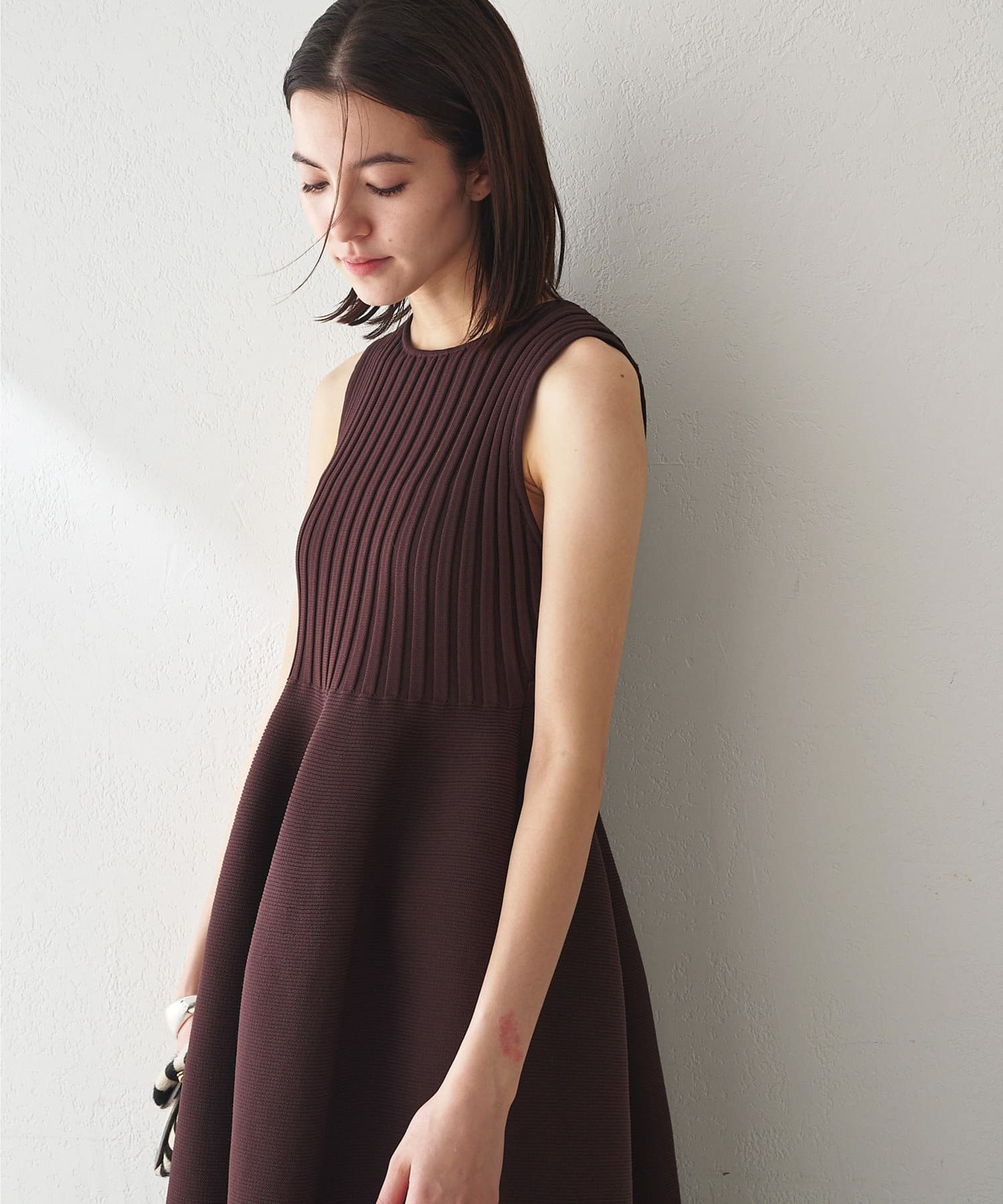 ■美シルエットが印象的なノースリーブニットワンピース。