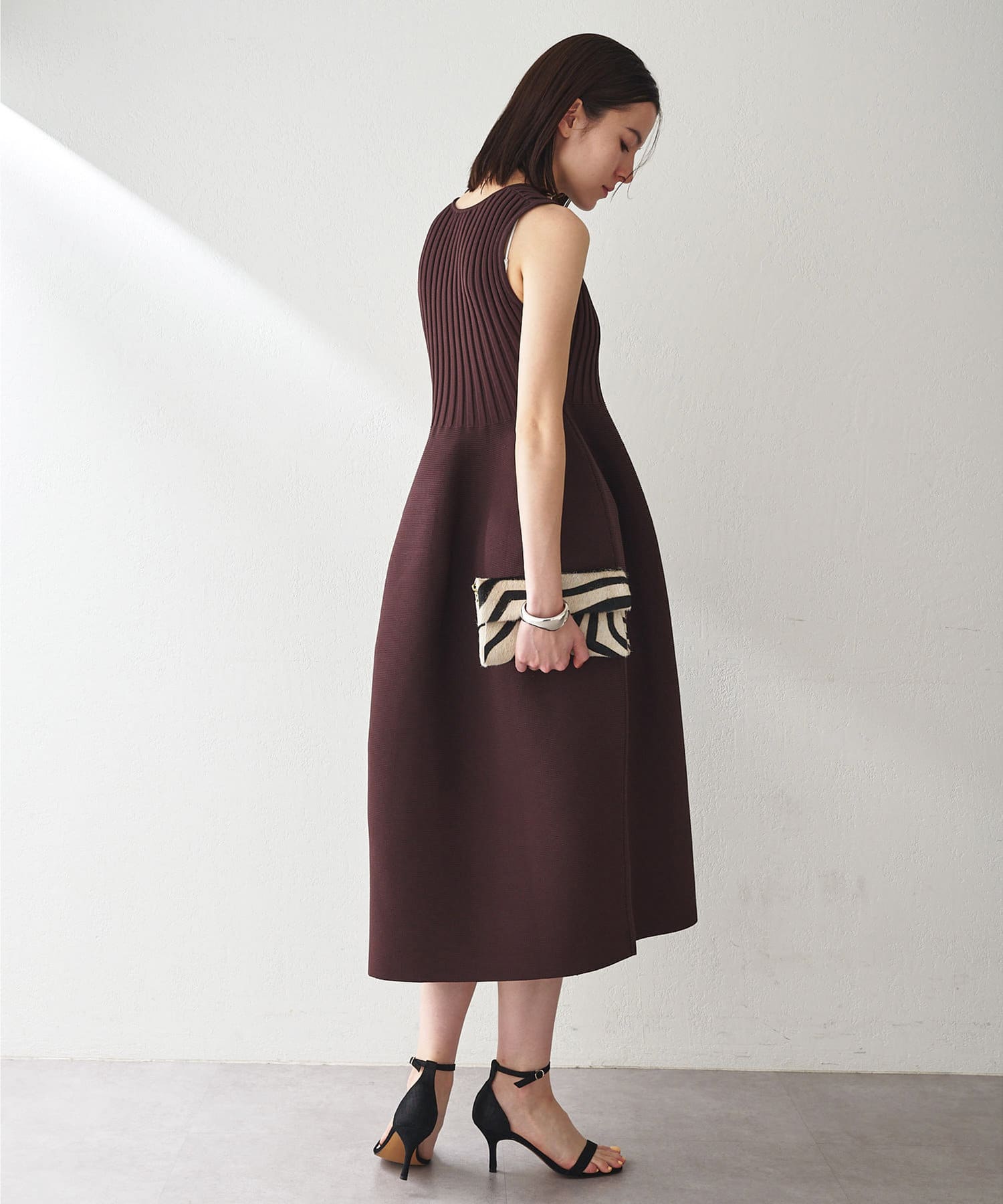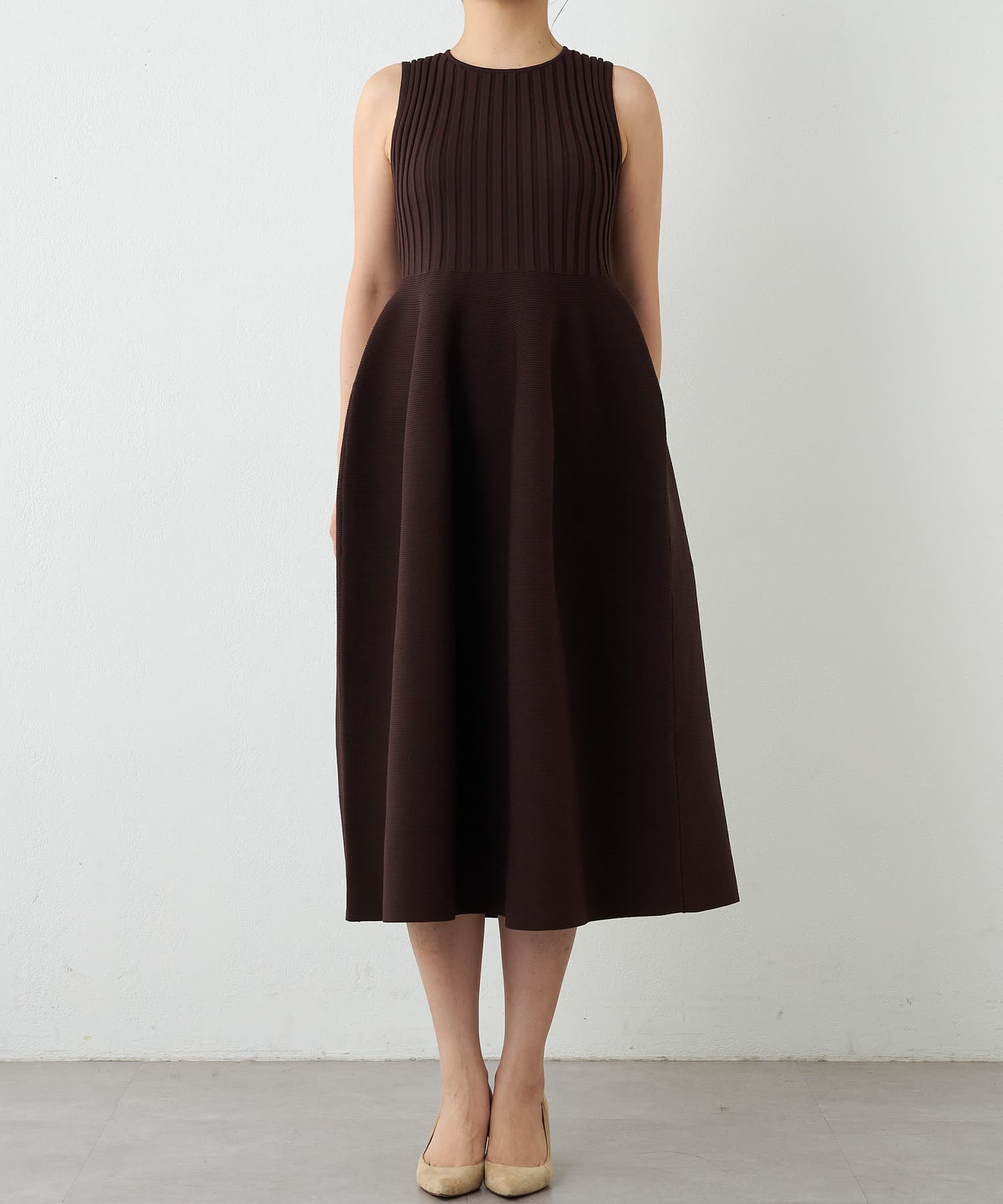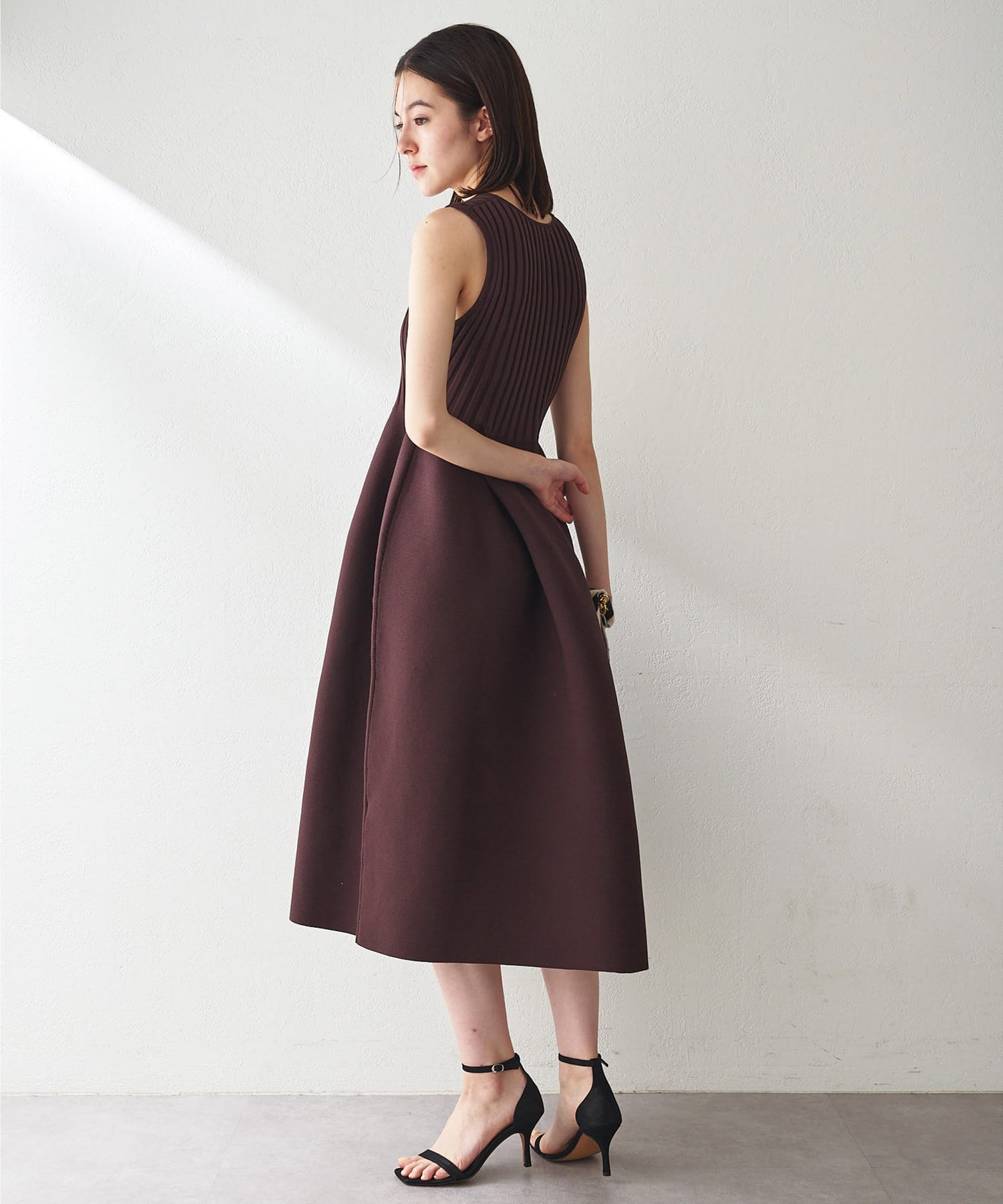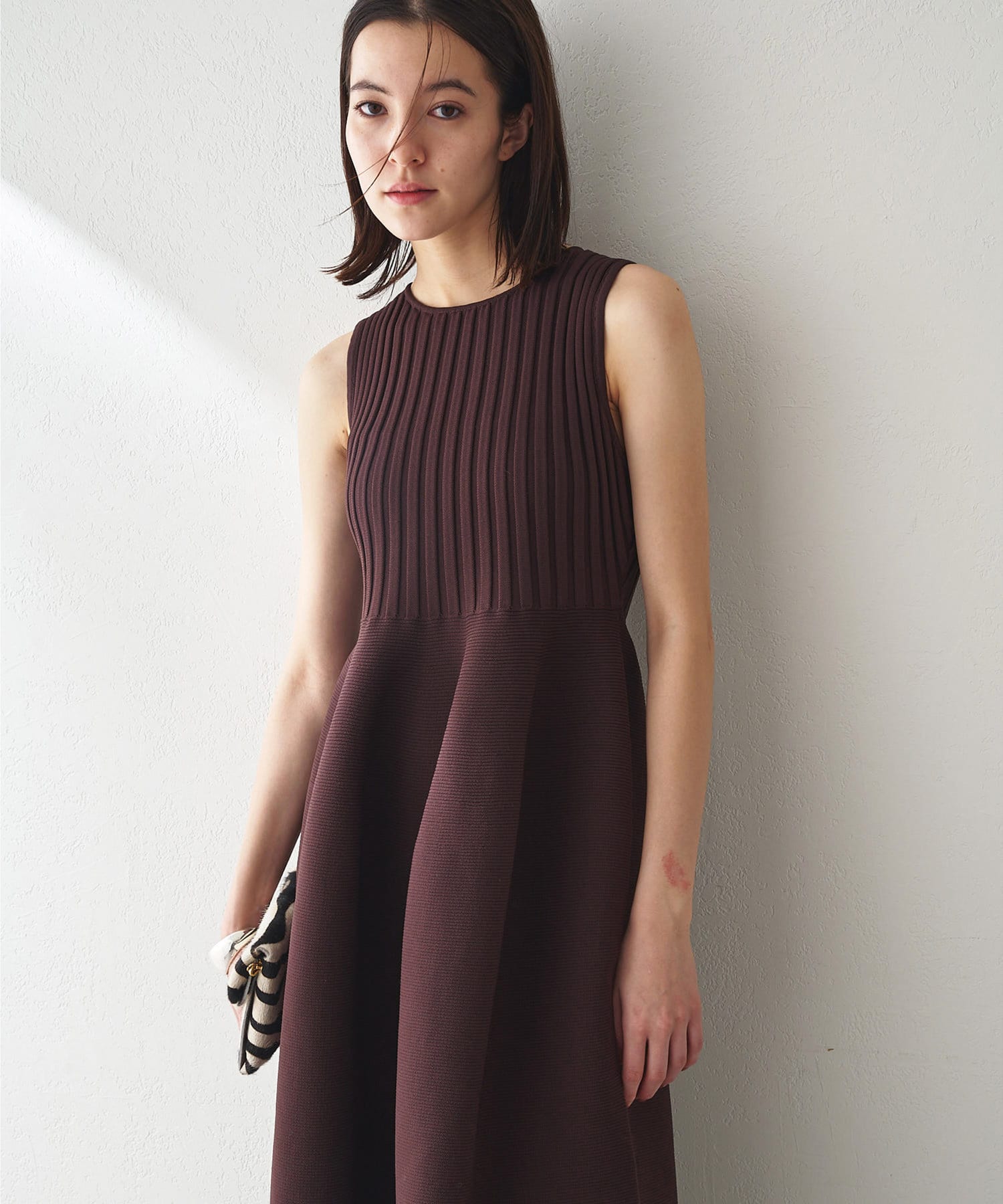 ■美シルエットが印象的なノースリーブニットワンピース。