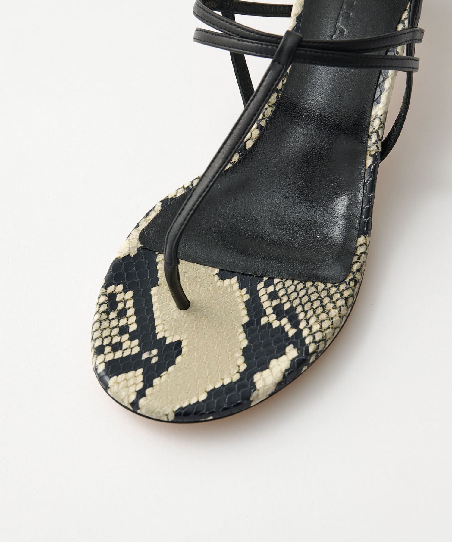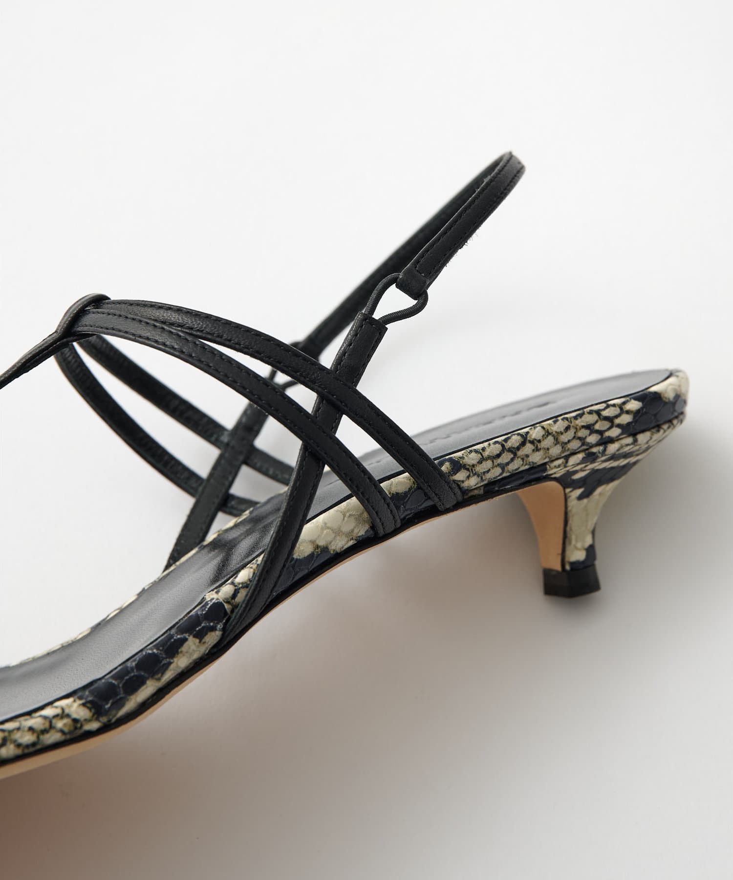 ■華奢なストラップが脚をきれいに見せ、モダンで洗練された印象をプラス。