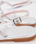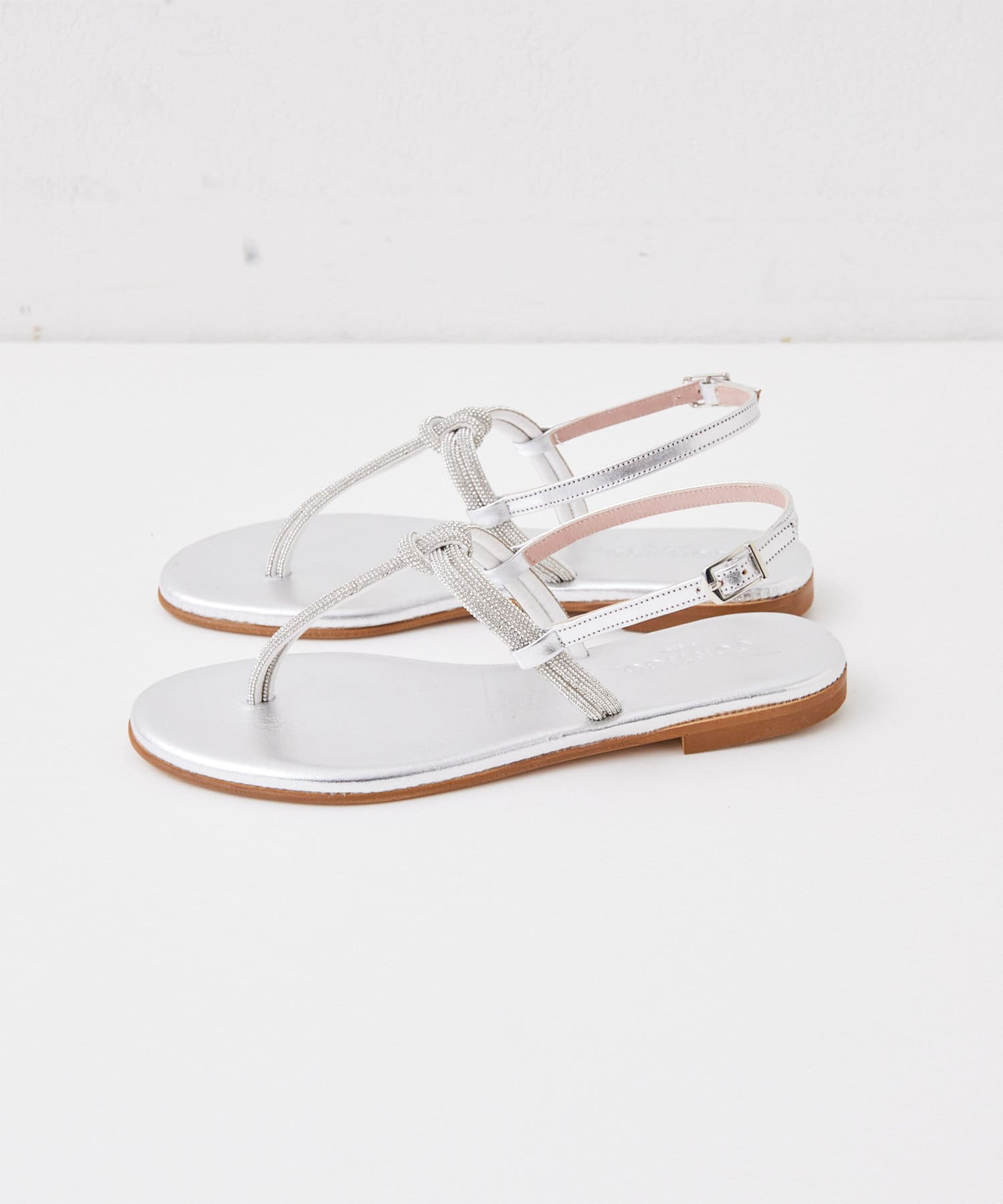 ■繊細なビジューが上品な輝きを放つトングサンダル。
