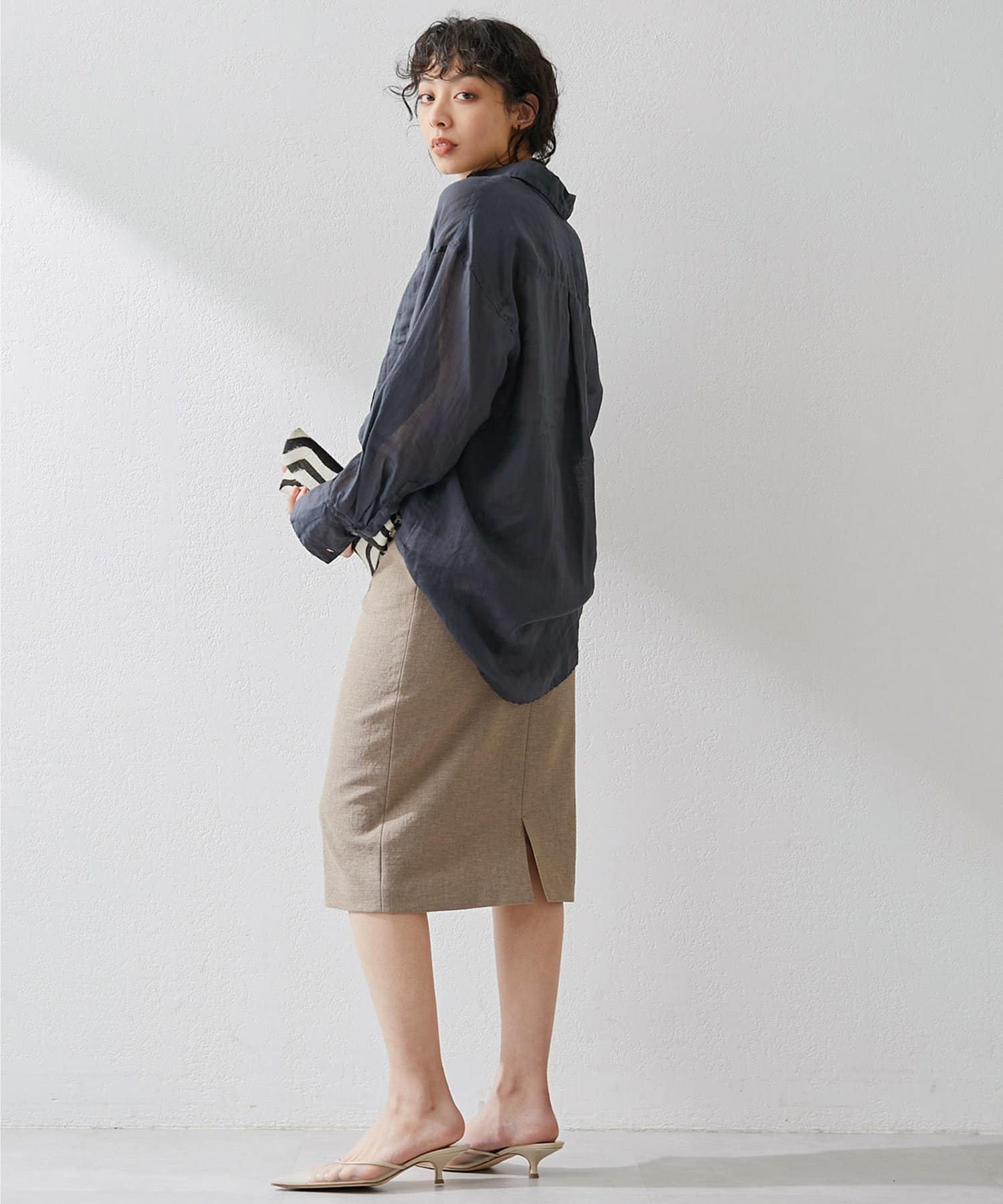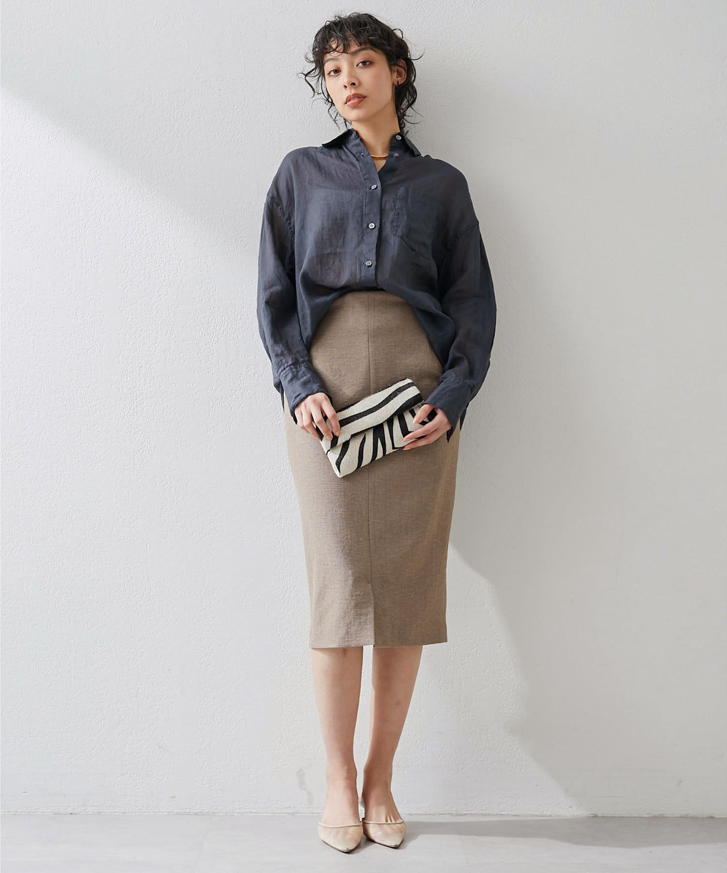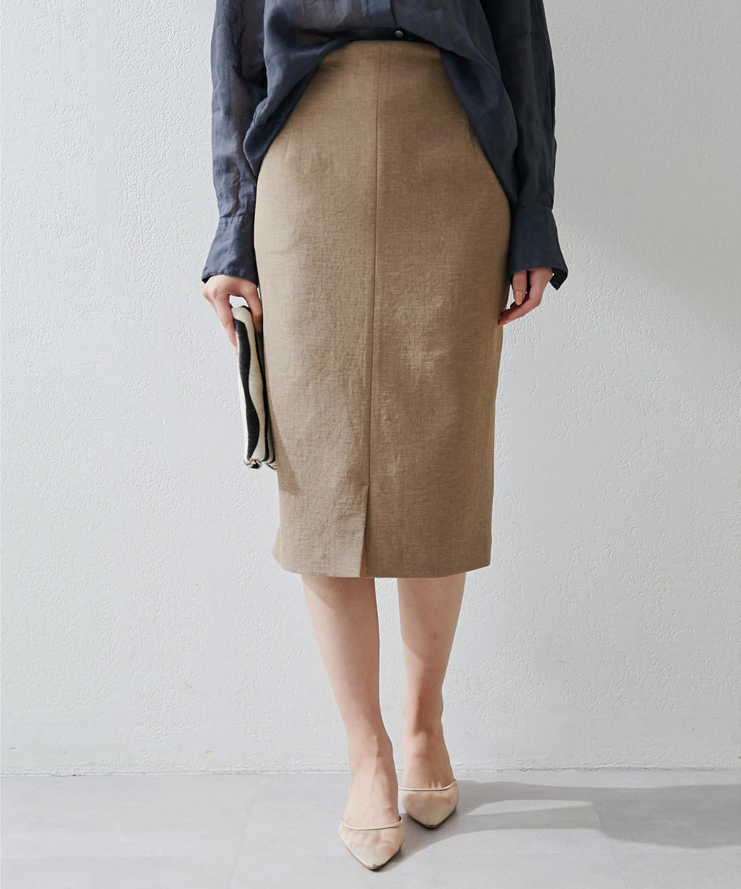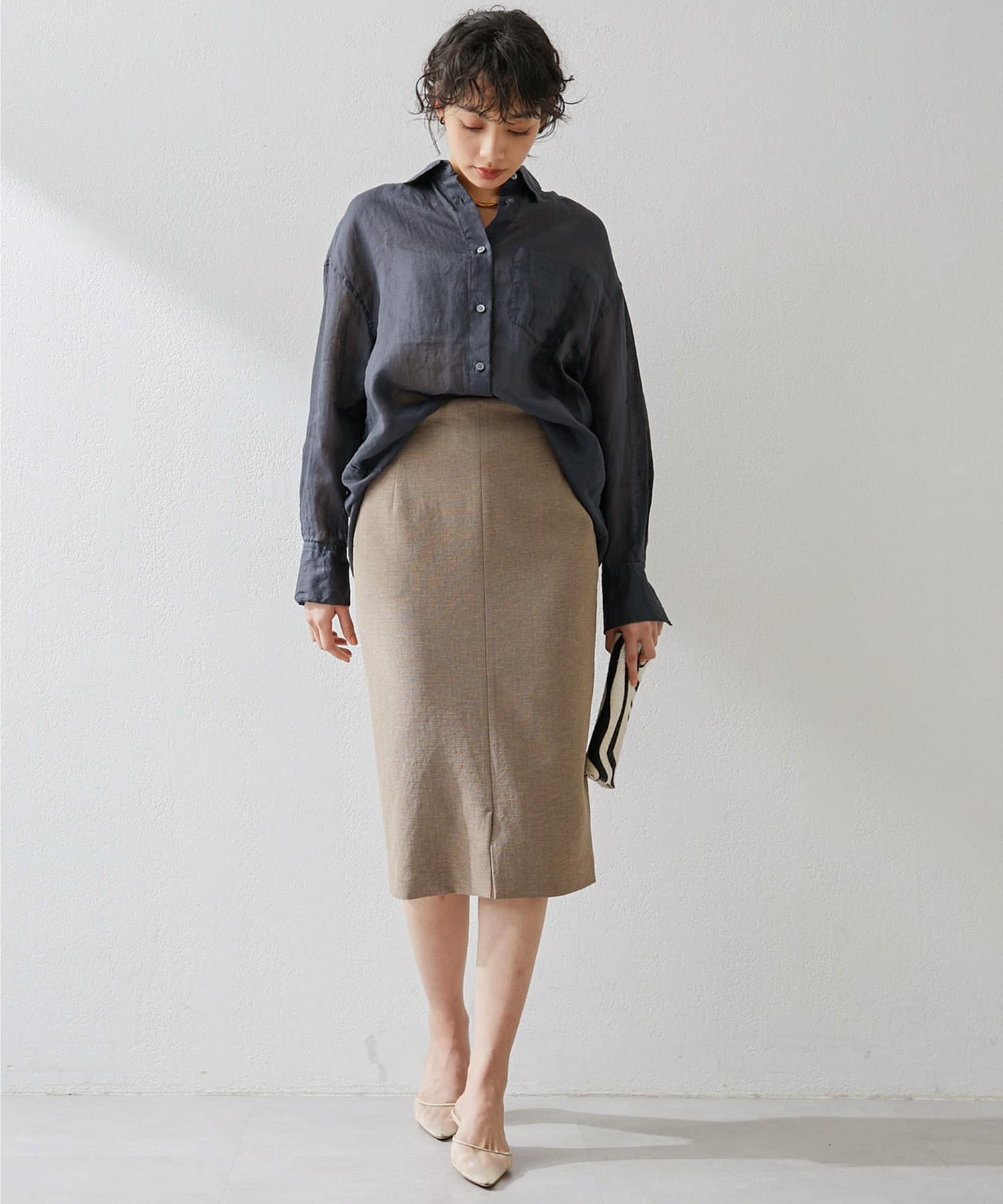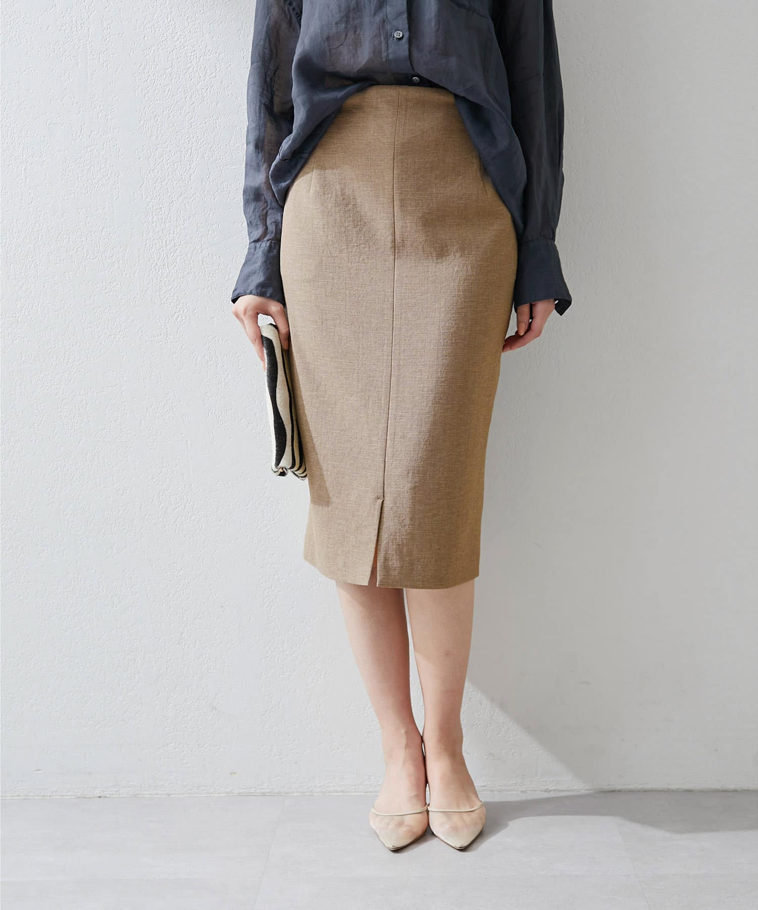 ■ミディ丈が着こなしの鮮度を上げてくれるタイトスカート。