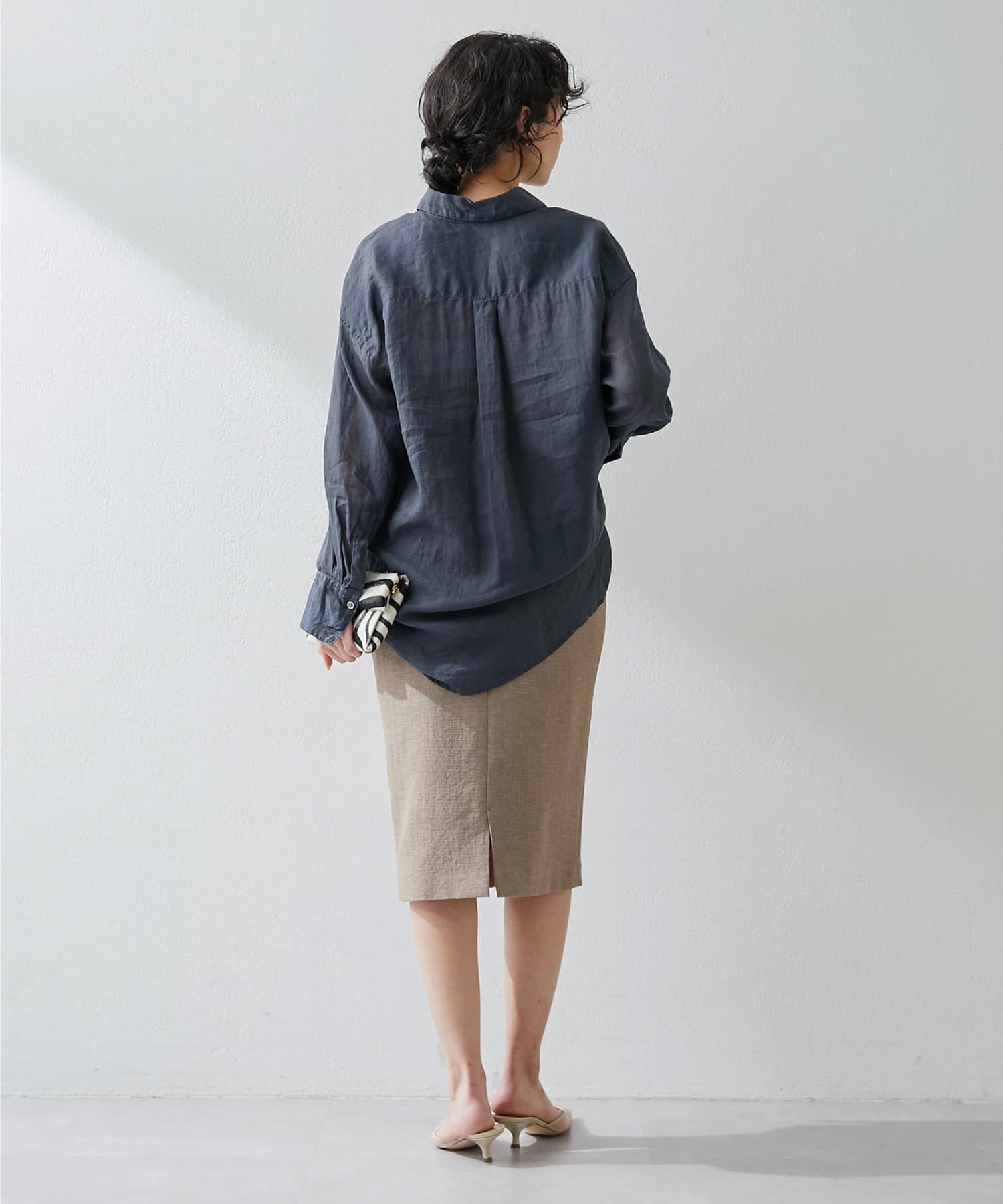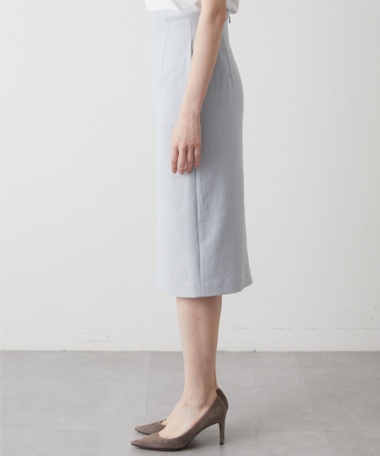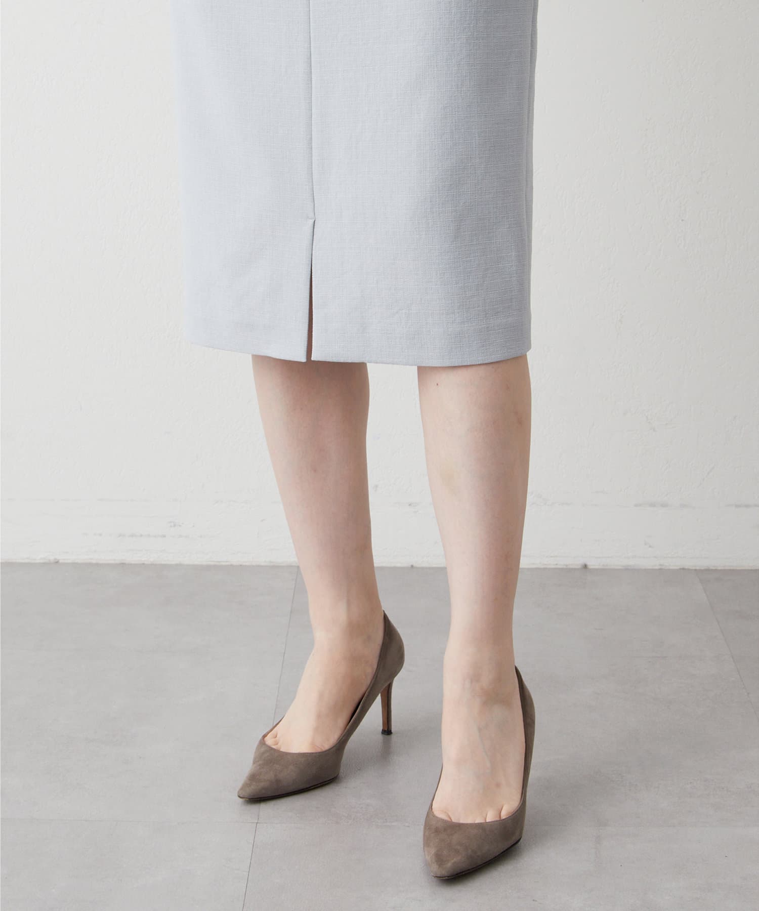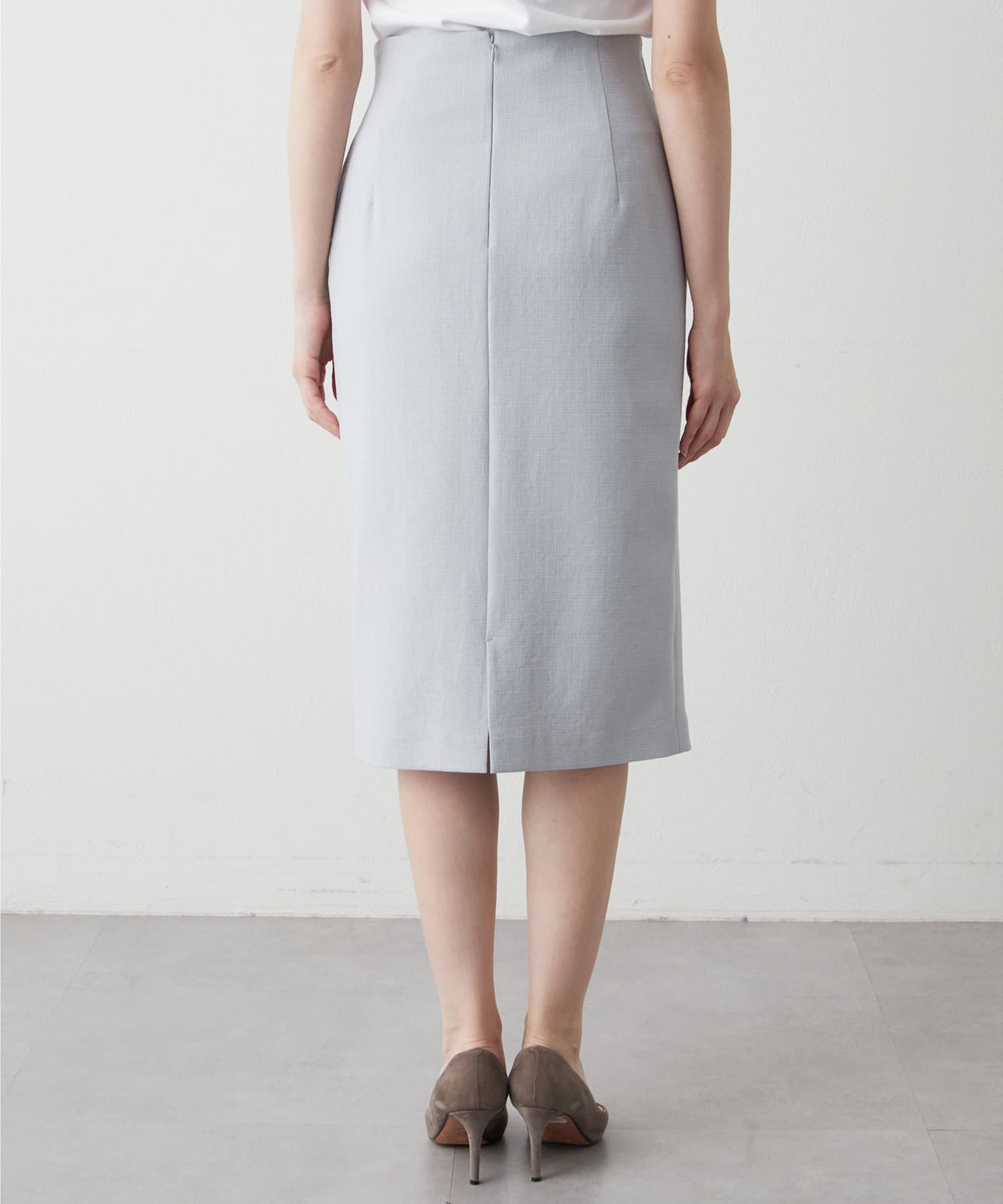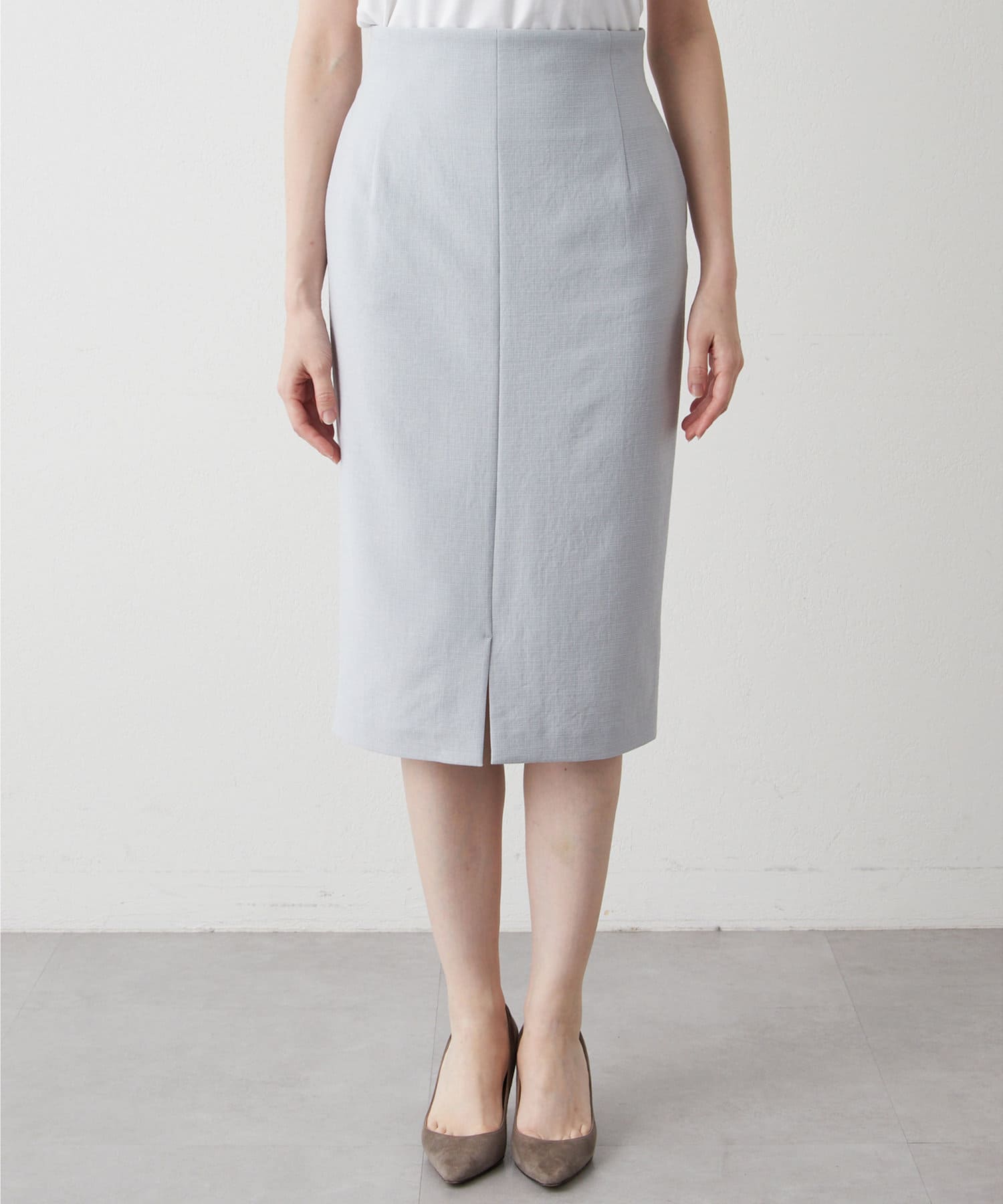 ■ミディ丈が着こなしの鮮度を上げてくれるタイトスカート。