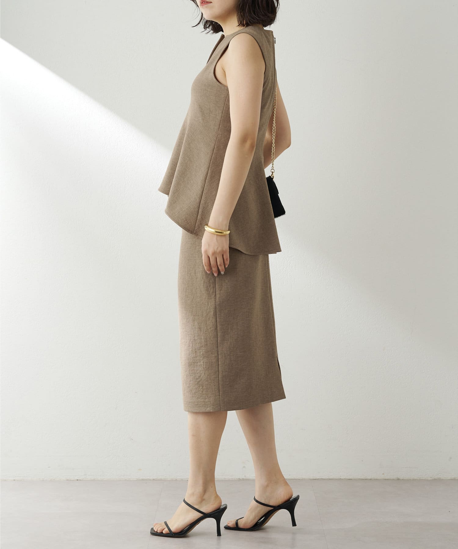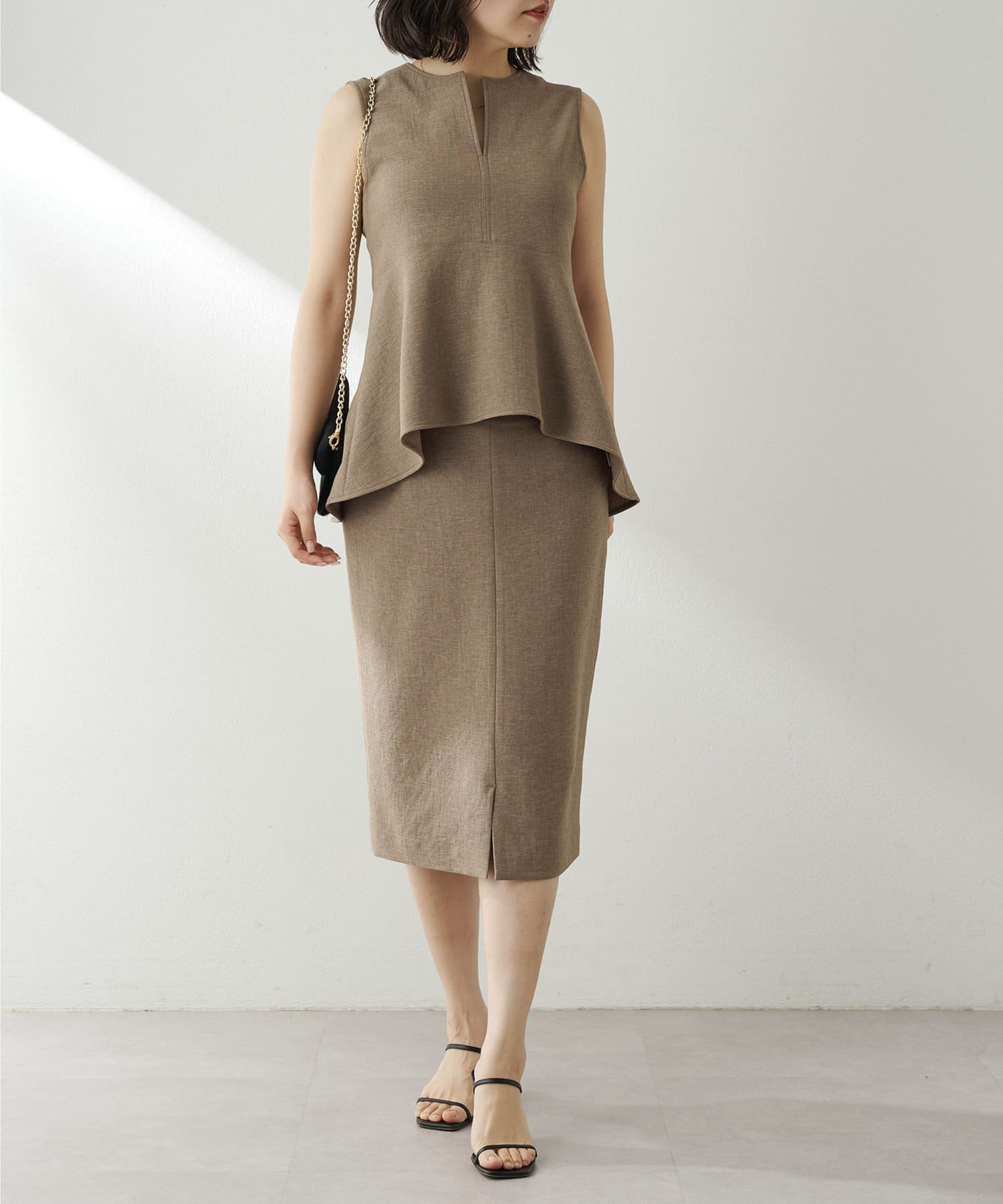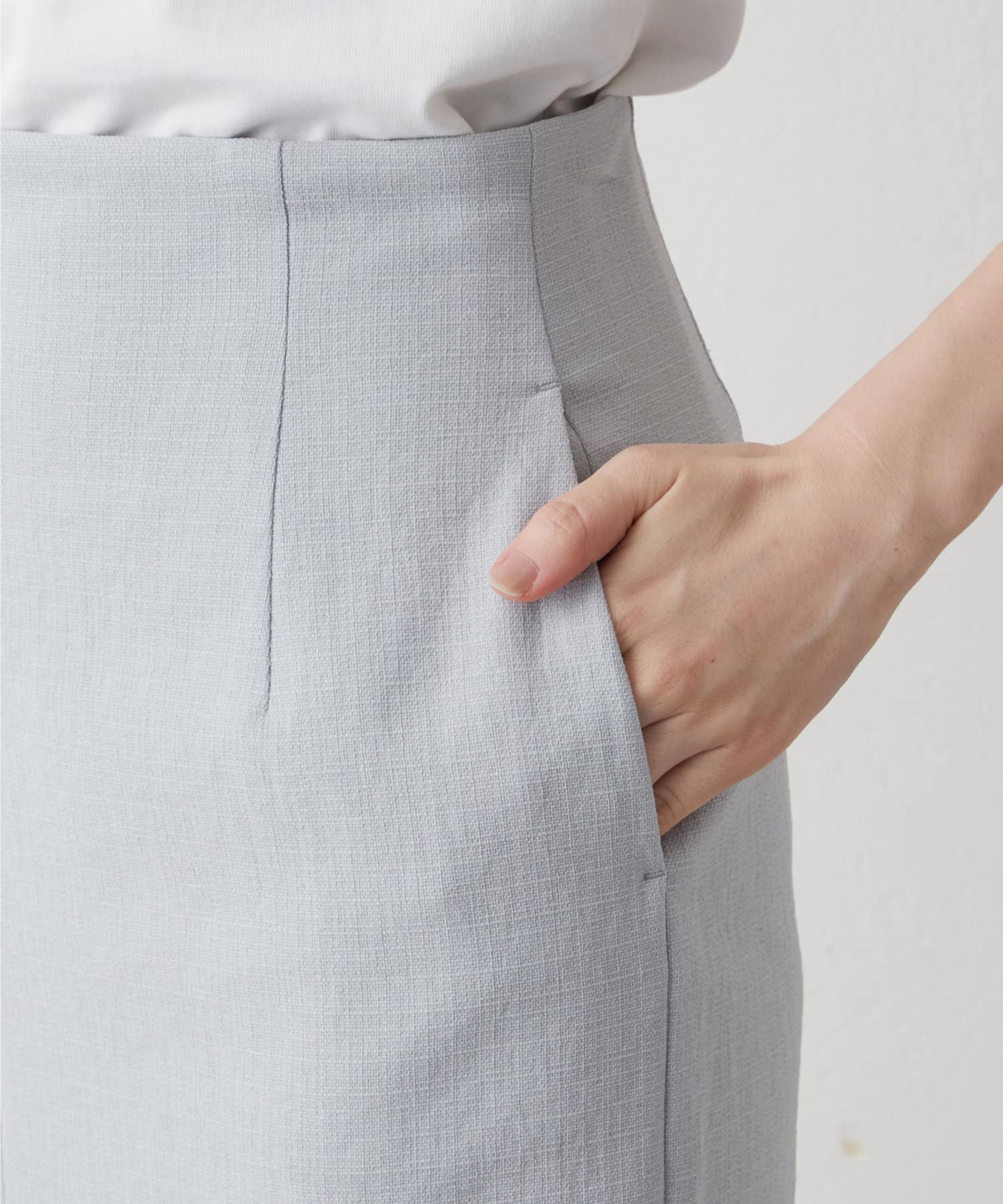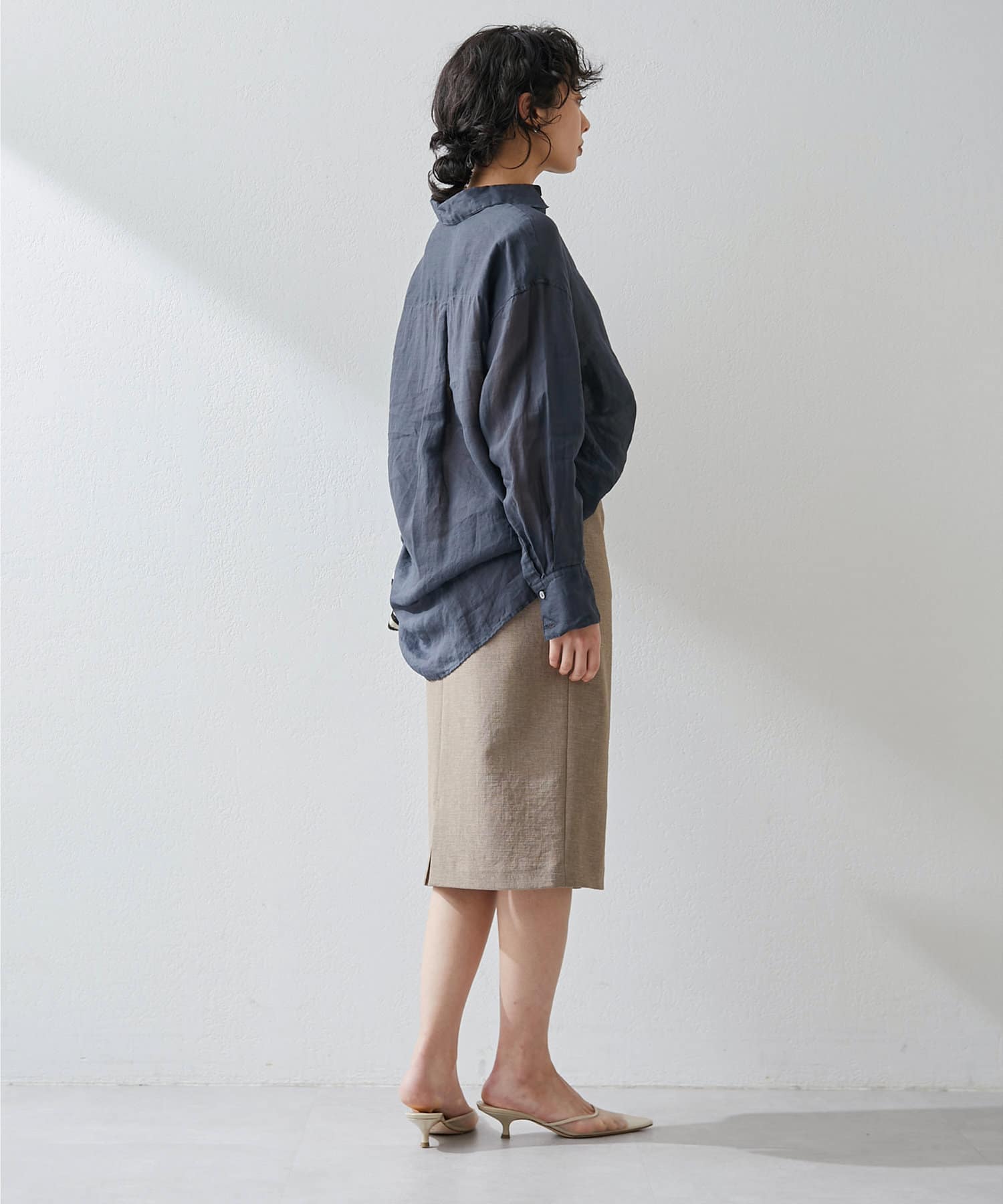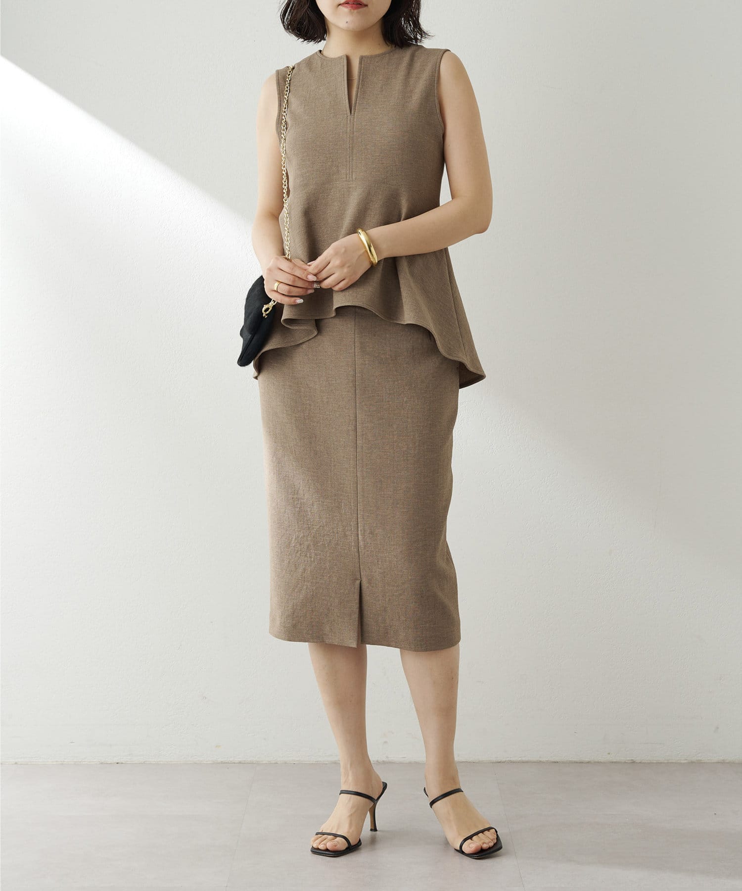 ■ミディ丈が着こなしの鮮度を上げてくれるタイトスカート。