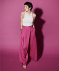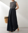 ■腰回りはタックを入れてゆとりを持たせつつ、フロント部分をラップ風のデザインにしてすっきりと見えるデザインに。
