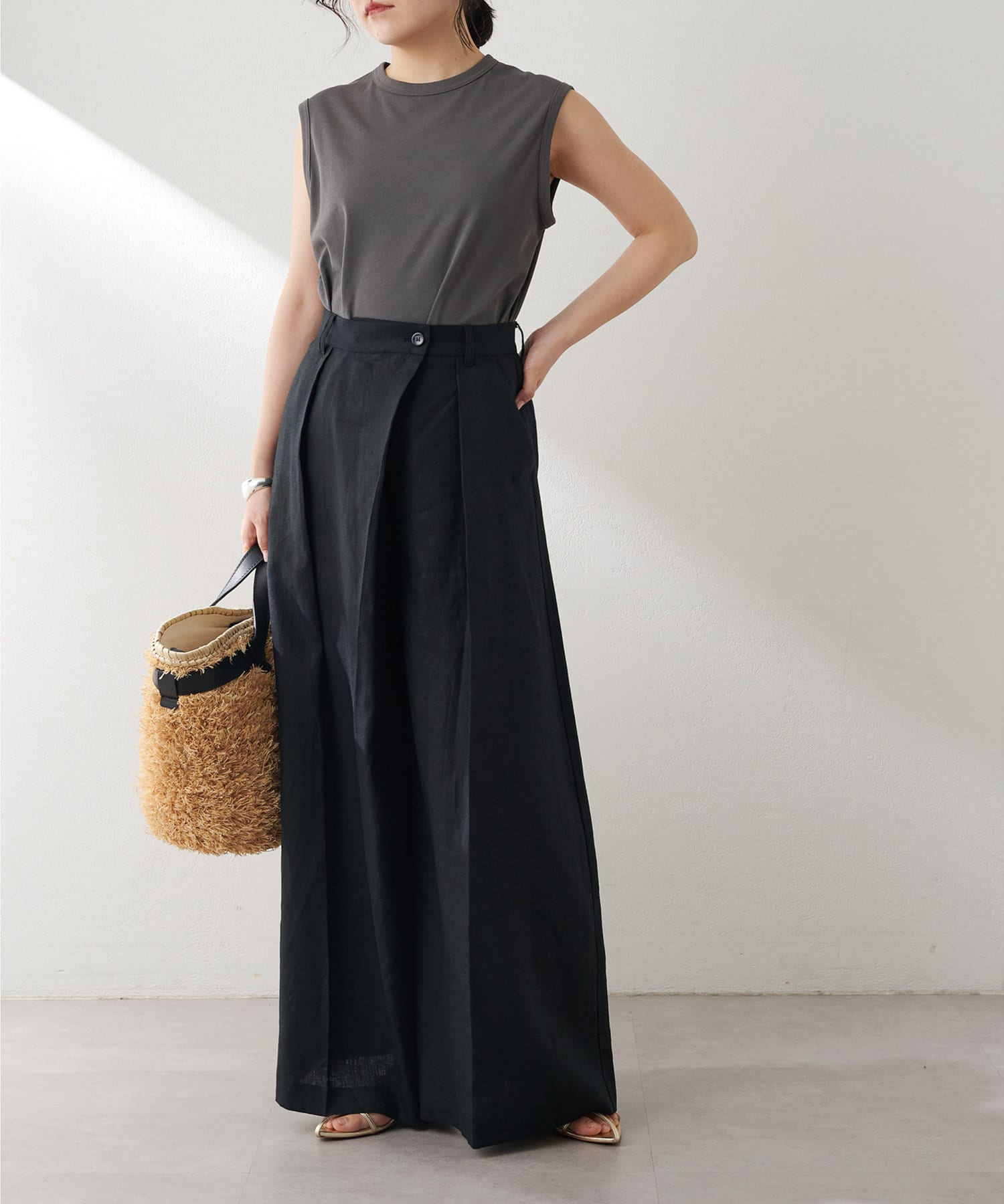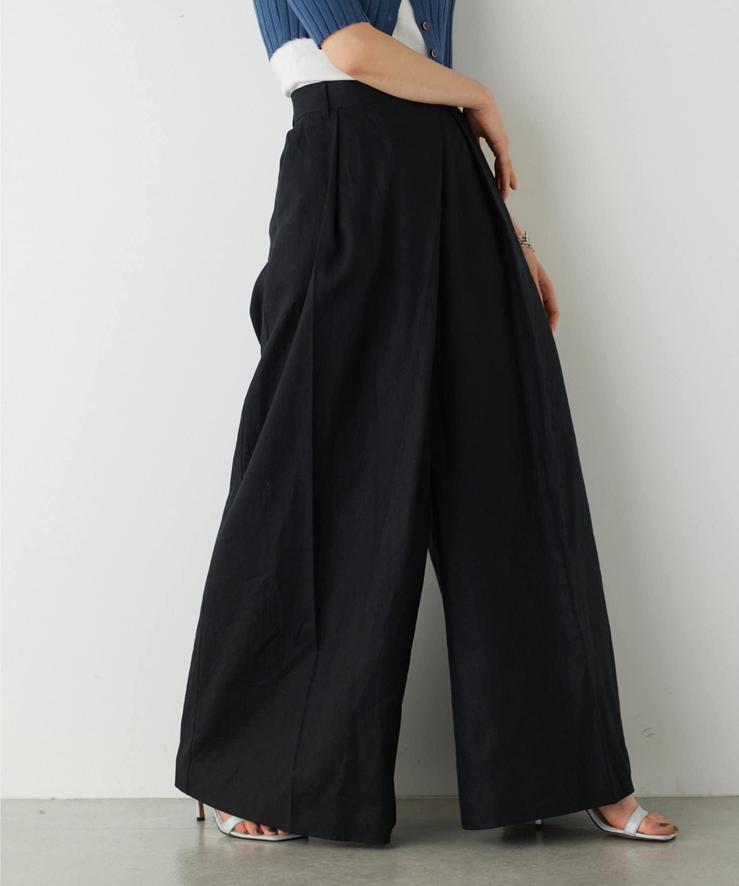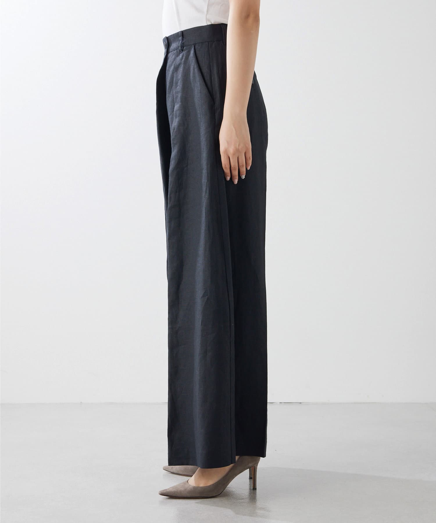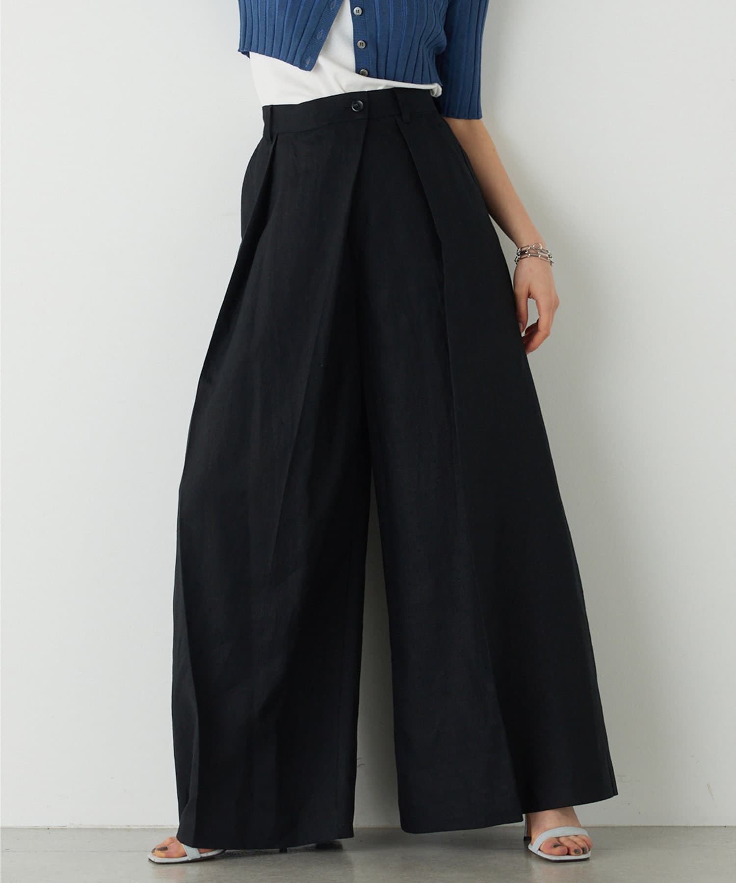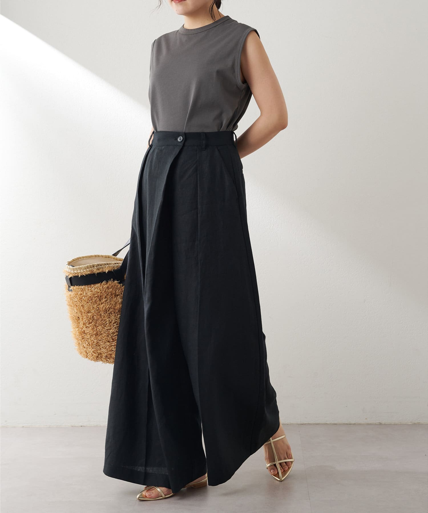 大胆なワイドシルエットでメリハリを効かせたリネンパンツ