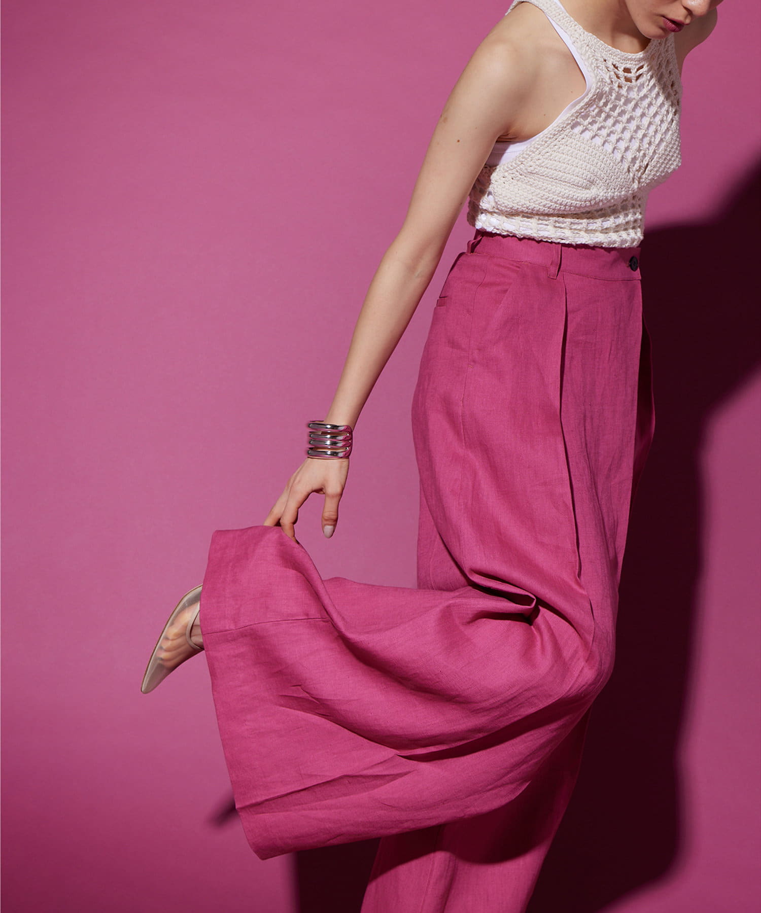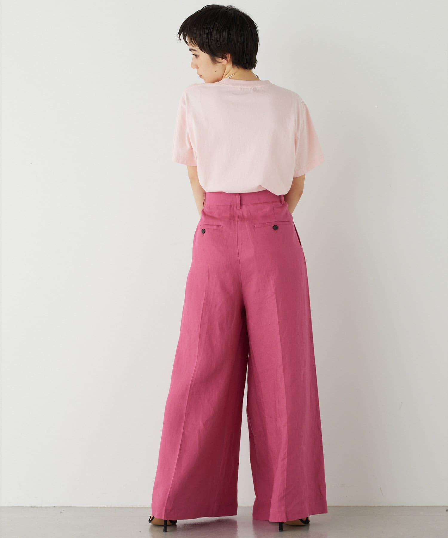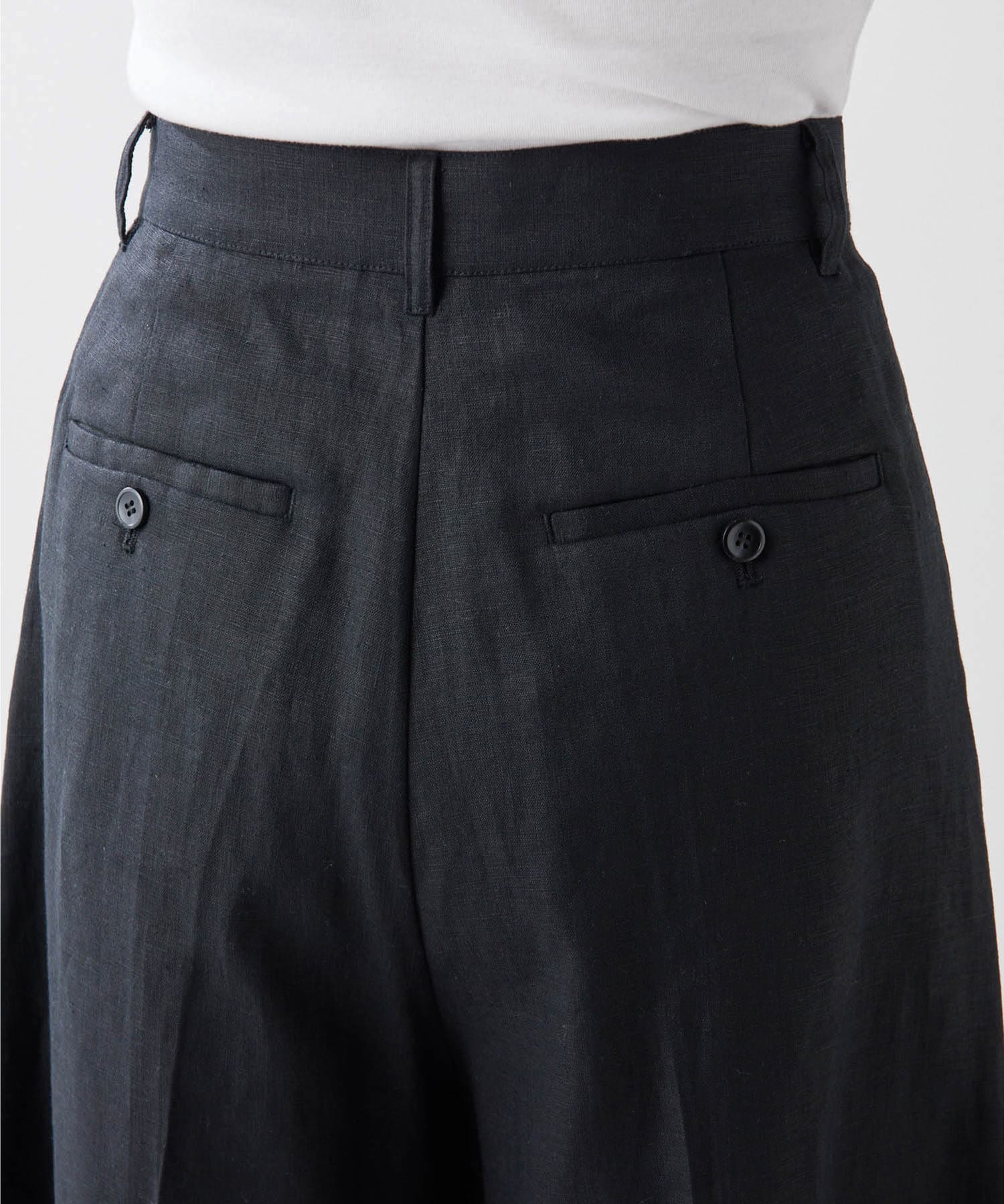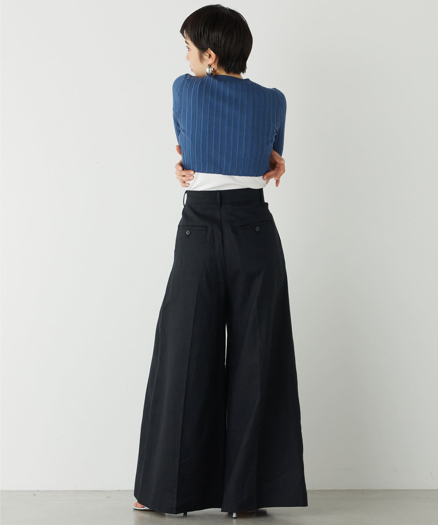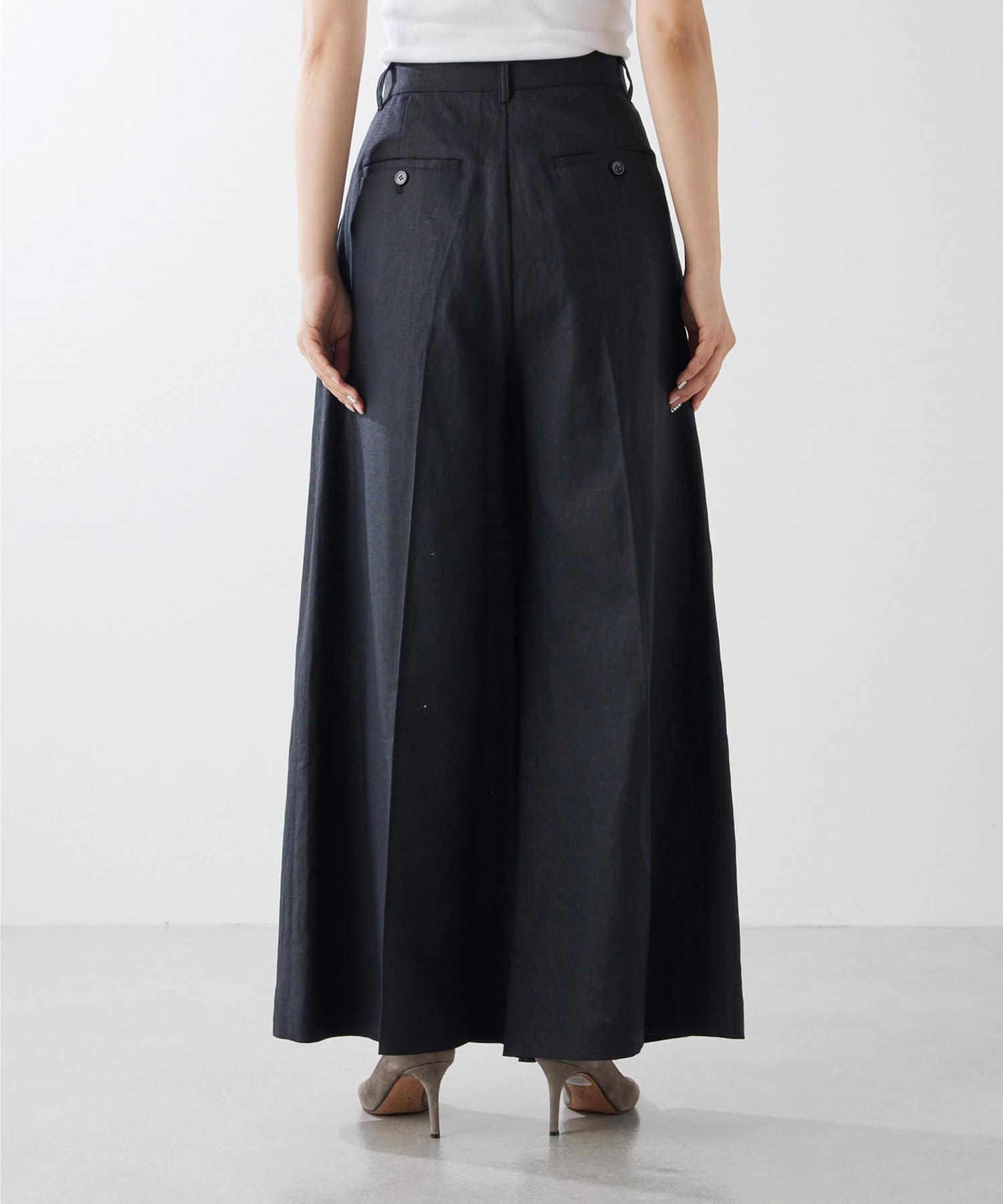 大胆なワイドシルエットでメリハリを効かせたリネンパンツ