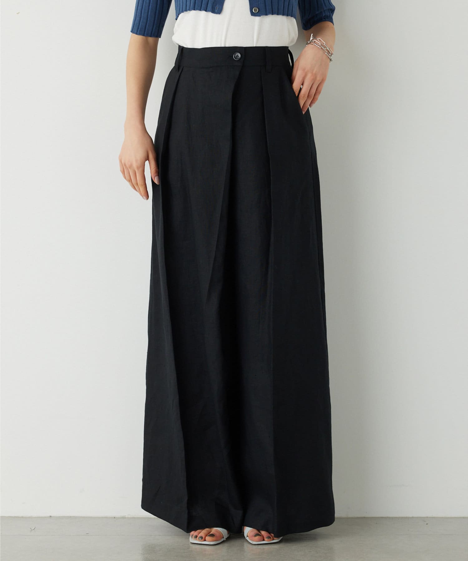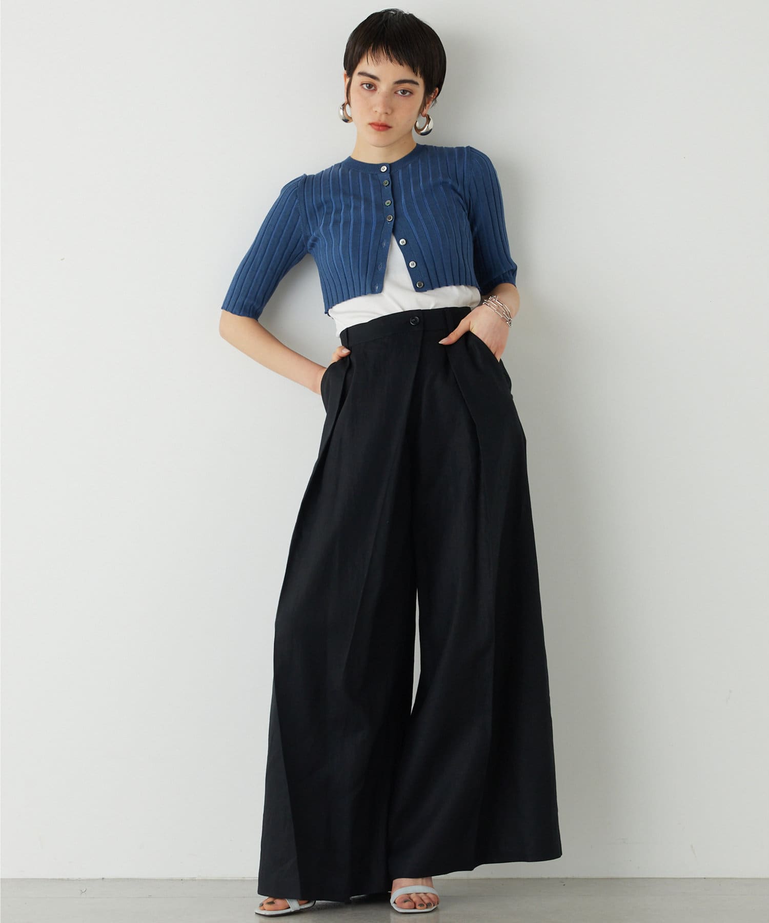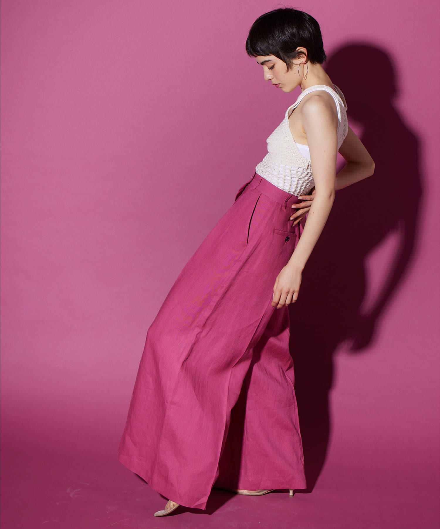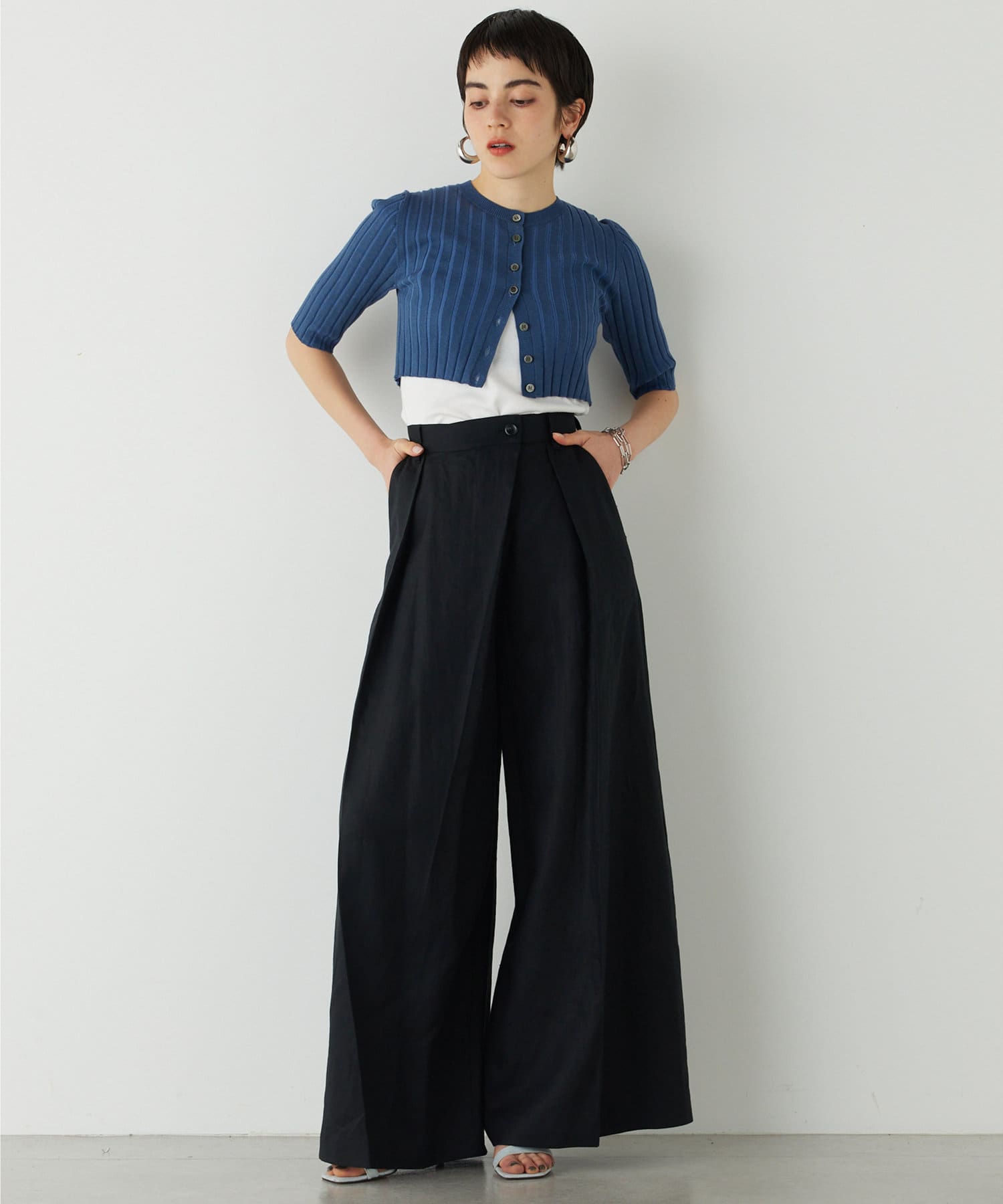 大胆なワイドシルエットでメリハリを効かせたリネンパンツ