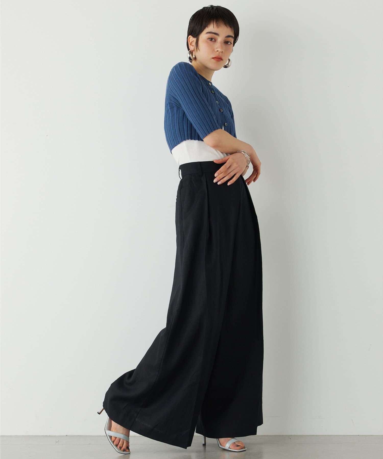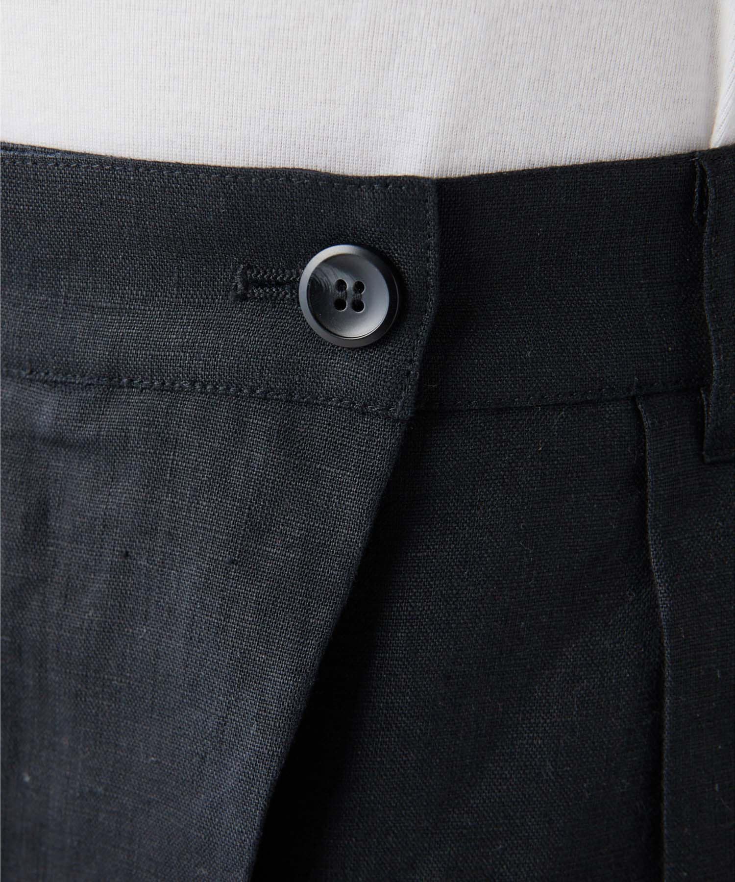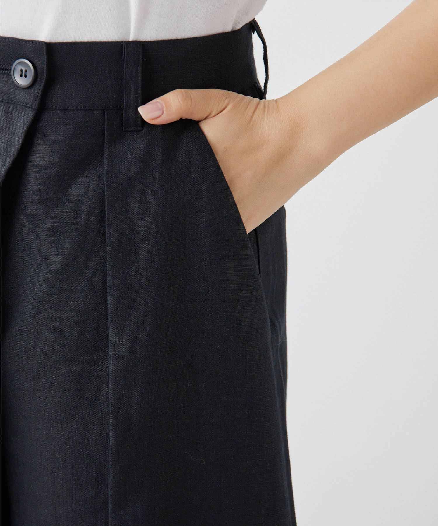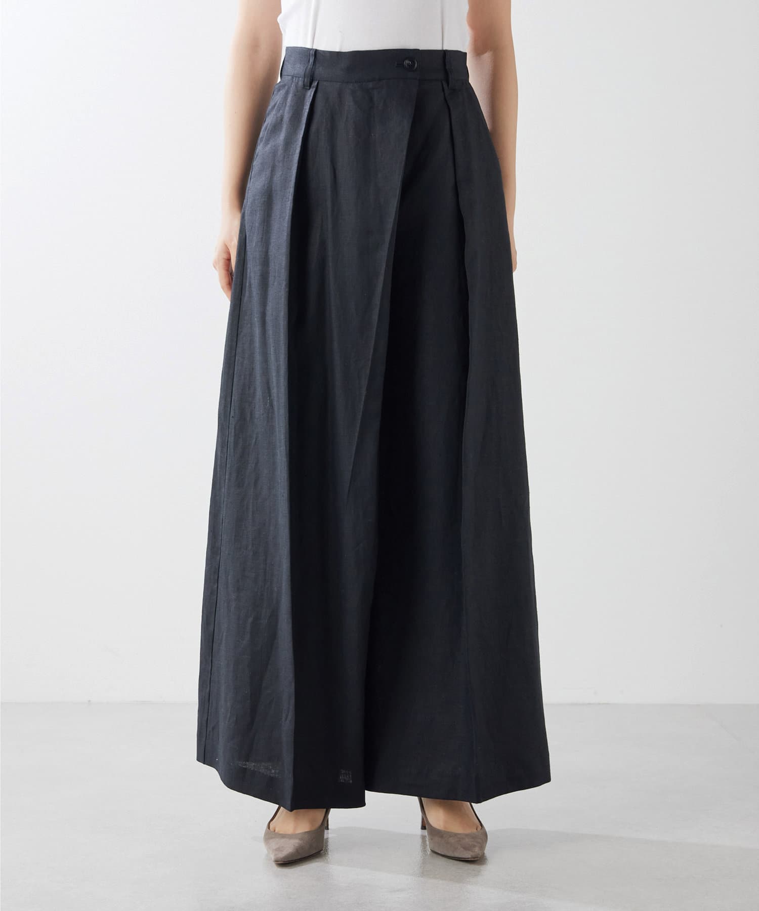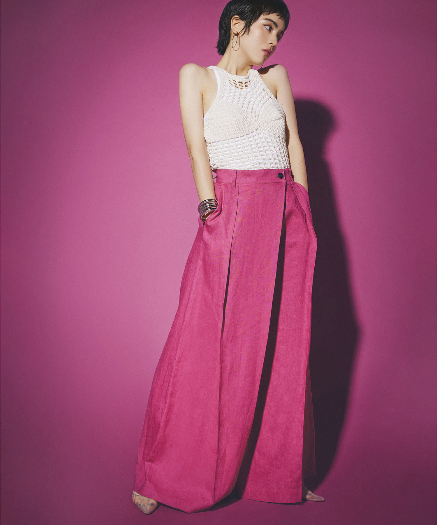 大胆なワイドシルエットでメリハリを効かせたリネンパンツ