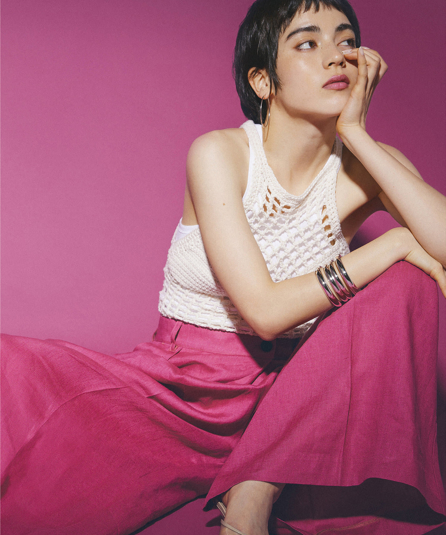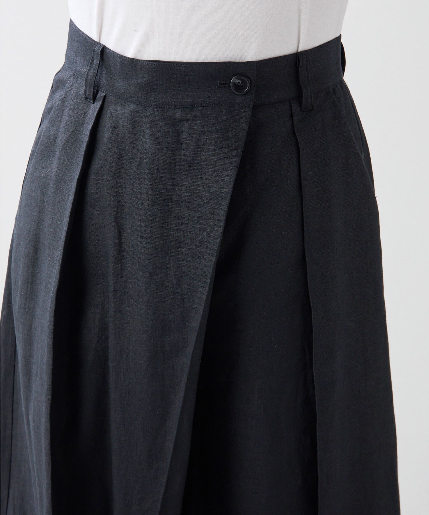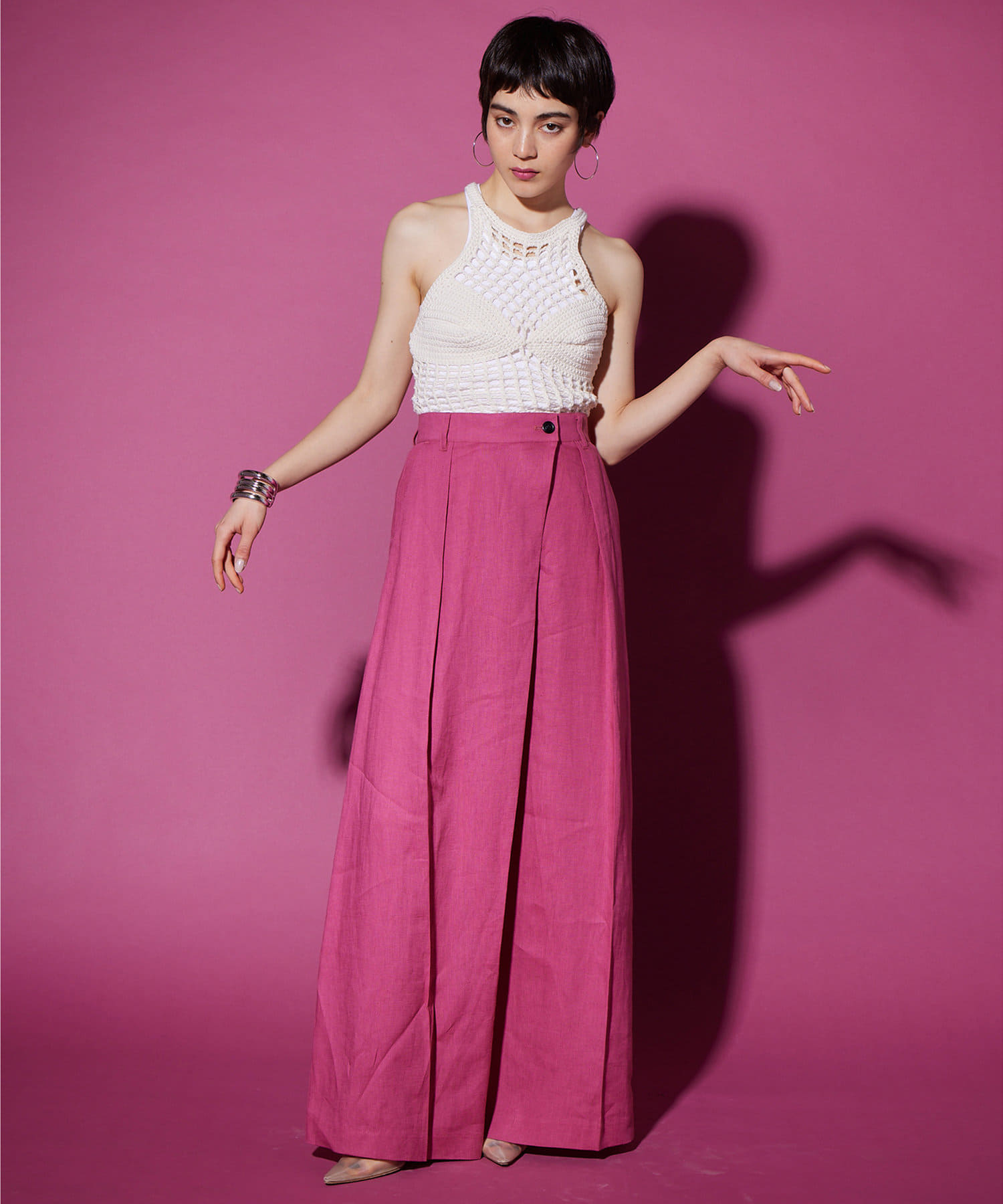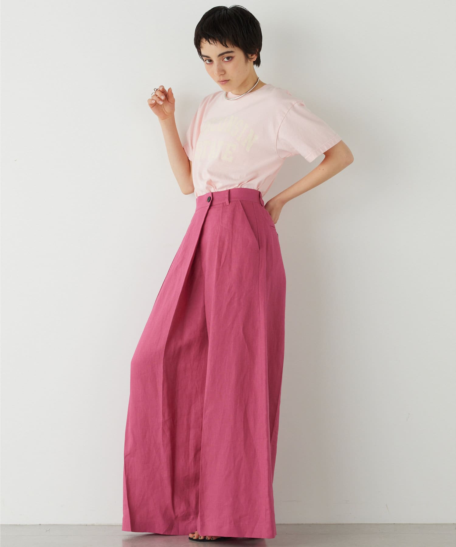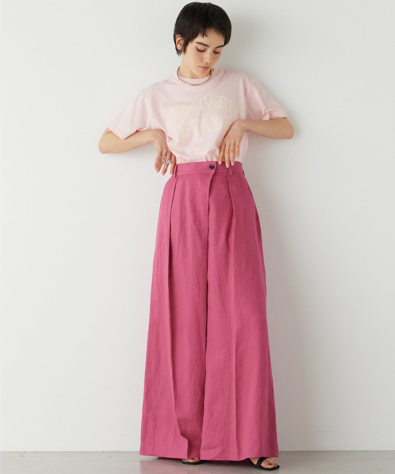 大胆なワイドシルエットでメリハリを効かせたリネンパンツ