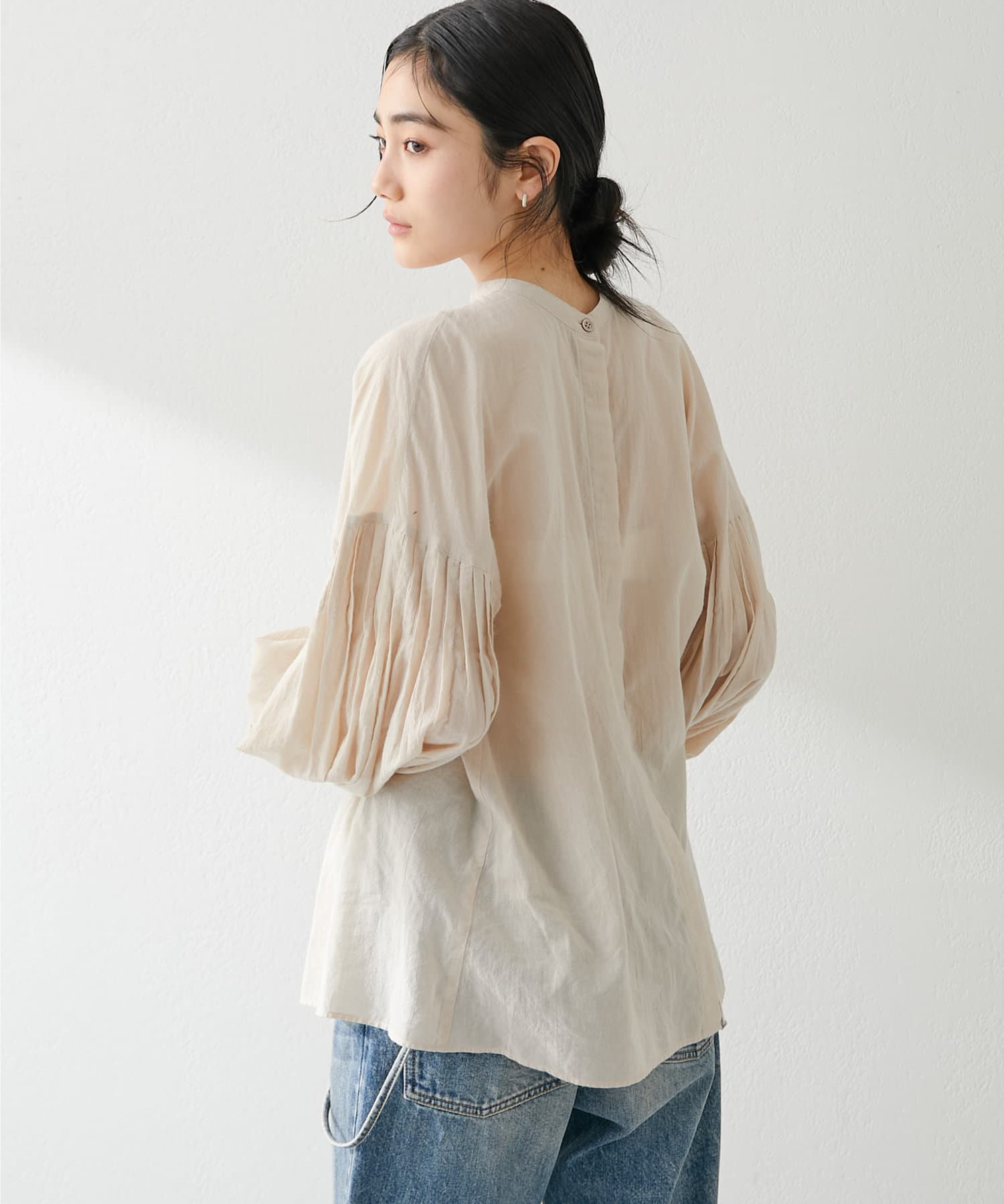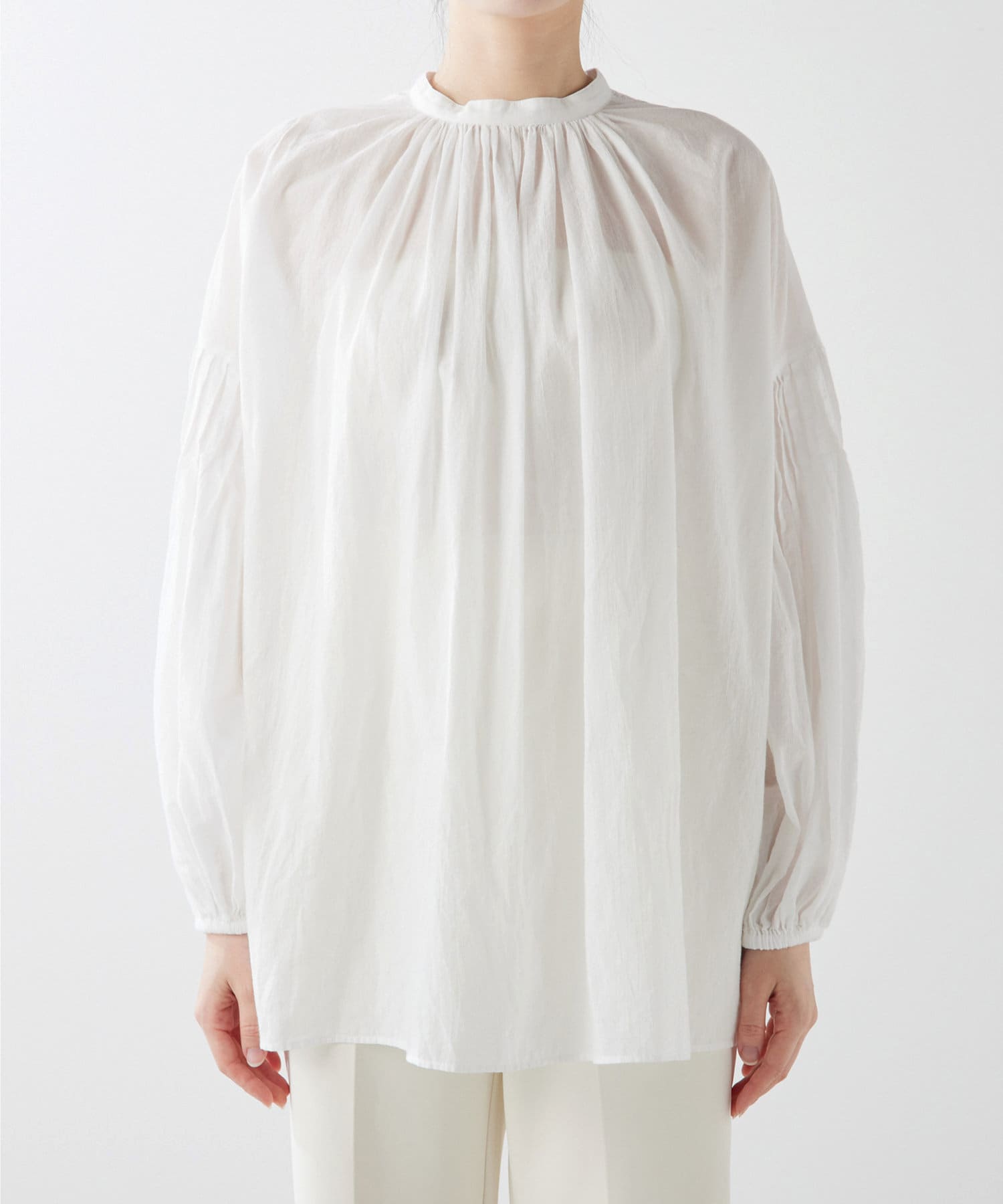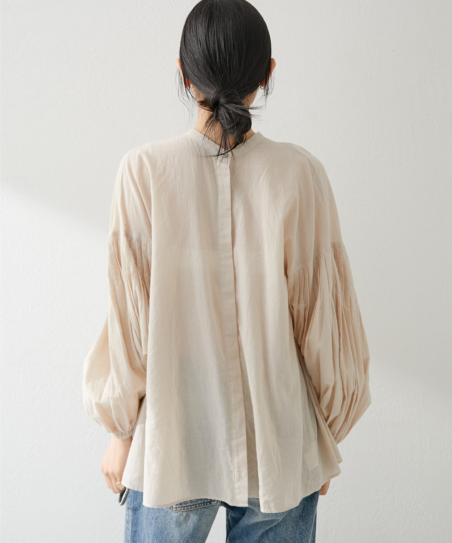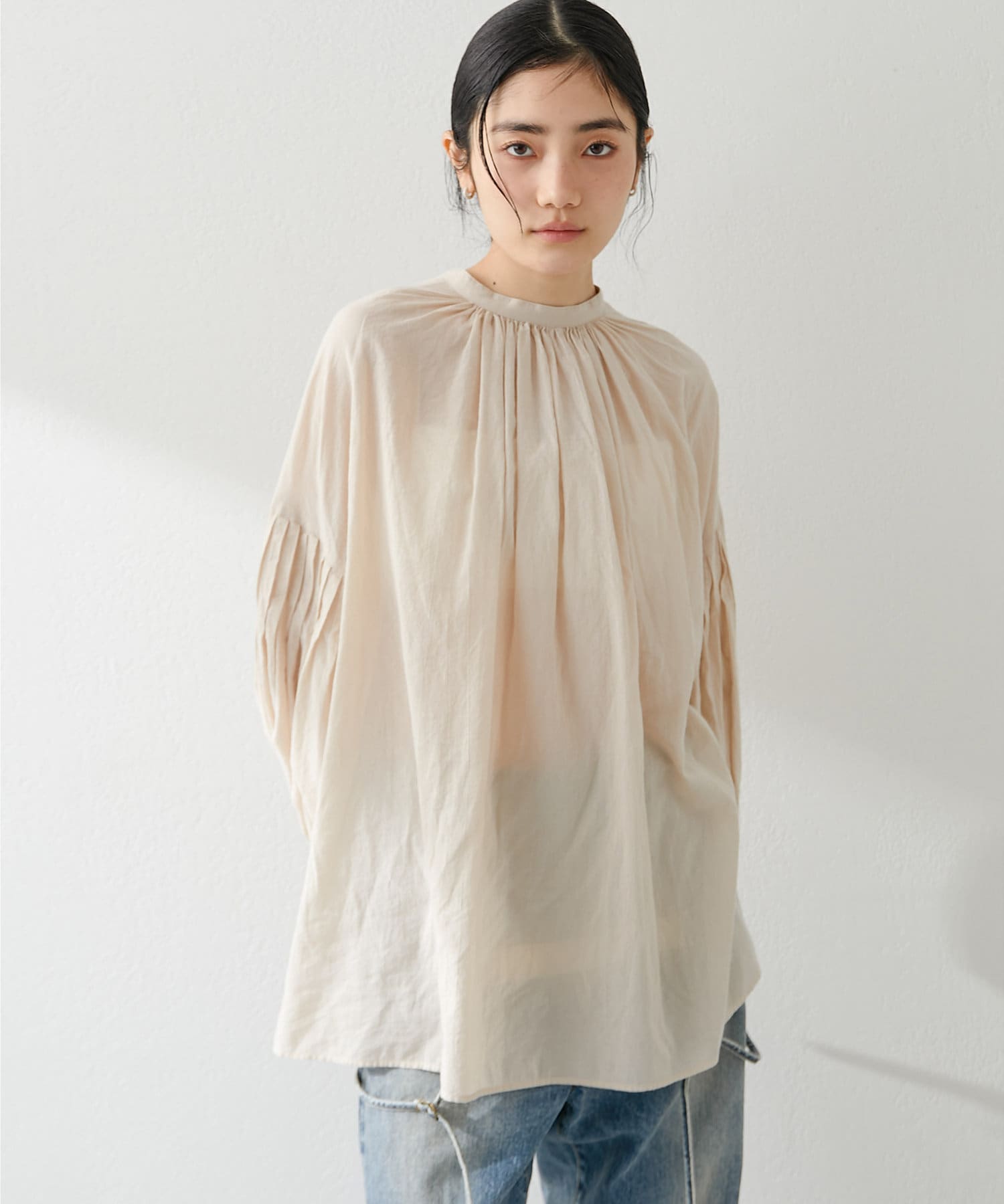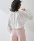 ■袖にあしらったピンタックがポイントのギャザーブラウス。