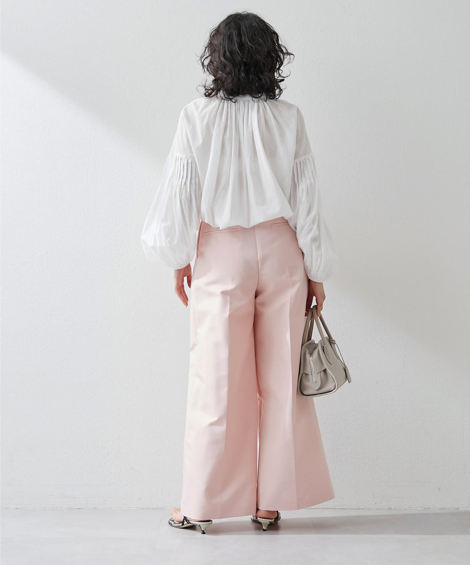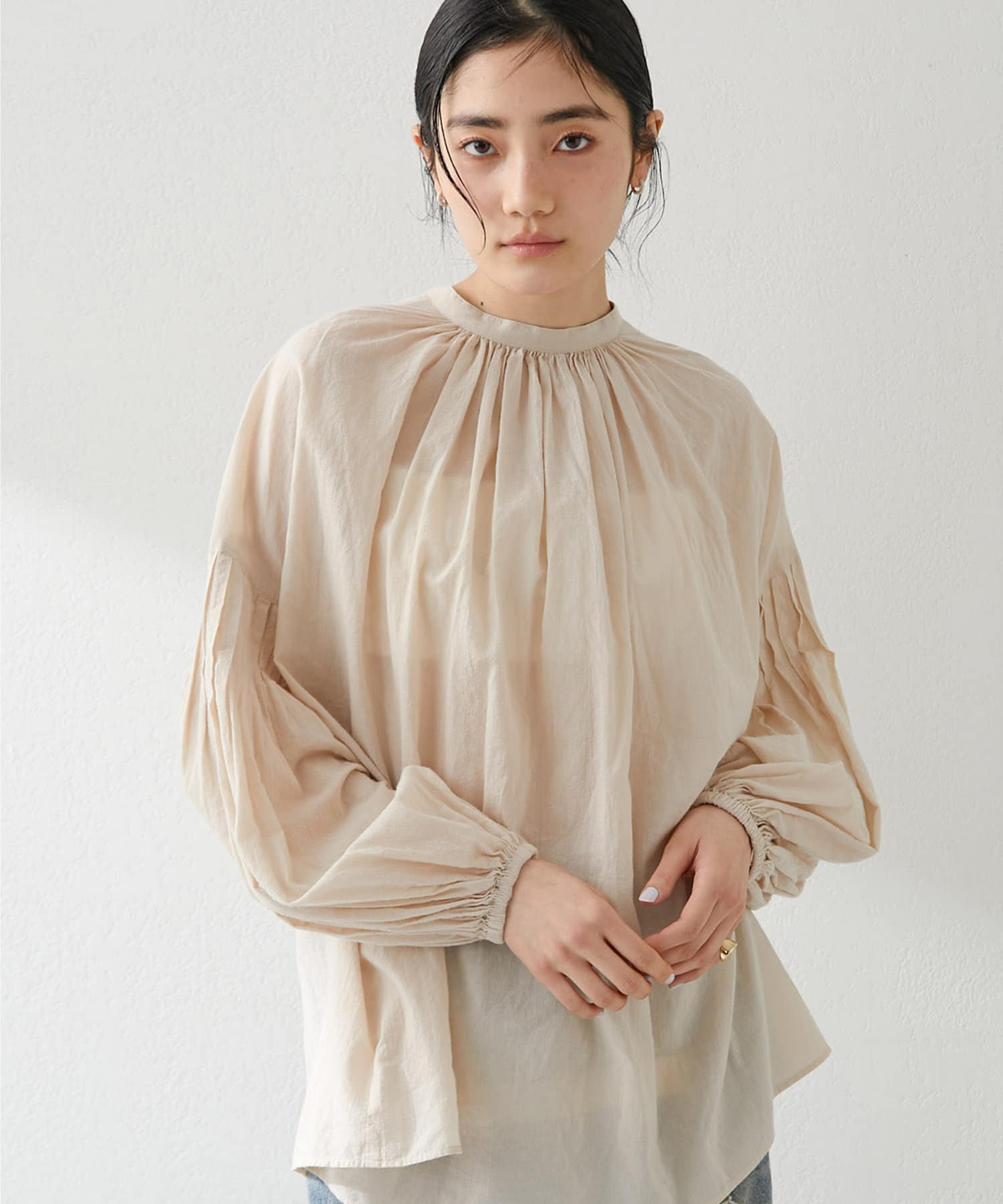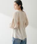 ■たっぷりと膨らみのある袖と身頃のギャザーが甘めな印象ながらも抜け感のあるデザイン。