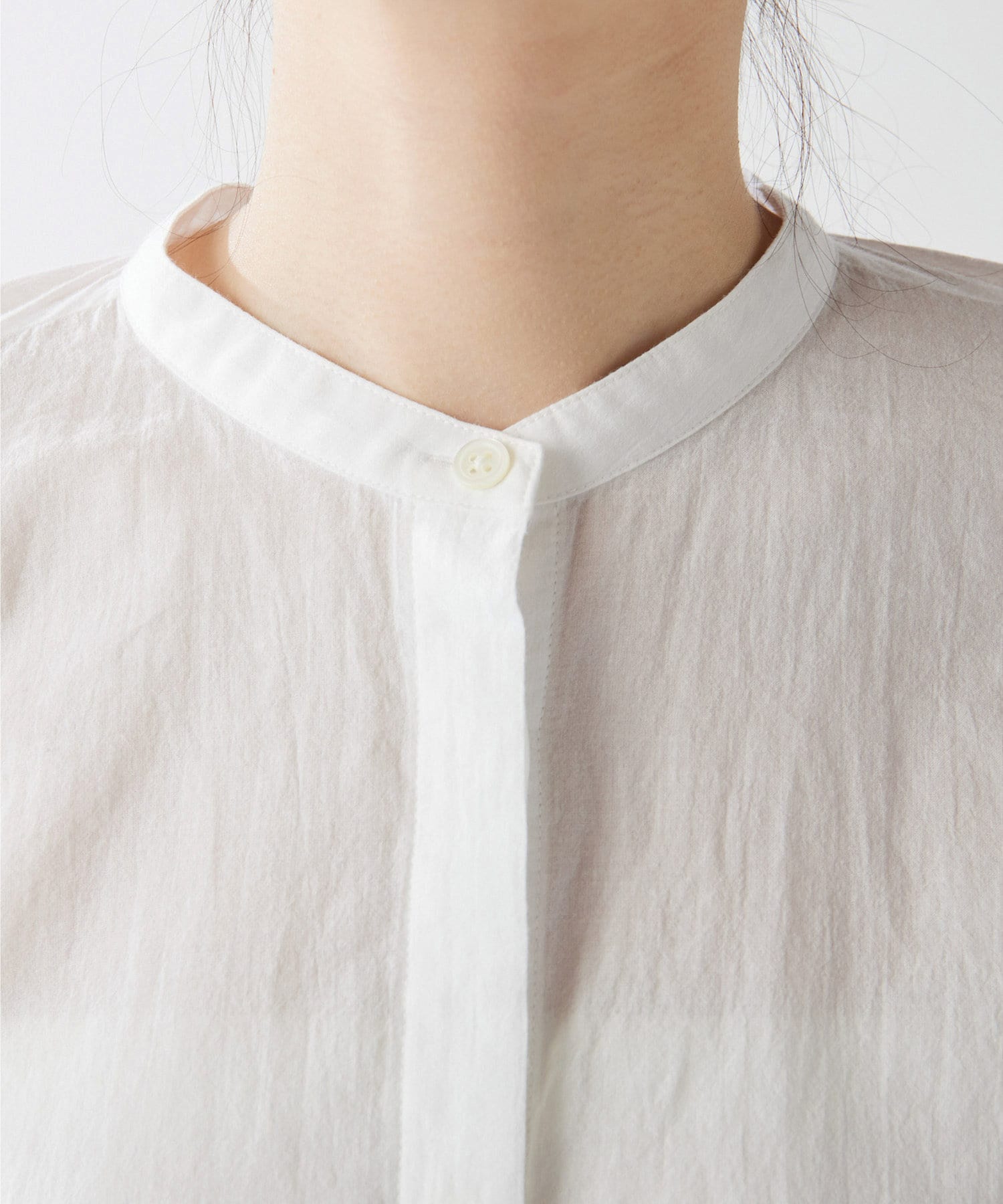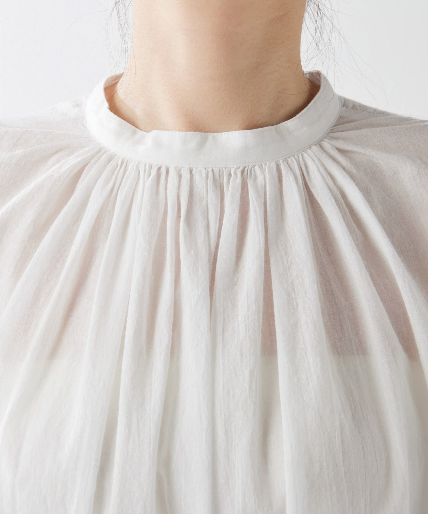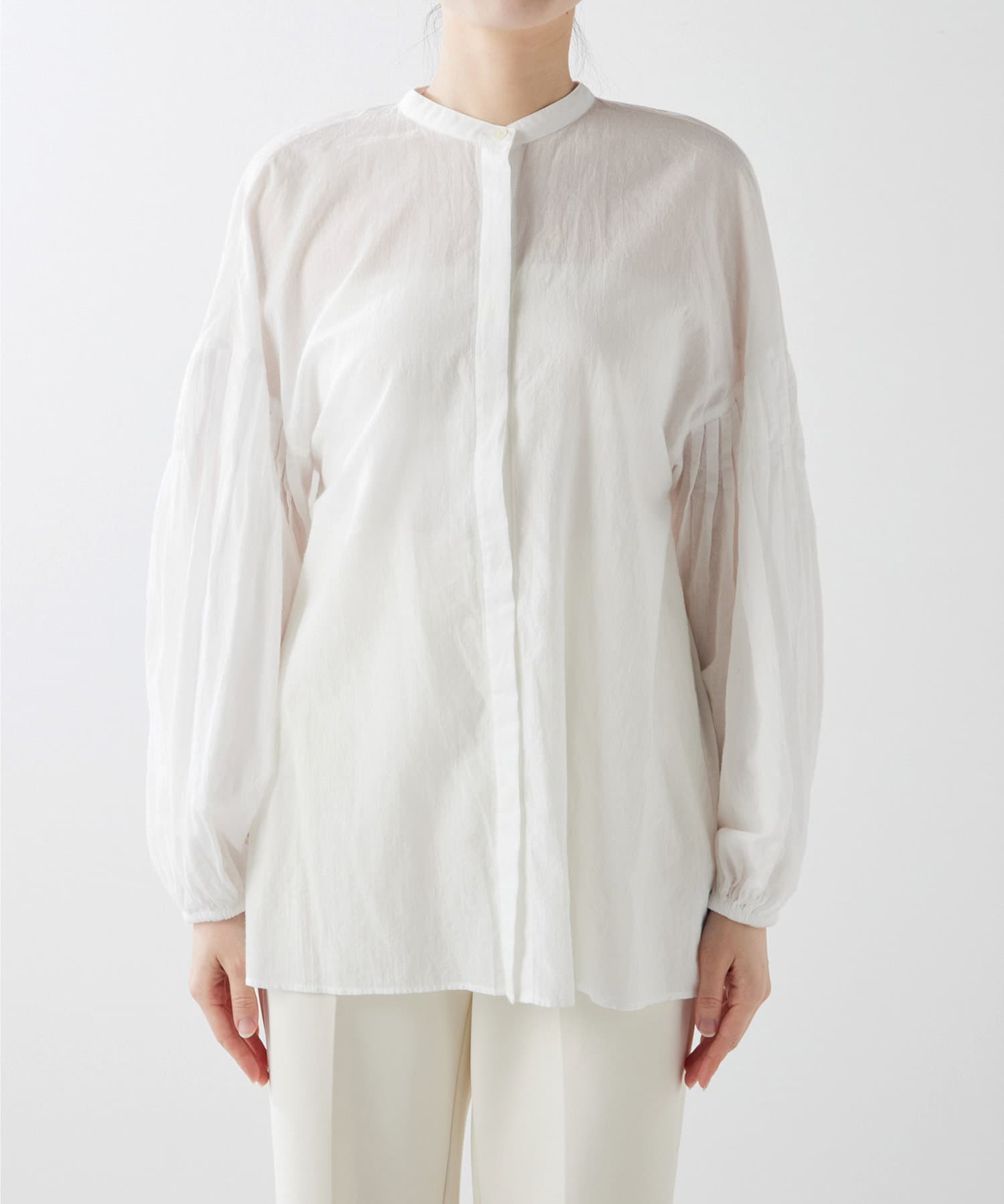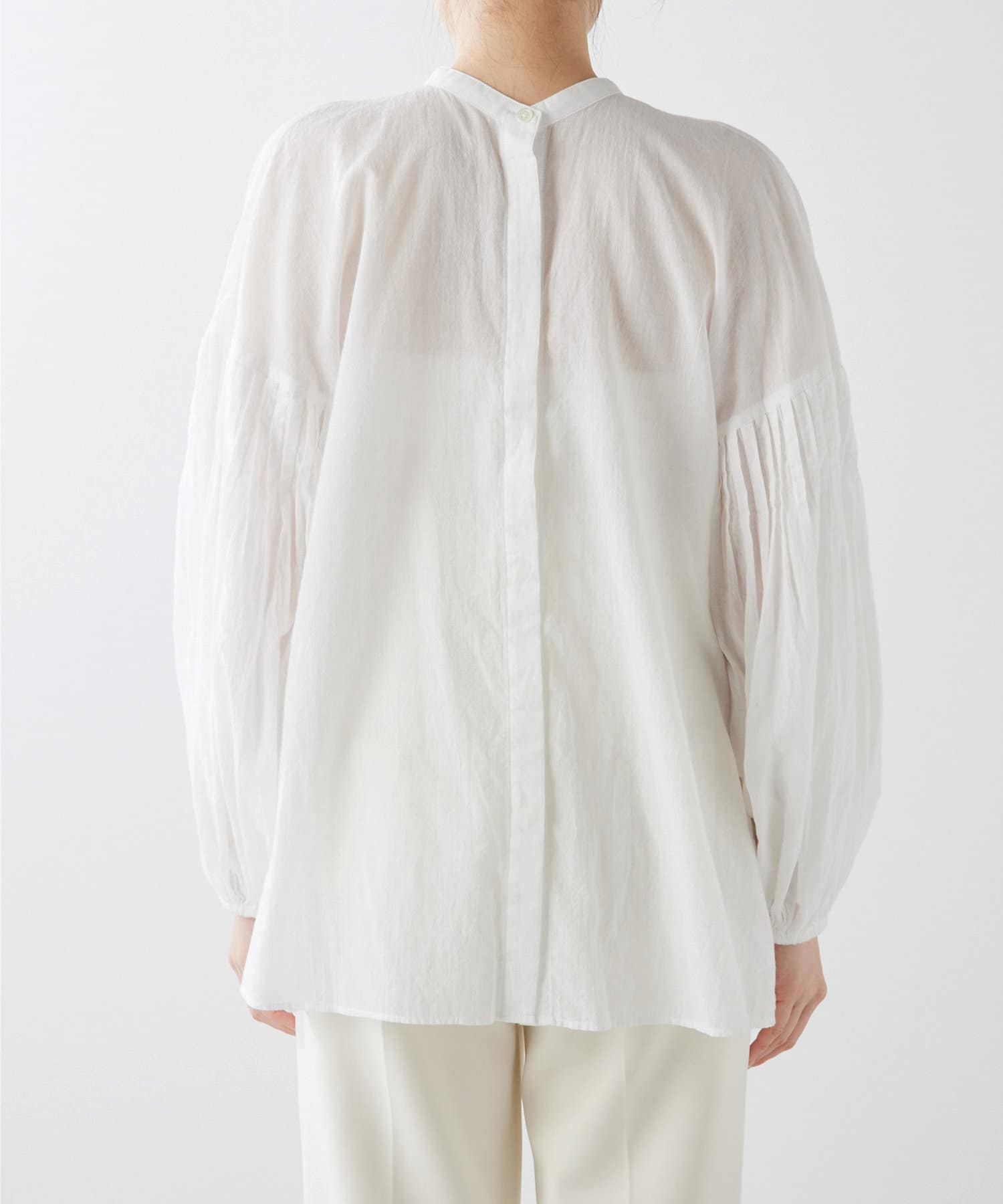 コットンシフォンの素材感が着心地良く、柔らかな印象にしてくれます。袖のボリューム感がオシャレ。シルエットを楽しめます。2wayなので前後逆にも着ていただけます。着回し力のある一枚です。程よい透け感が差をつけるアイテムです。