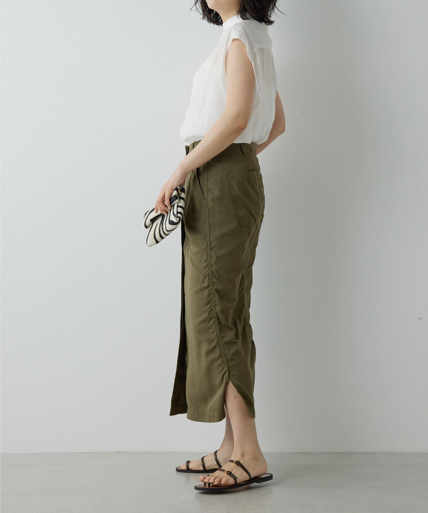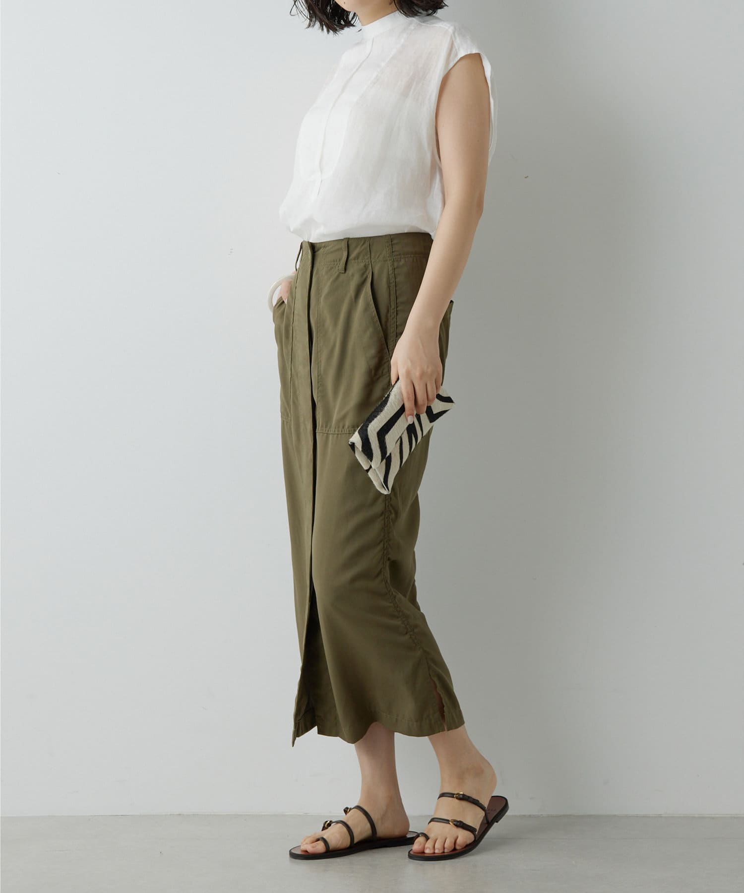 ■両サイドのスリットが抜け感をプラスし、タックアウトでも好バランスに着こなせるアイテム。