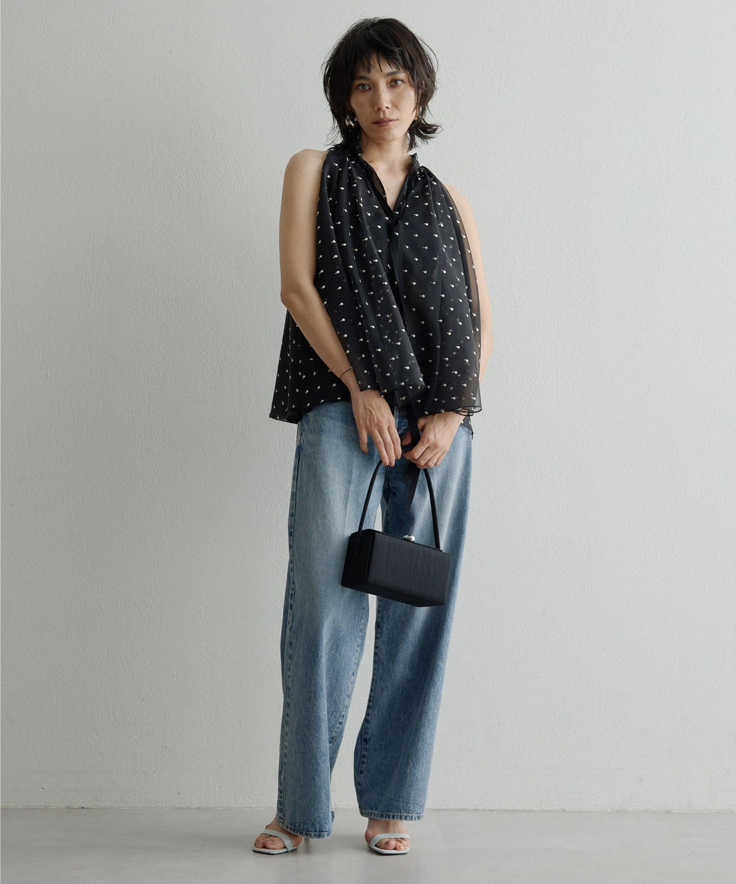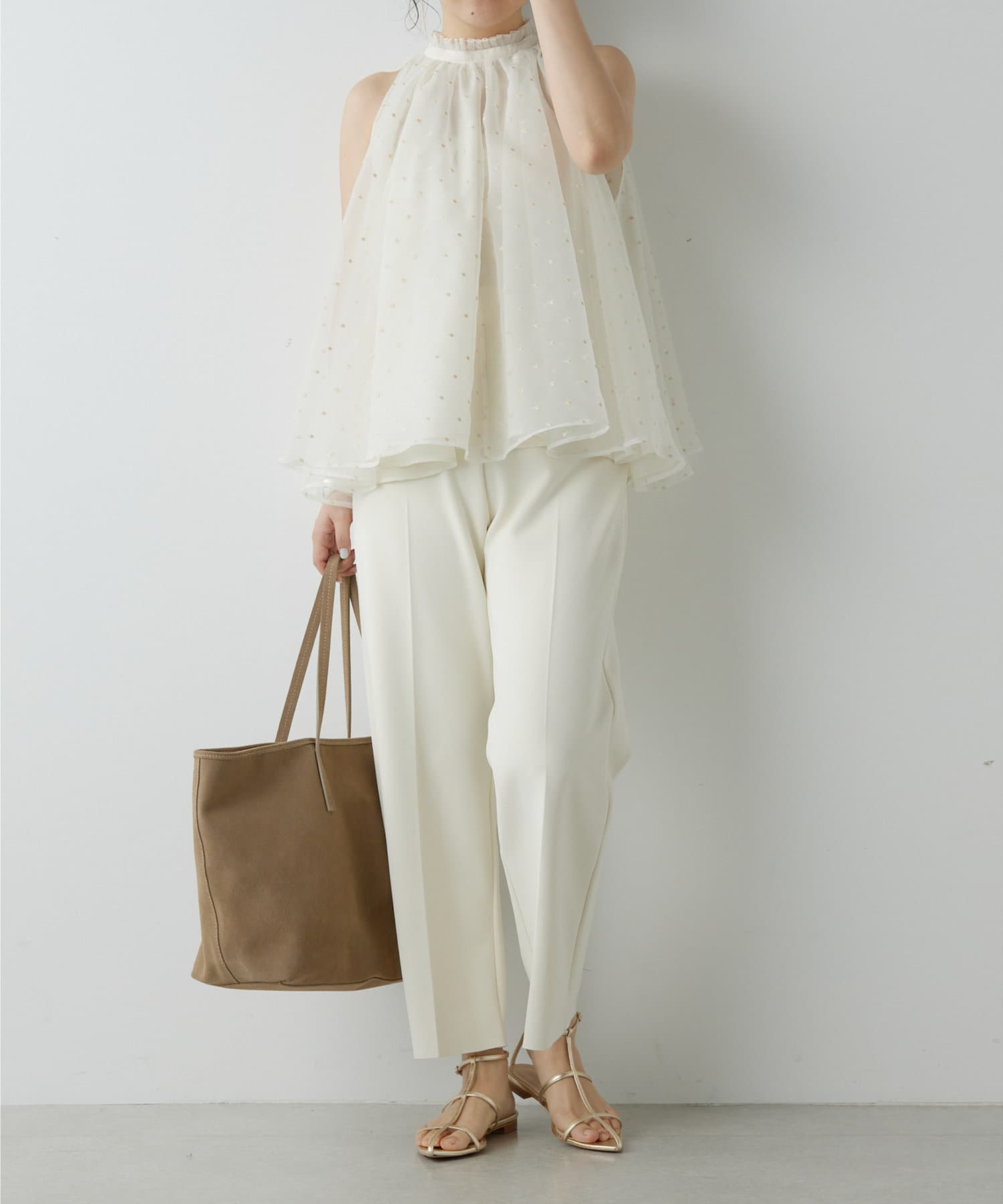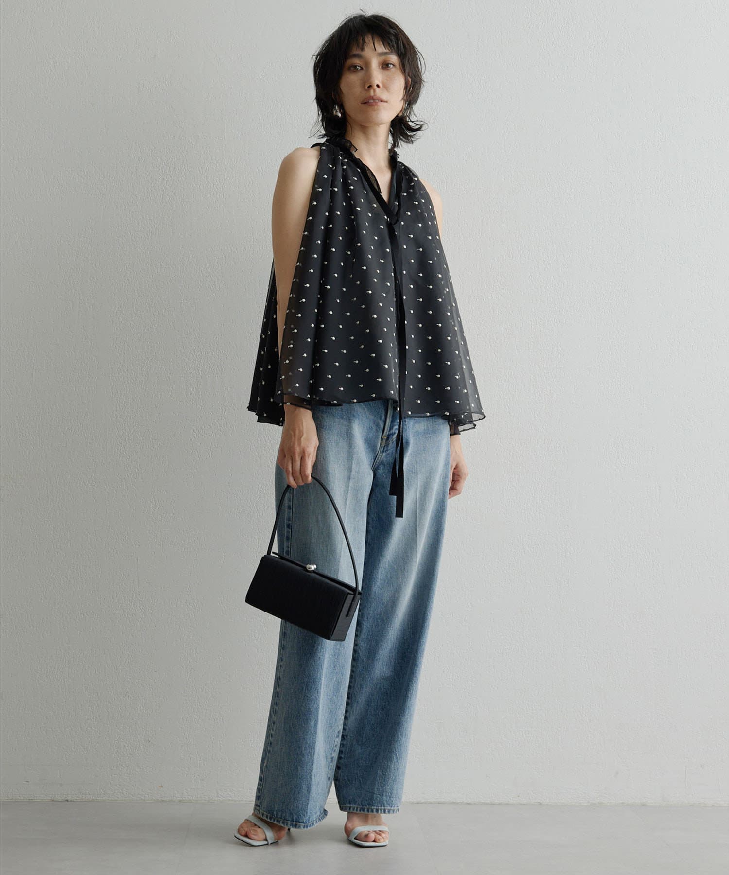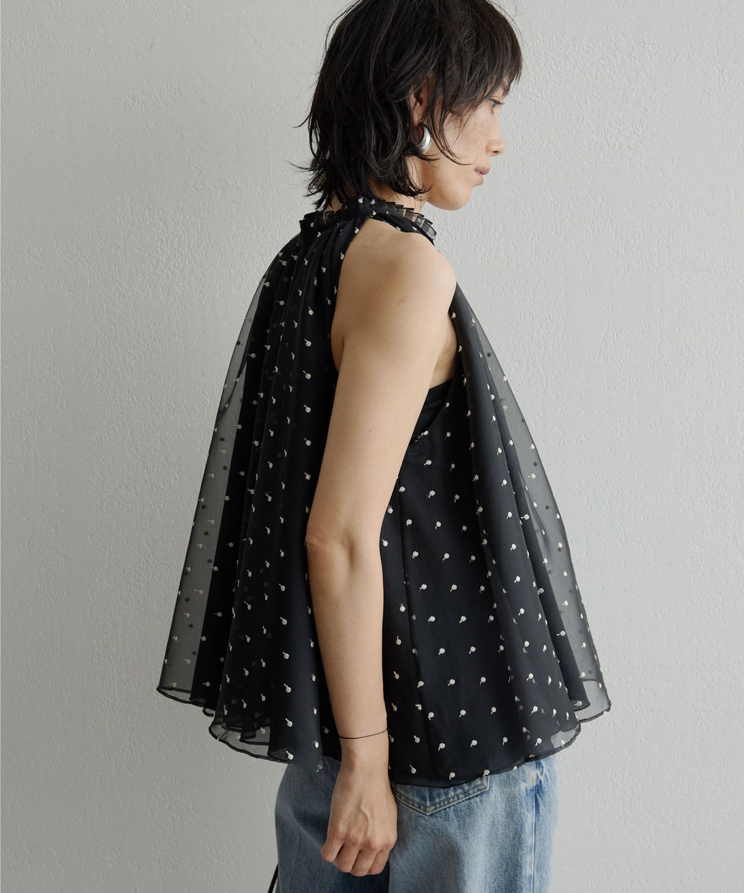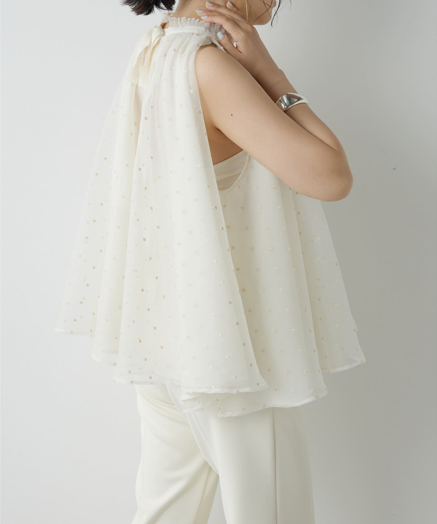 ■繊細なドット柄刺繍を施したオーガンジー素材が目を惹く一枚。
