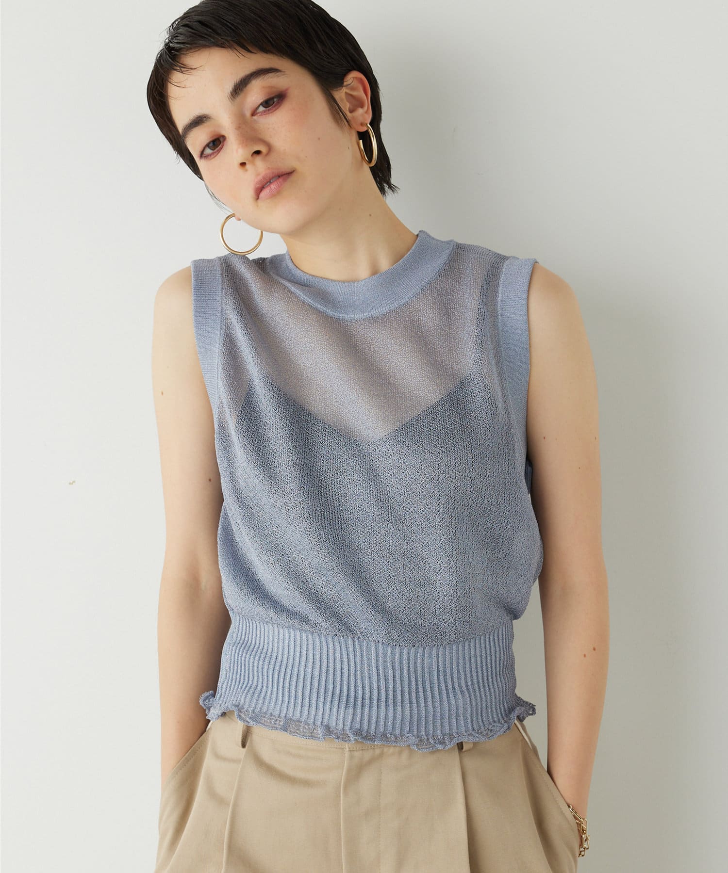 トレンドライクに涼しく楽しめるシアーノースリーブニット