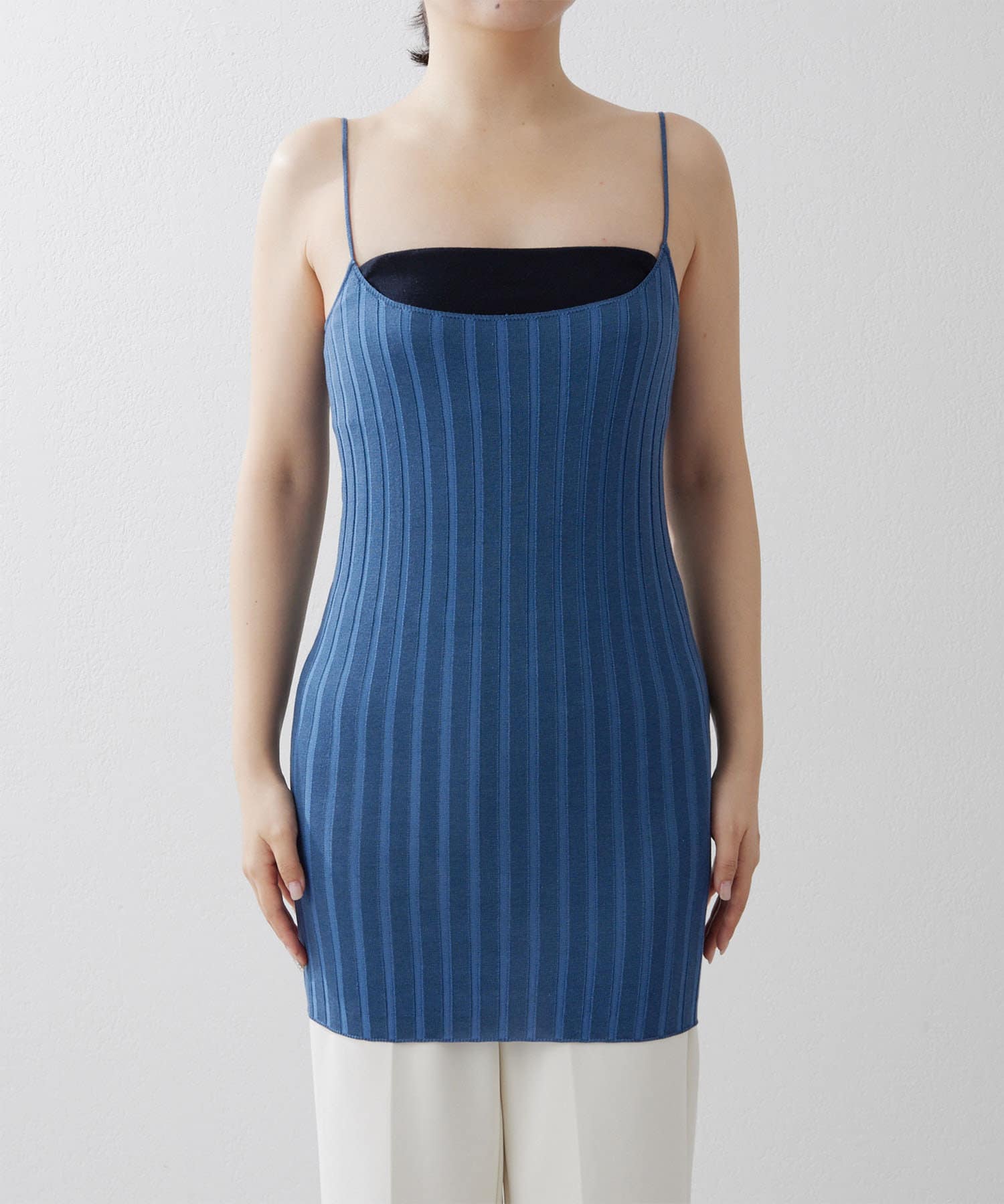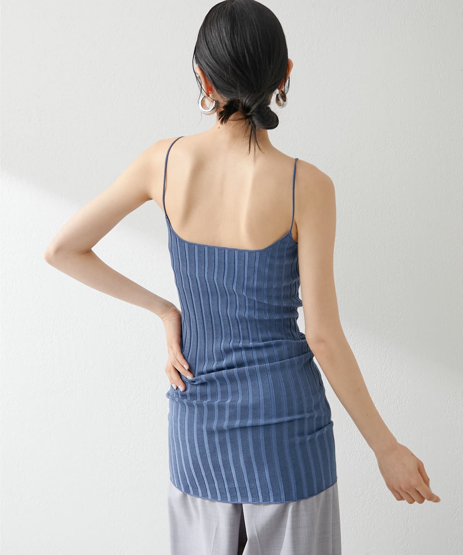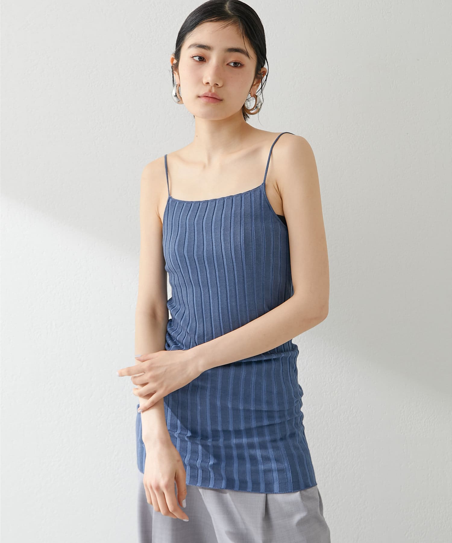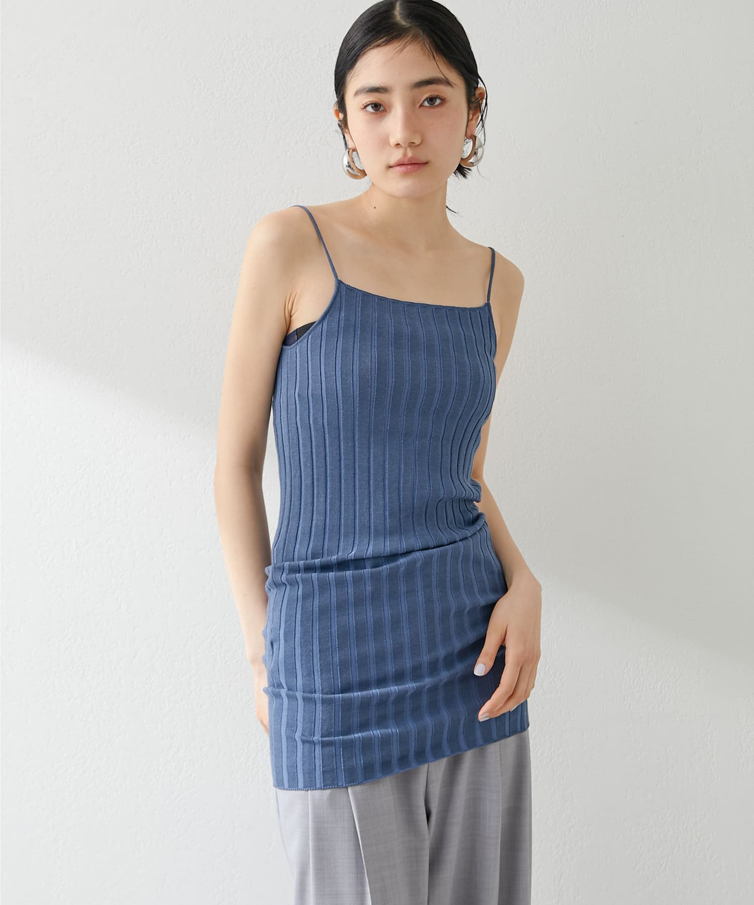 ■ワイドリブニットの表情がポイントのロングキャミソール。
