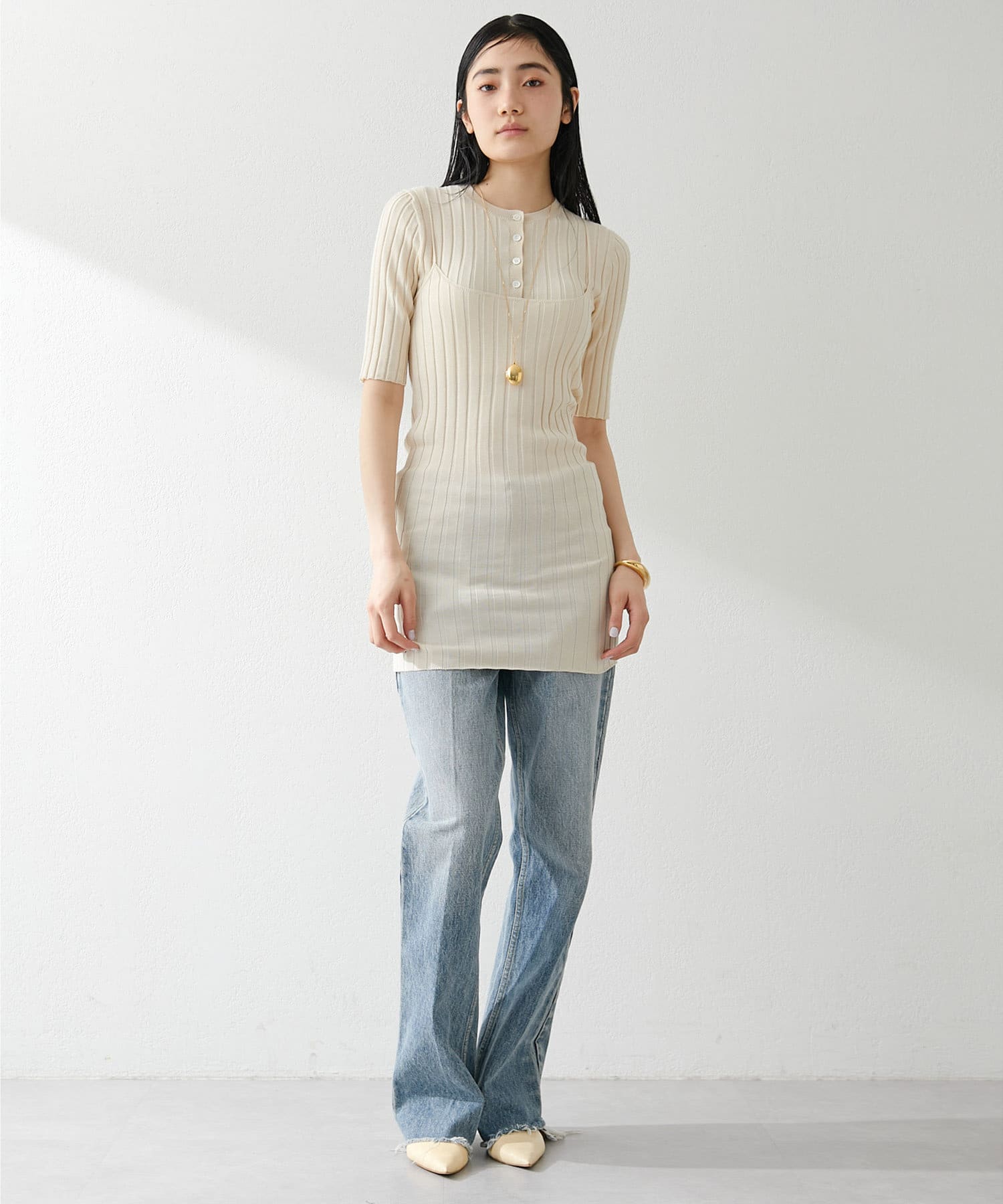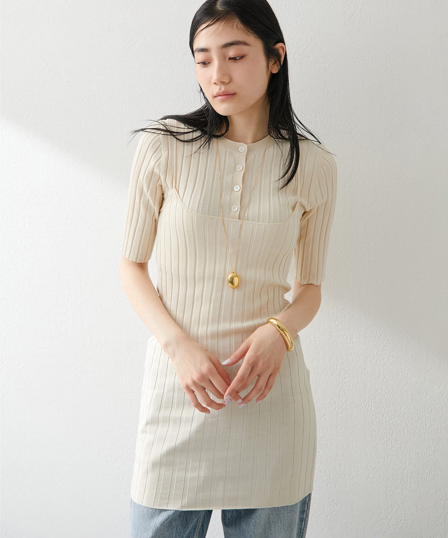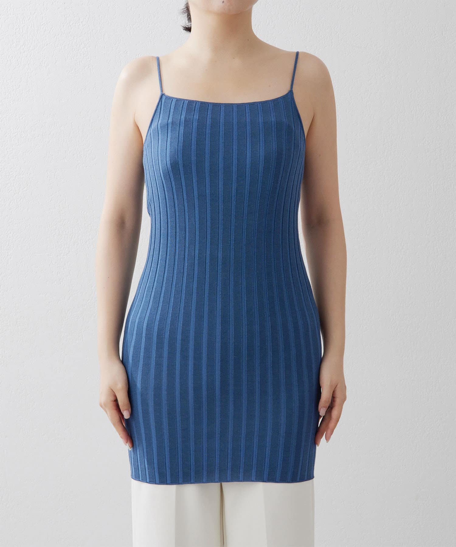 ■ワイドリブニットの表情がポイントのロングキャミソール。