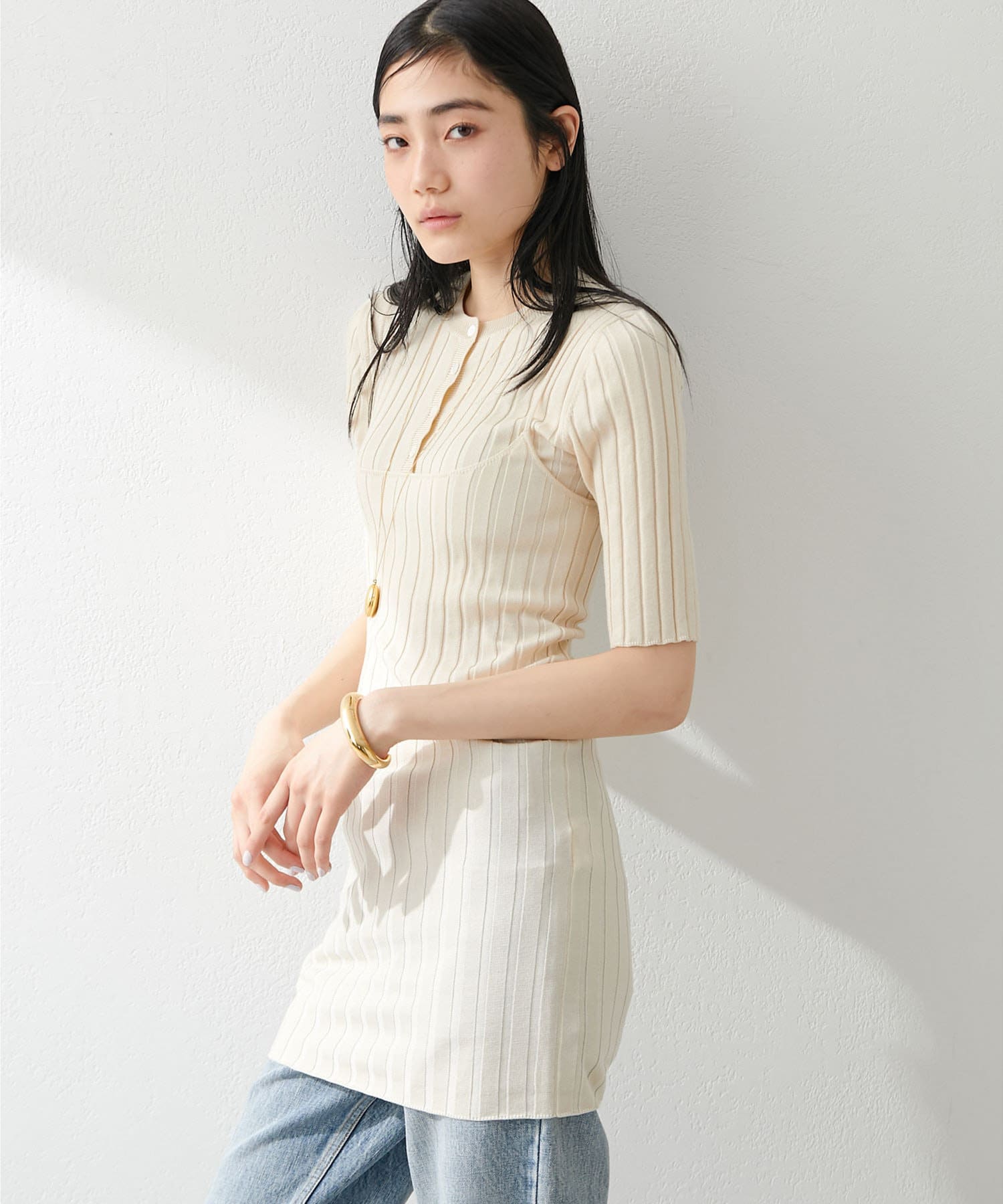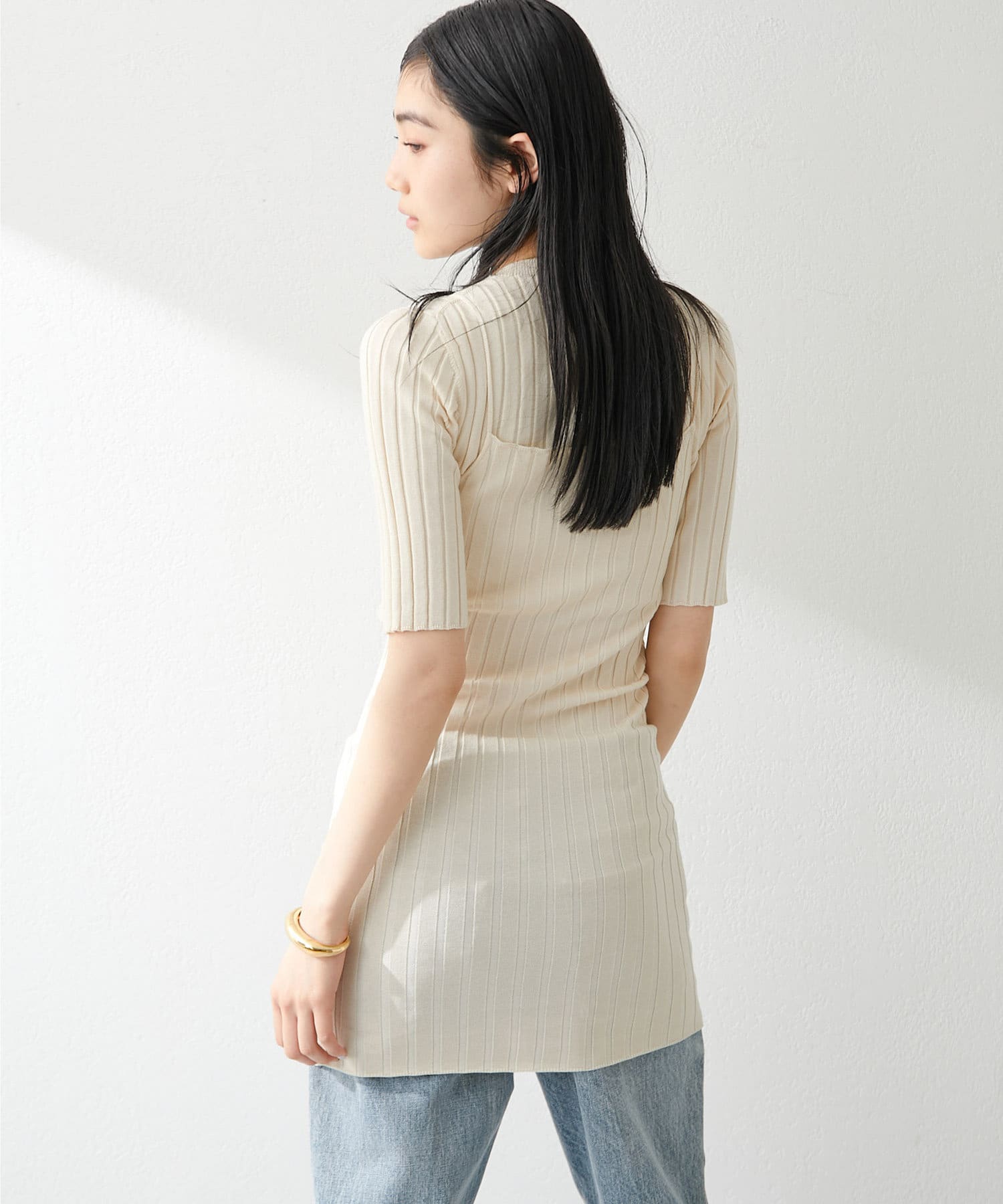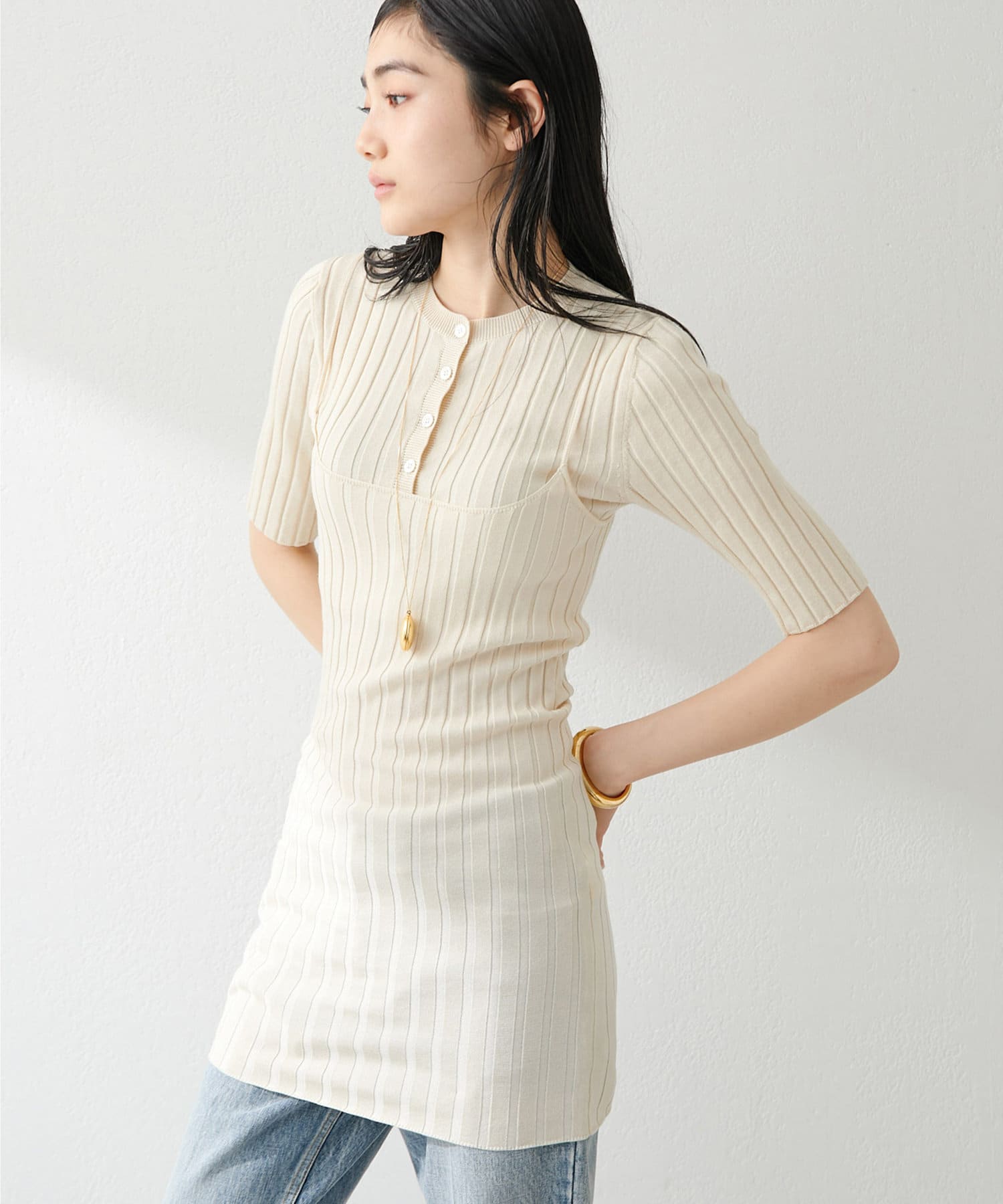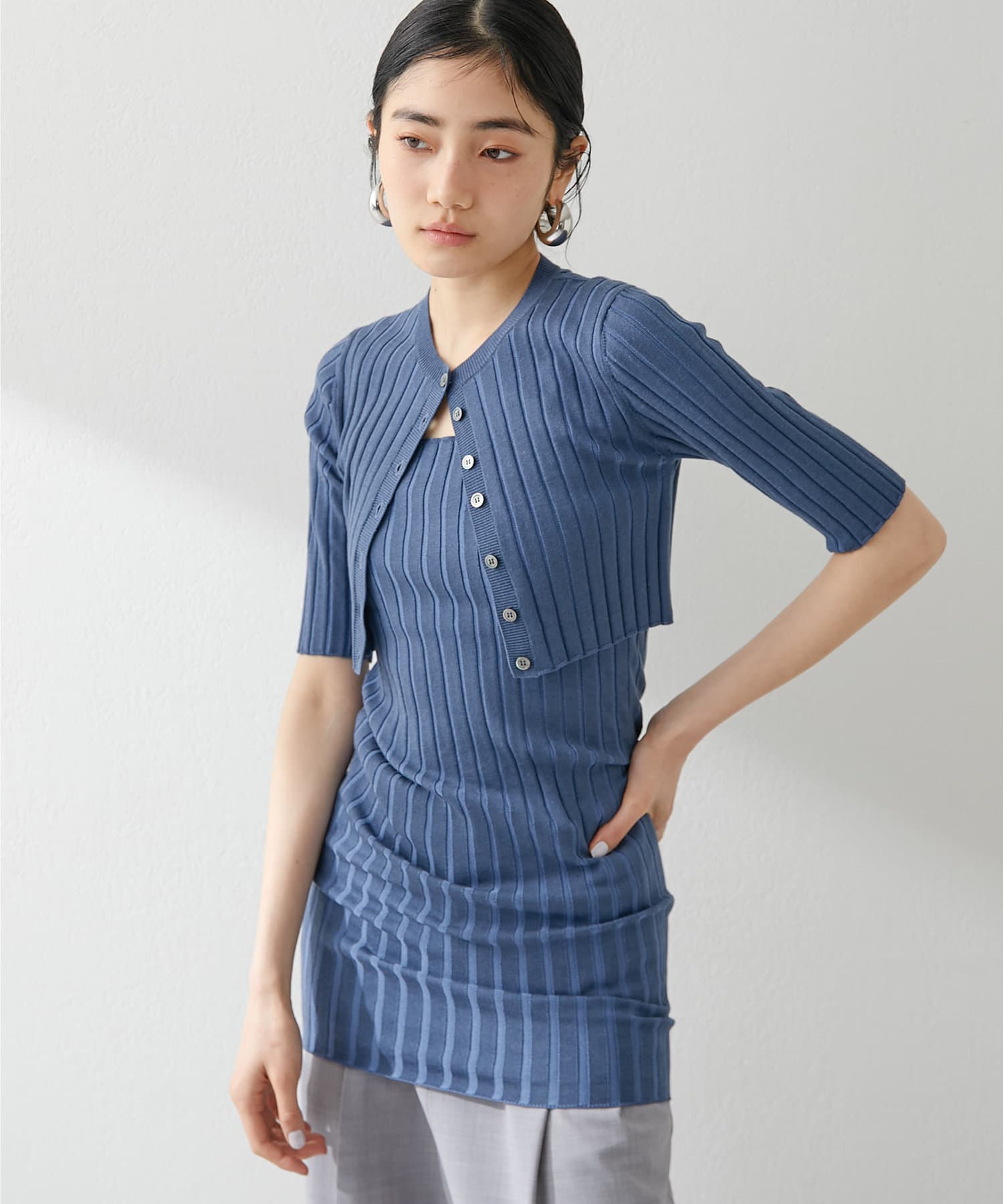 ■ワイドリブニットの表情がポイントのロングキャミソール。