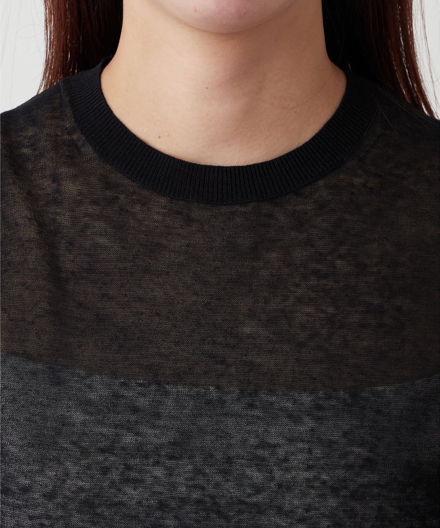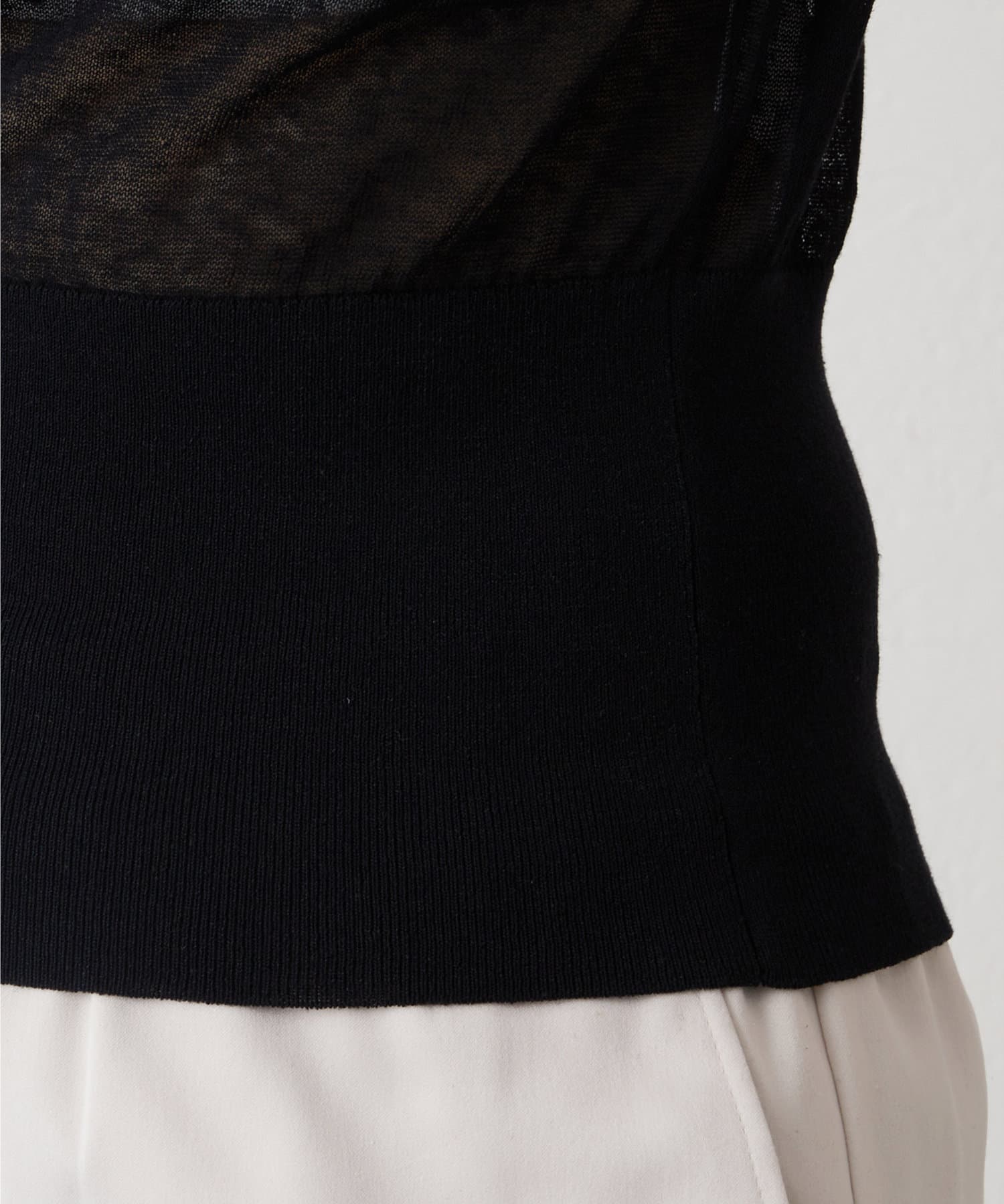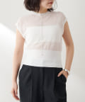 シアー感と上品さが素敵なトップス。インナーは見えても良いもので。二の腕が細く見えるデザイン。さり気なくオシャレな雰囲気にしてくれるアイテムです。着回し力あり!
