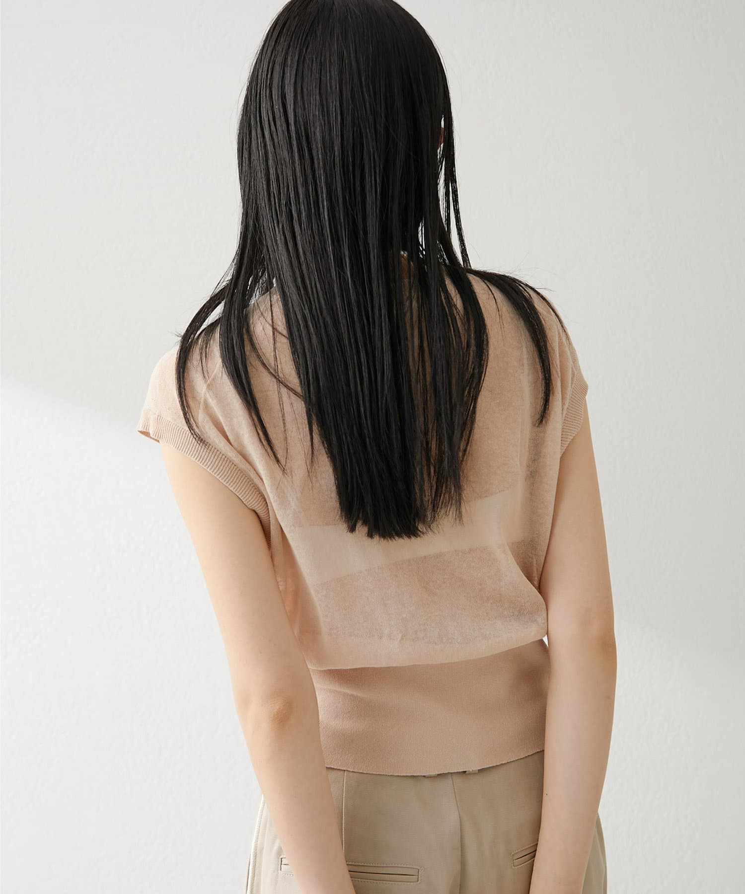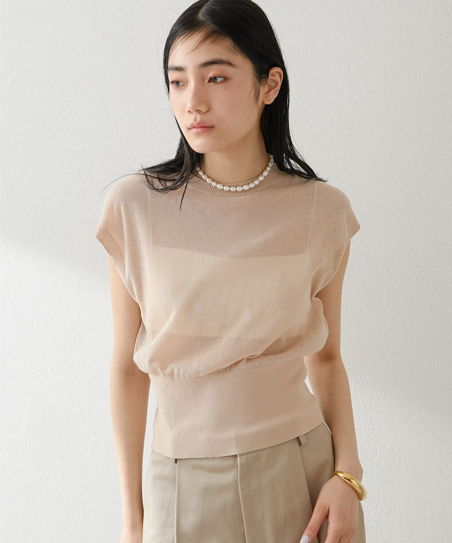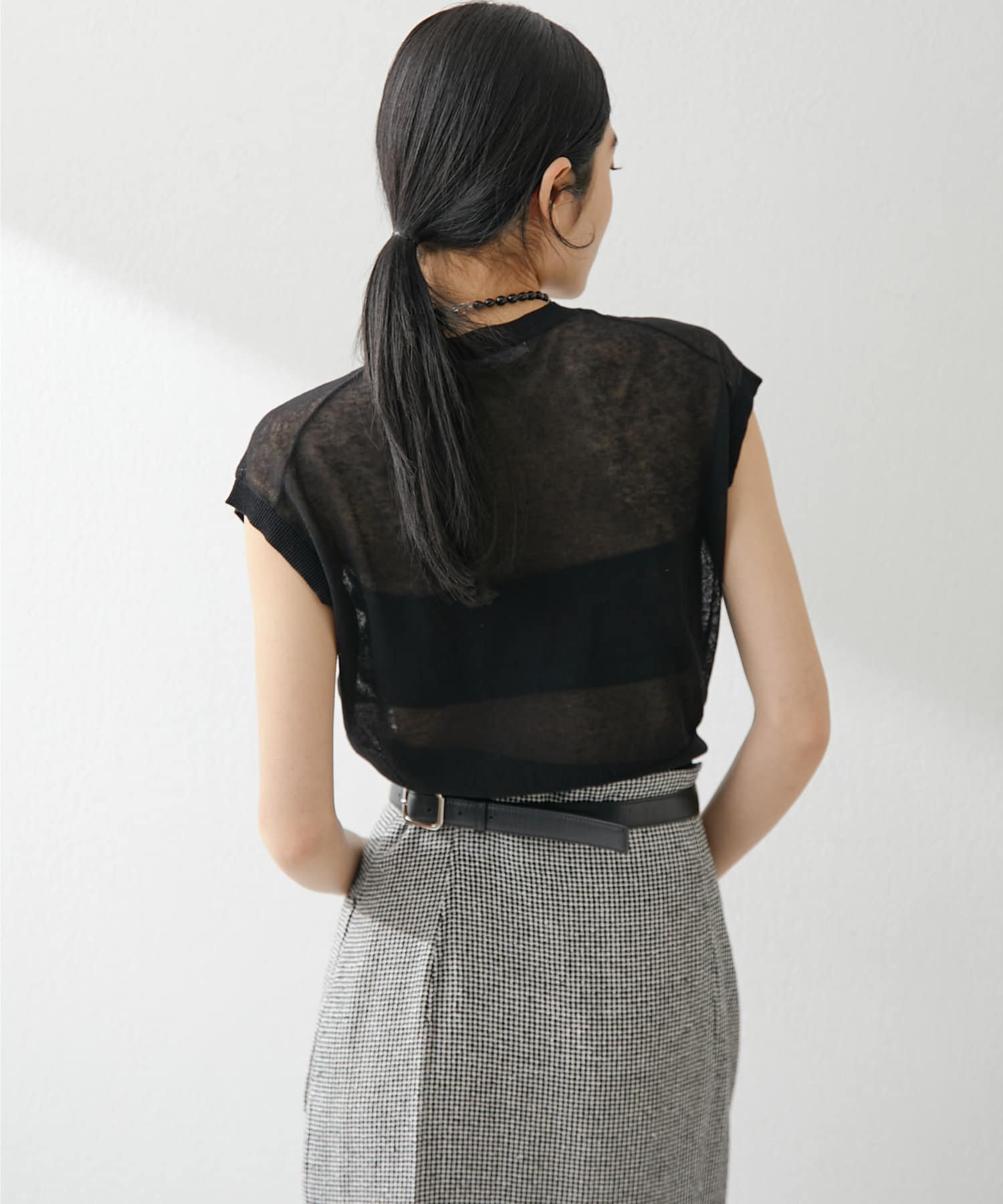 ■上品な透け感+フシの表情が特徴的なヘンプ素材を使用したノースリーブプルオーバー。