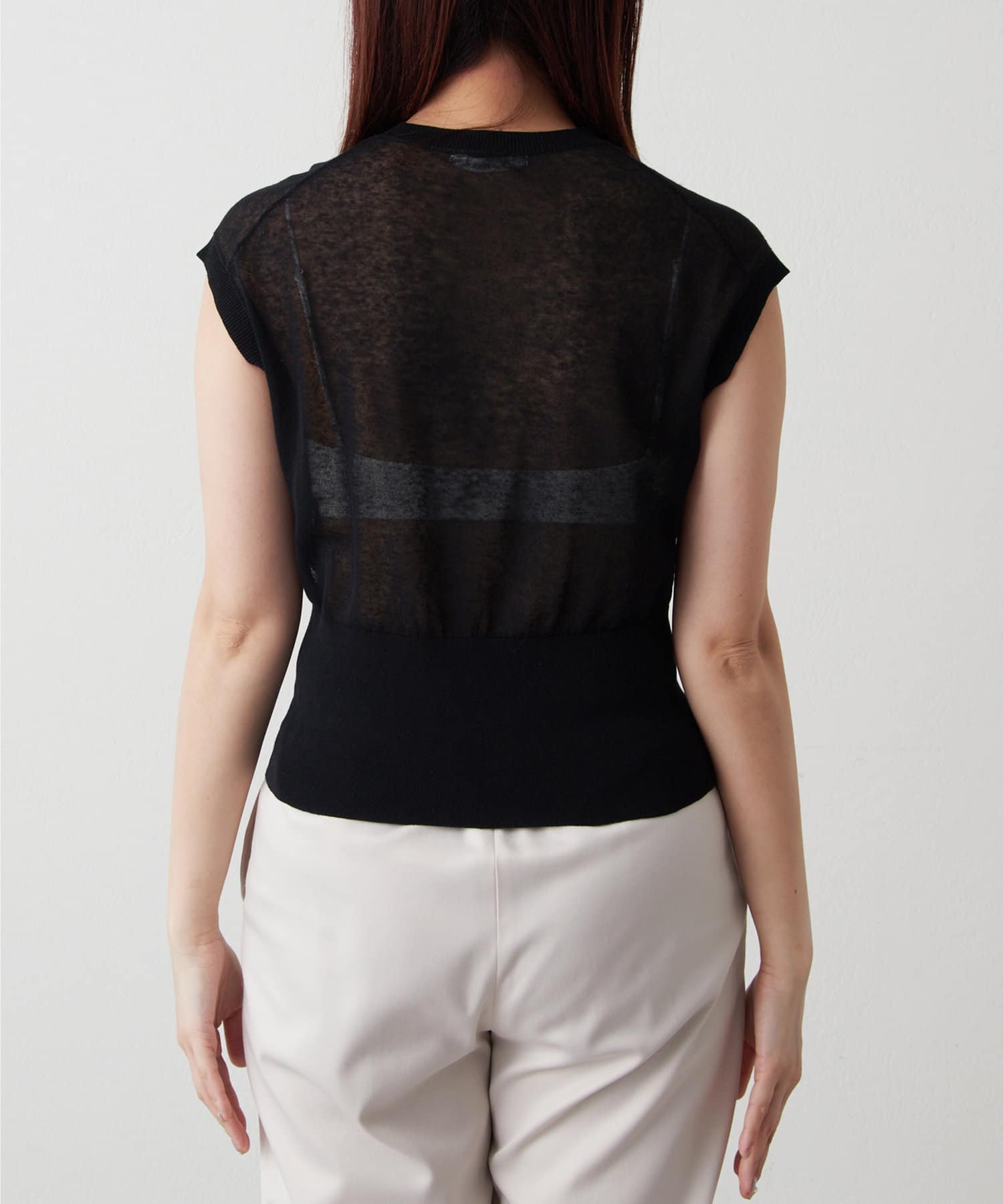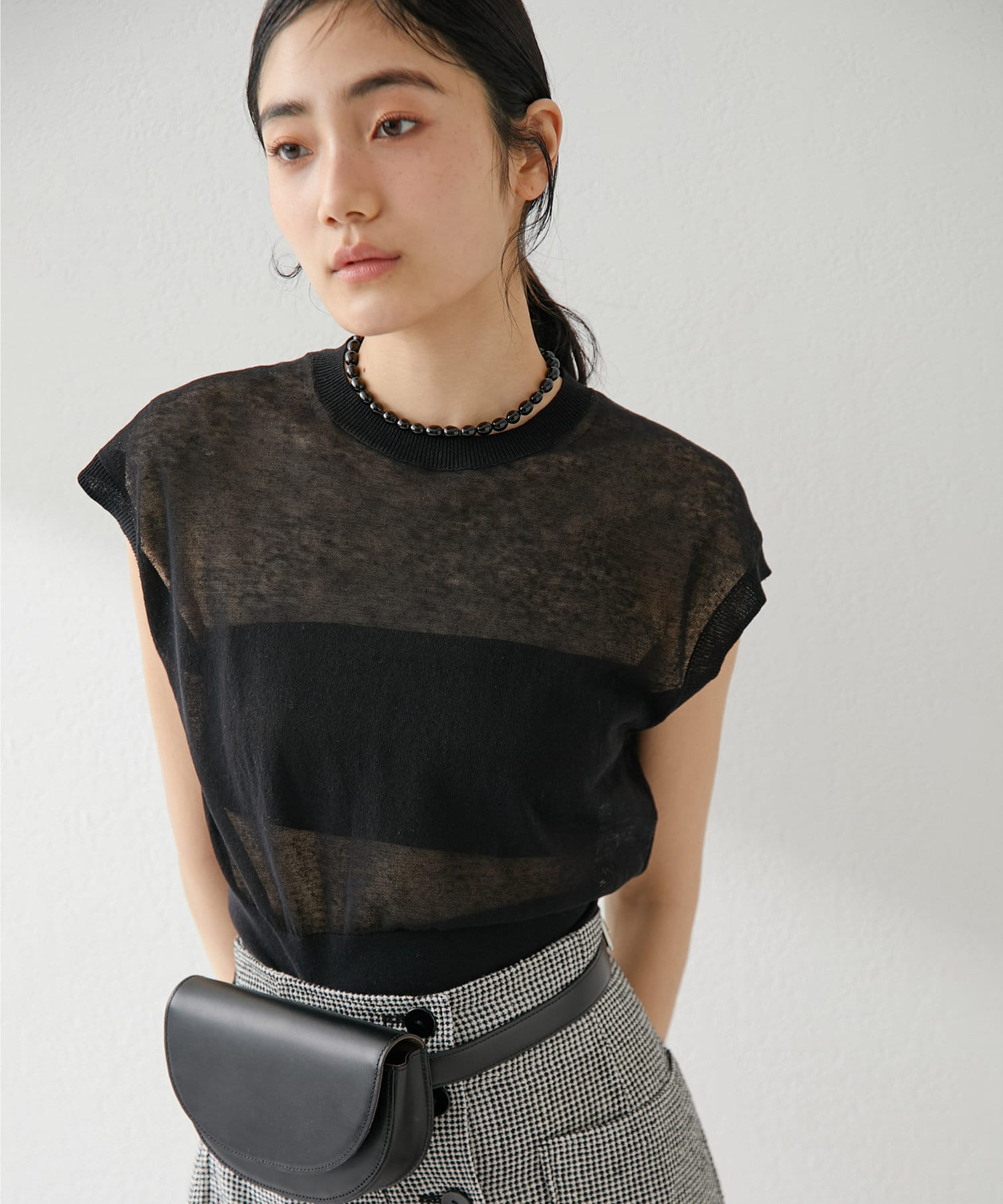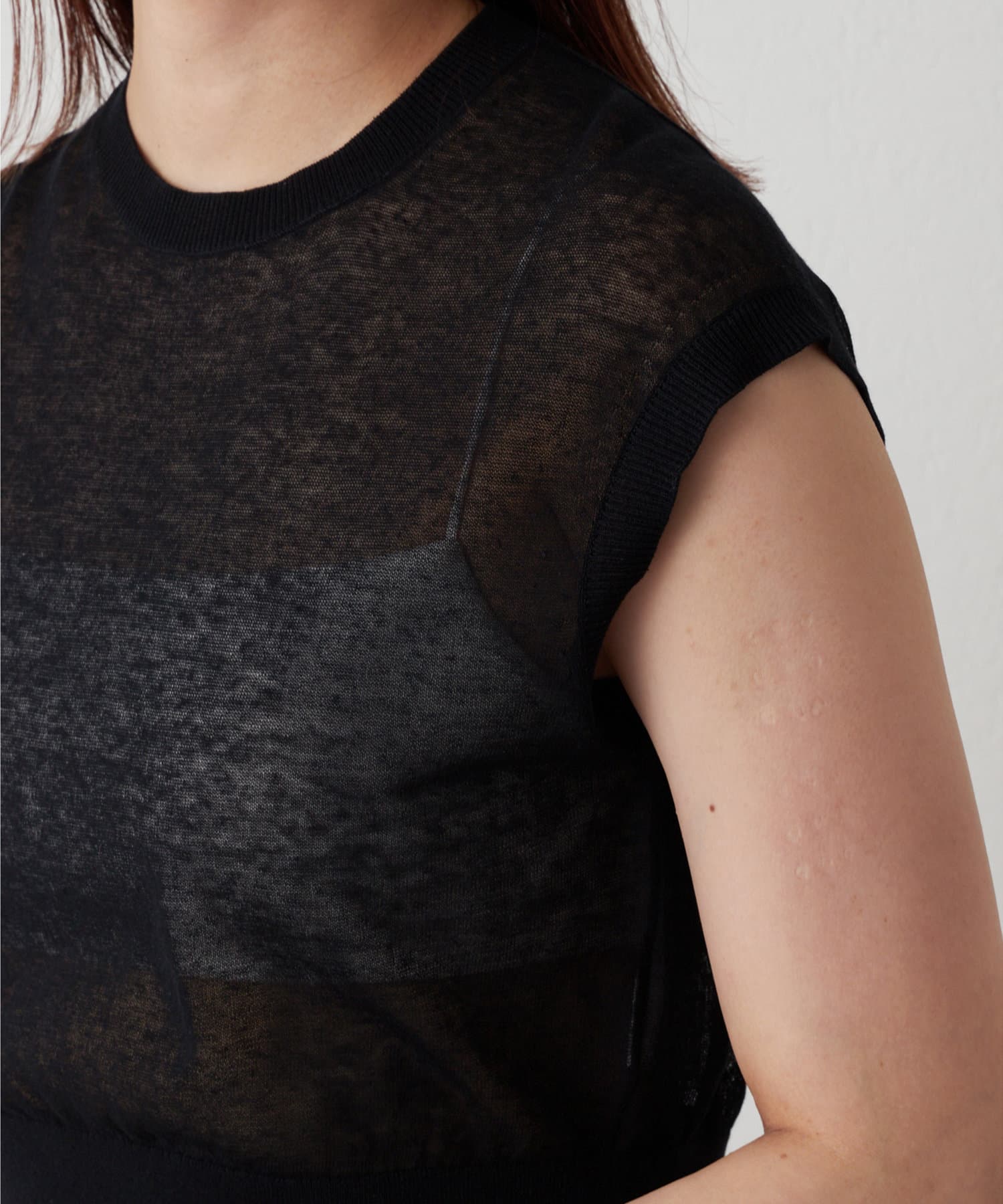 ■上品な透け感+フシの表情が特徴的なヘンプ素材を使用したノースリーブプルオーバー。
