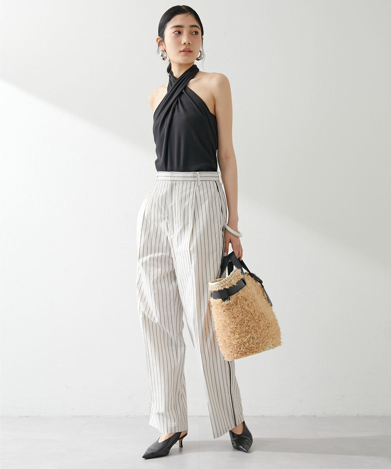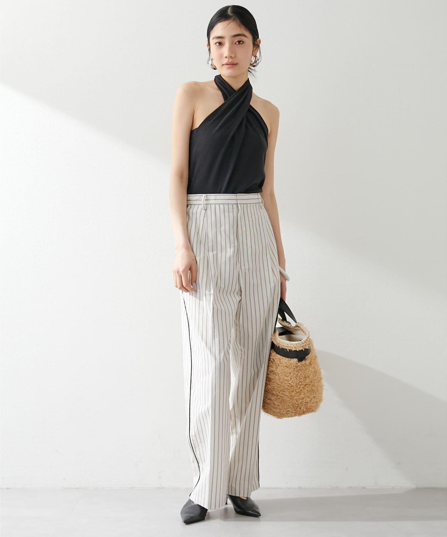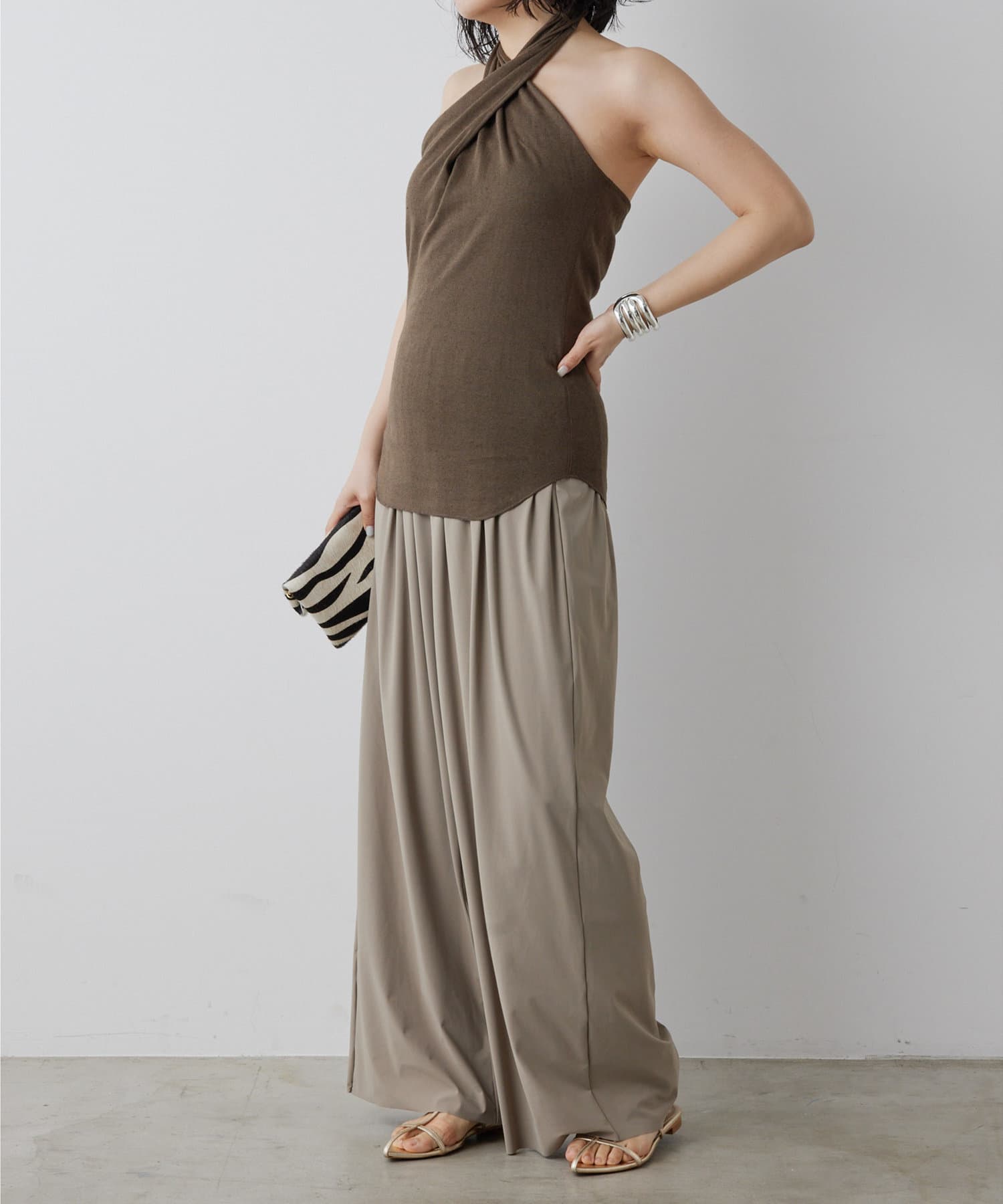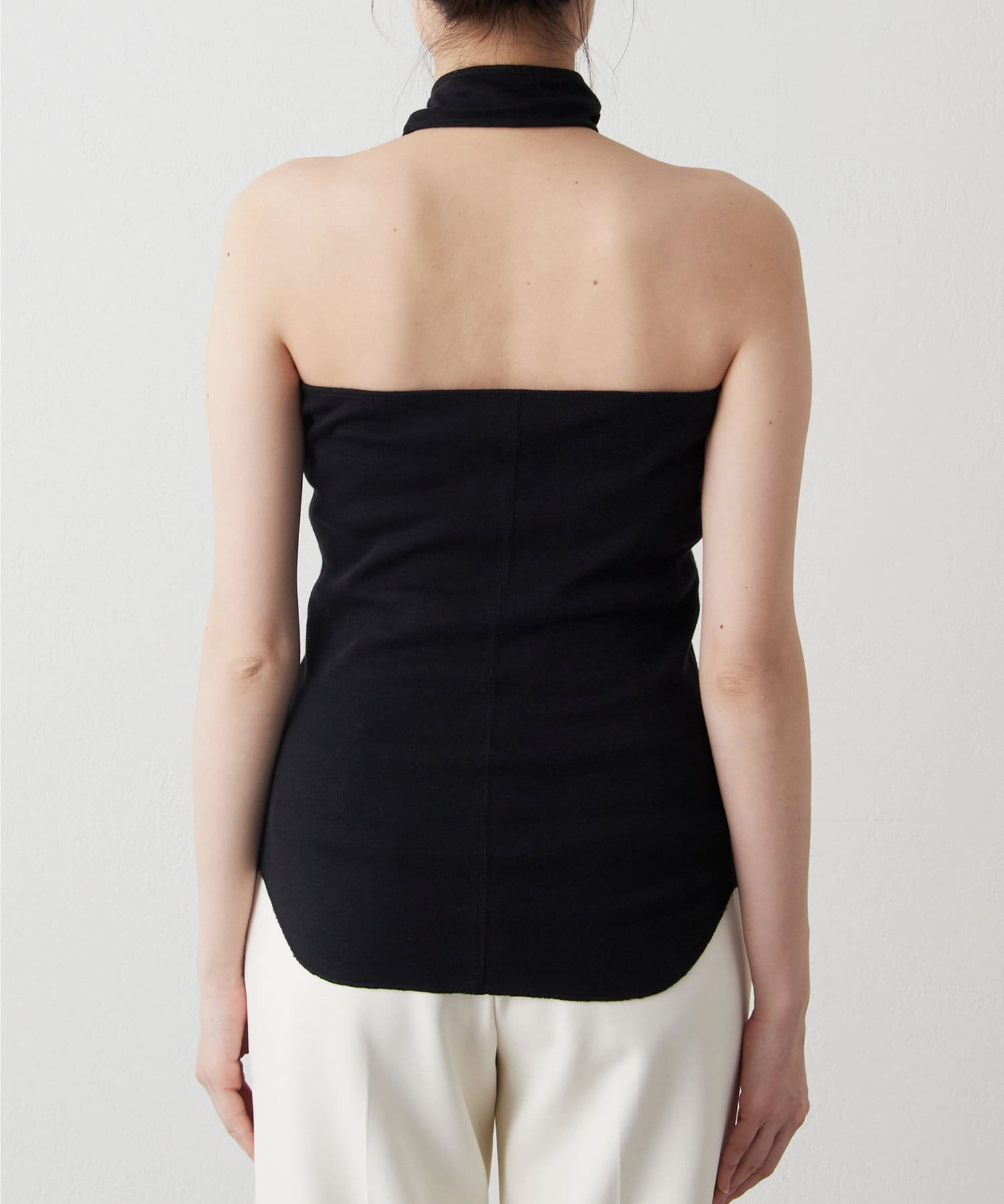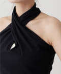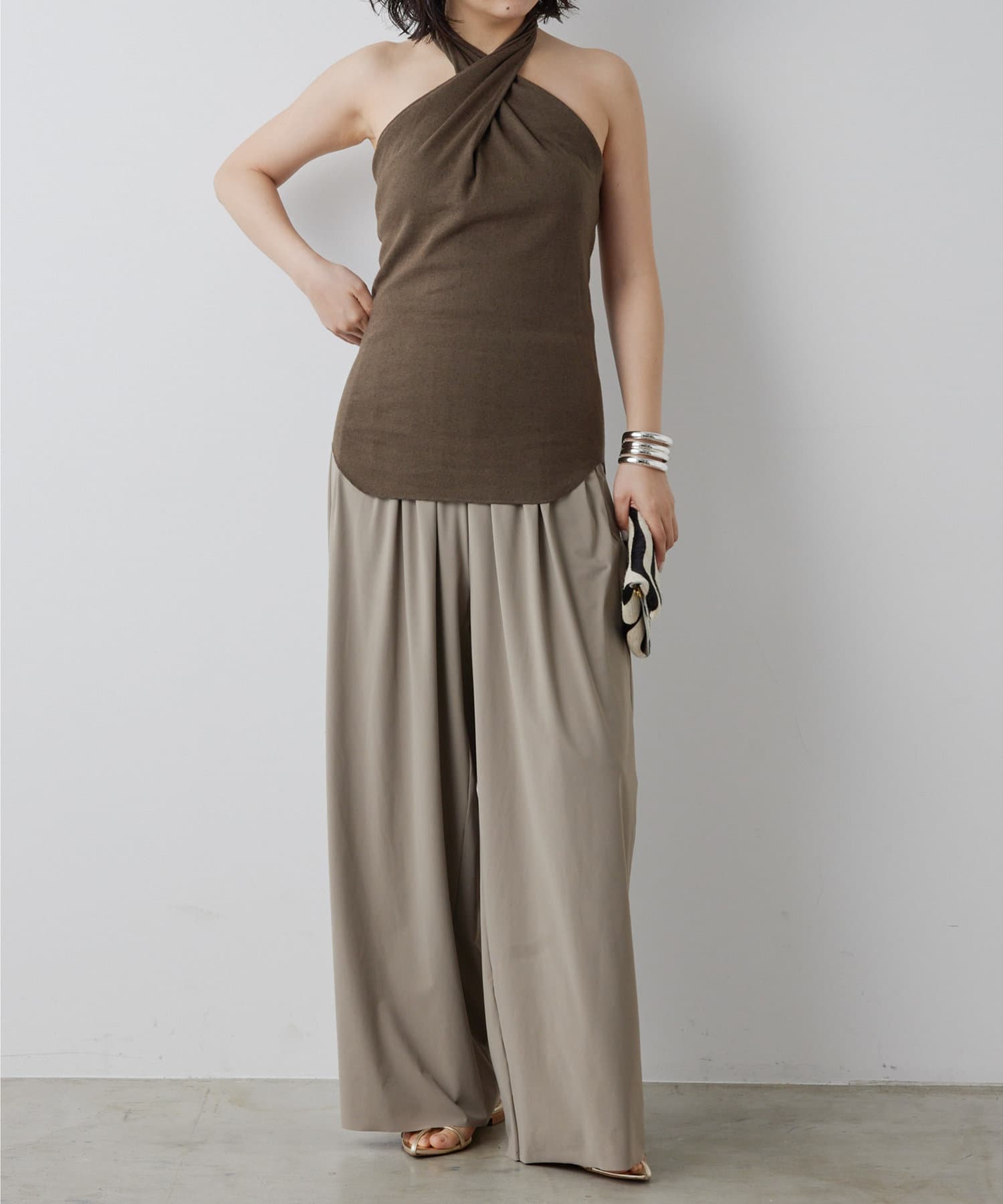 ■ツイストデザインのホルターネックが特徴的なトップス。