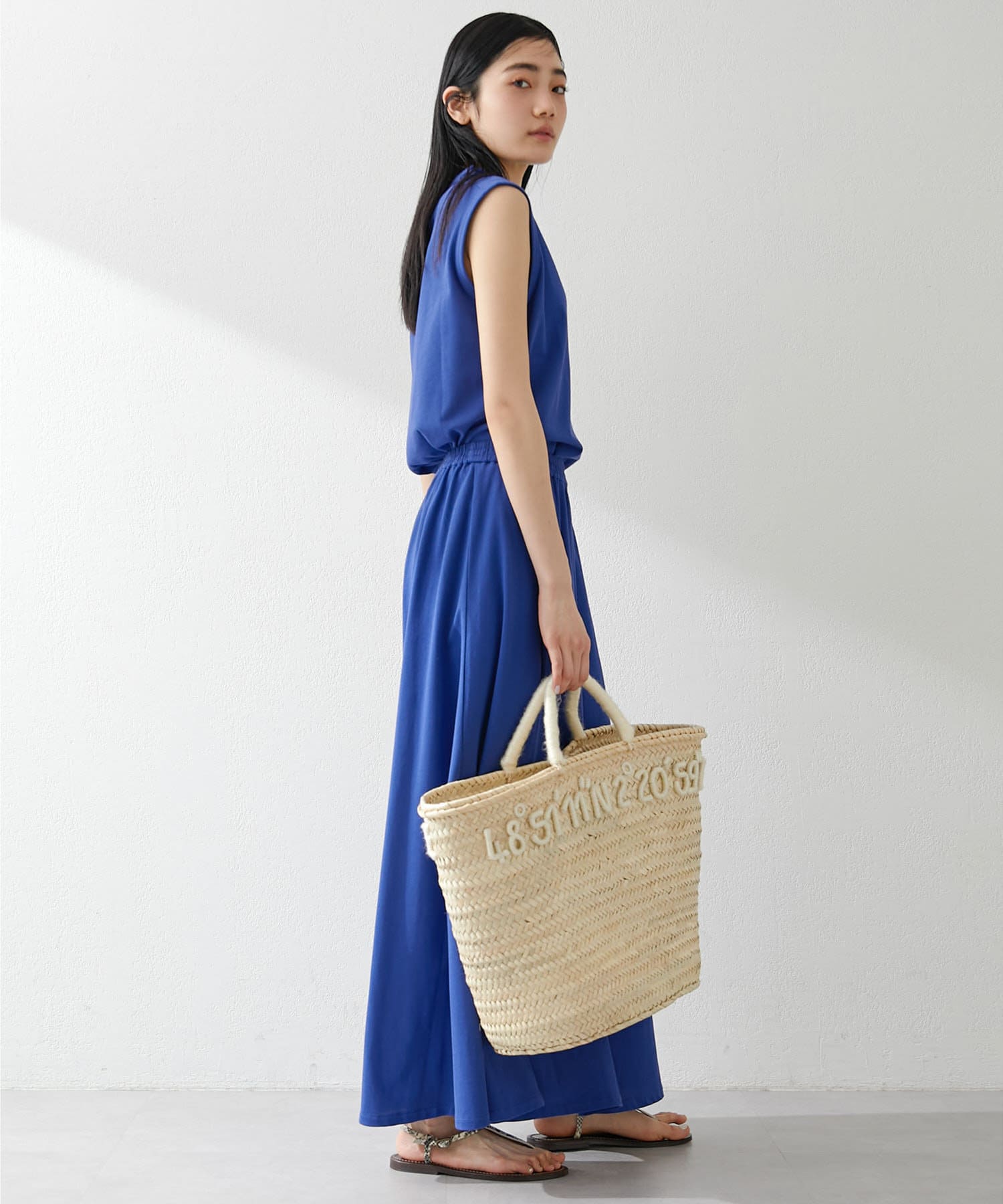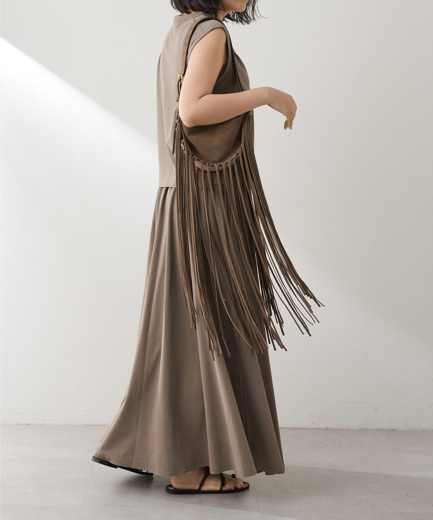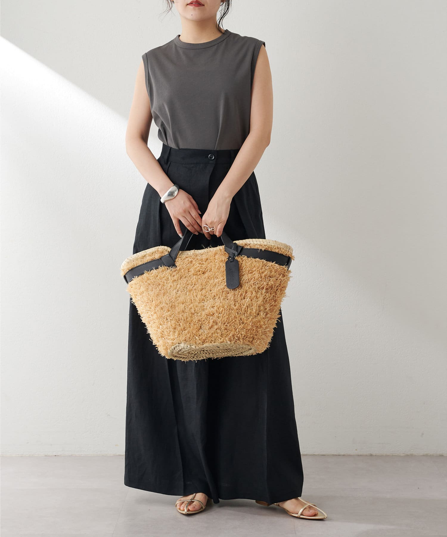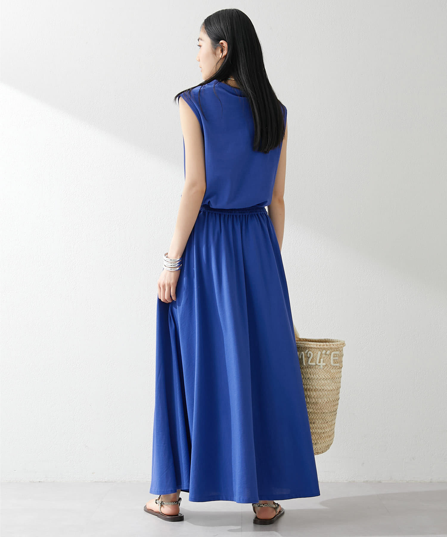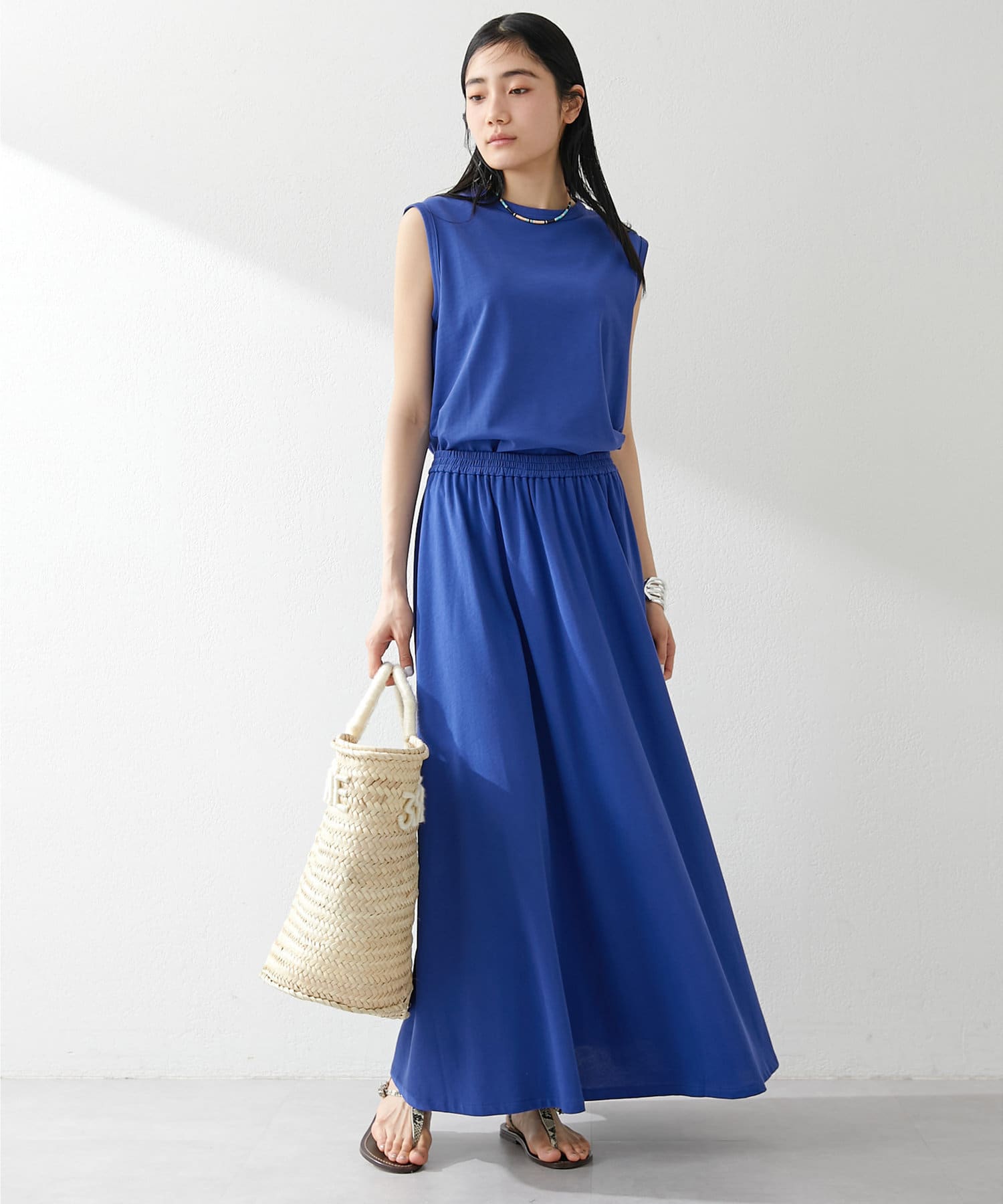 肩をカバーしてくれるノースリーブカットソー。気になる脇肉も見えないアームのラインが絶妙です。これこそ1枚で様になる1着。シンプルですがこういう垢抜けアイテムは欠かせません。