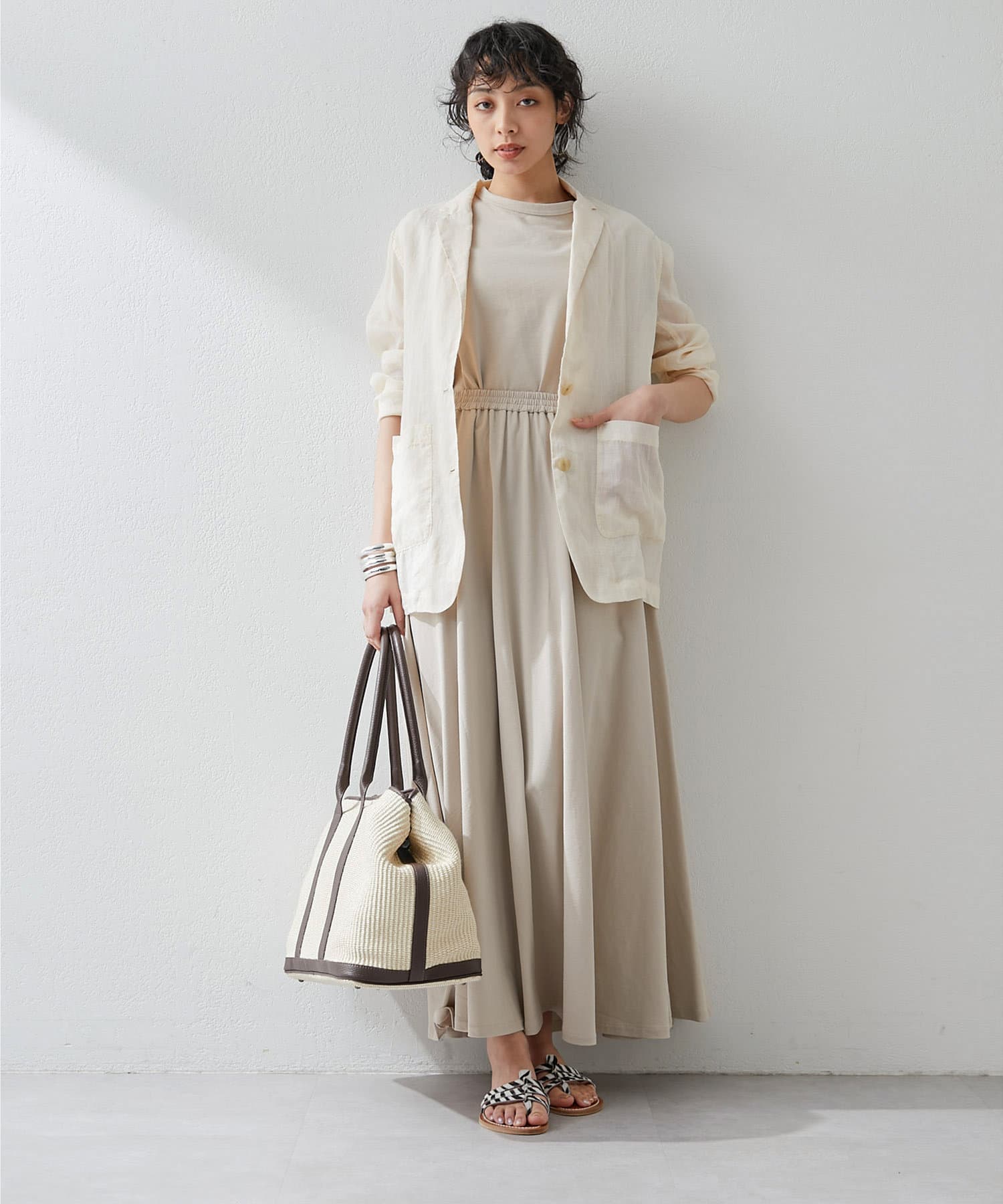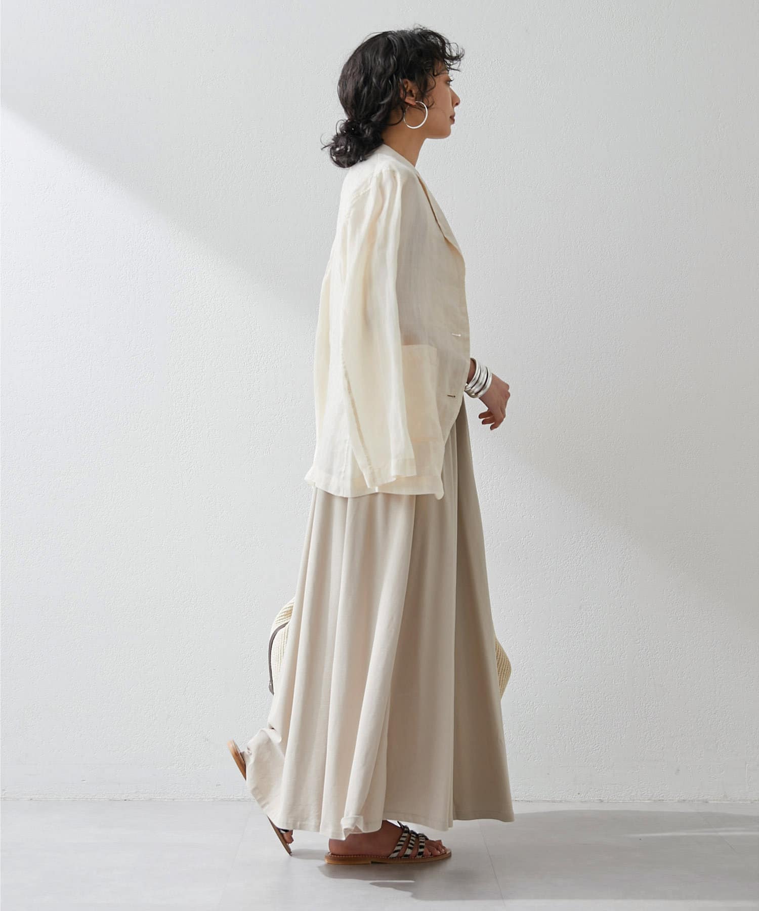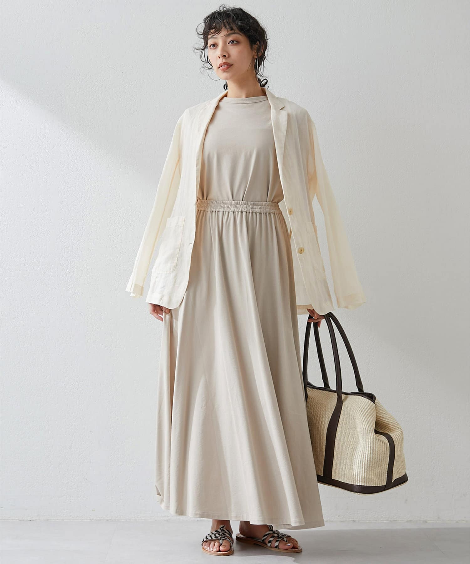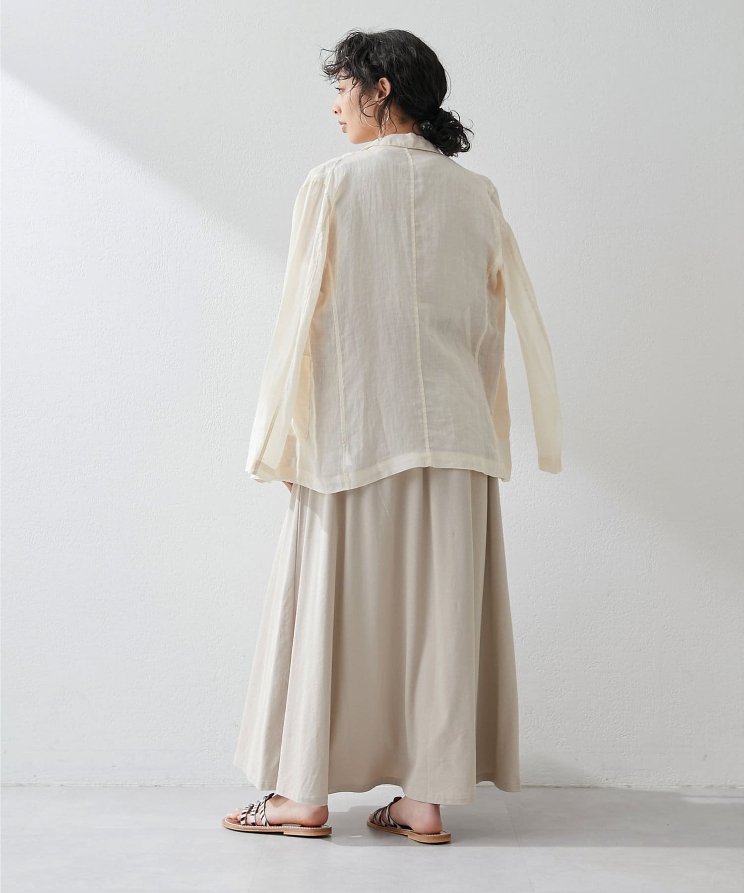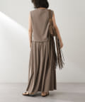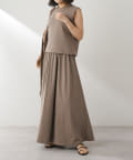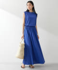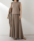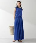 ■同素材のカットギャザースカート(ブランド品番:WGZ1041401A0003)とセットアップでワンピースのように楽しむのもおすすめ。